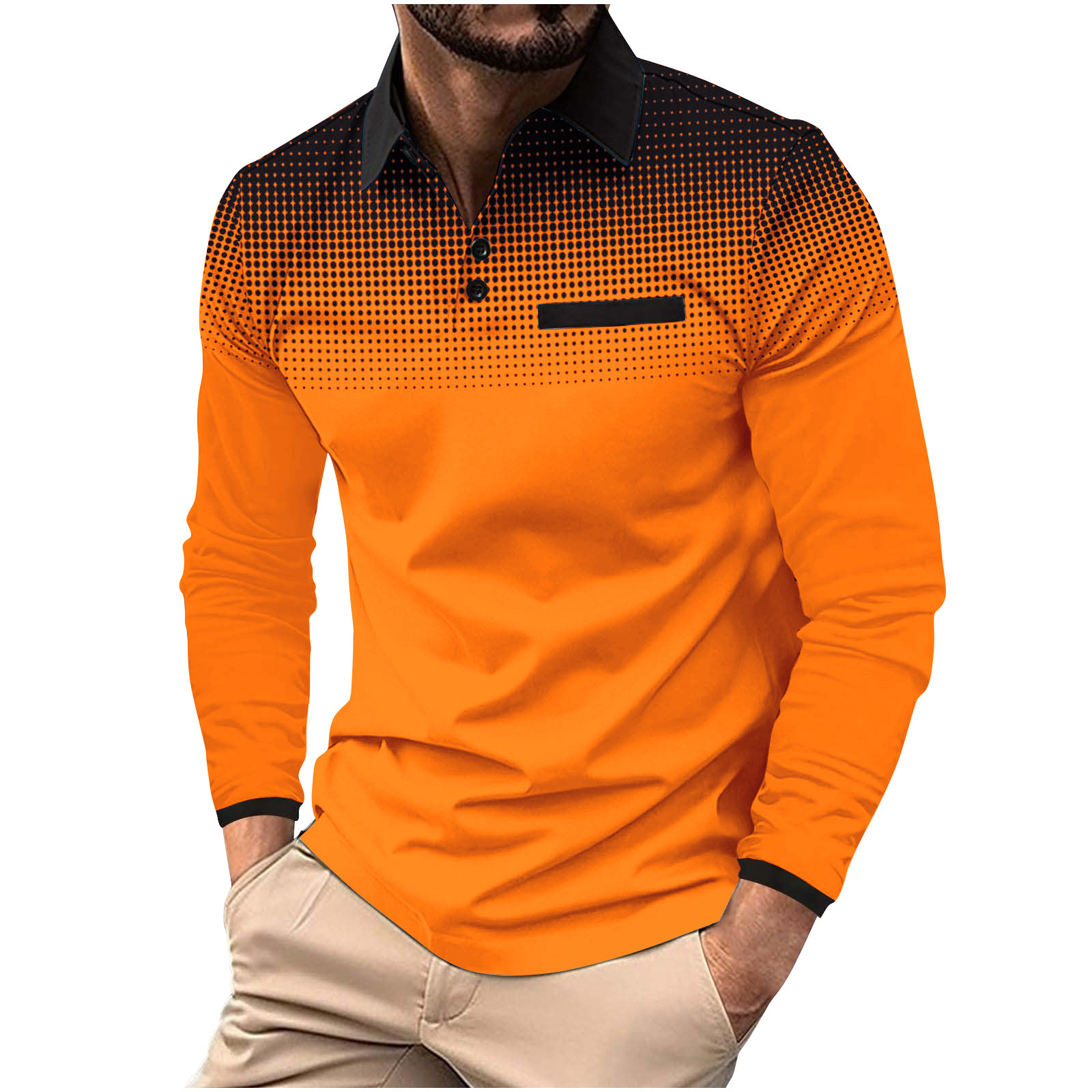 유럽과 미국의 국경 간 가을 빠른 판매 아마존 남자 긴 소매 폴로 셔츠 인쇄 폴카 도트 렐 스포츠 탑