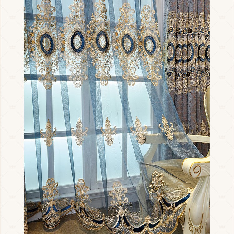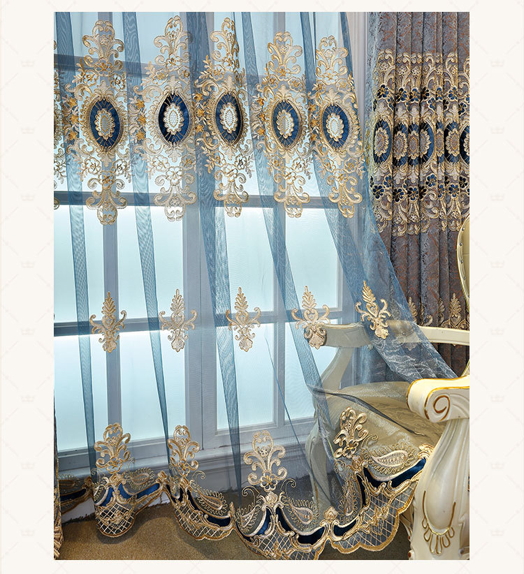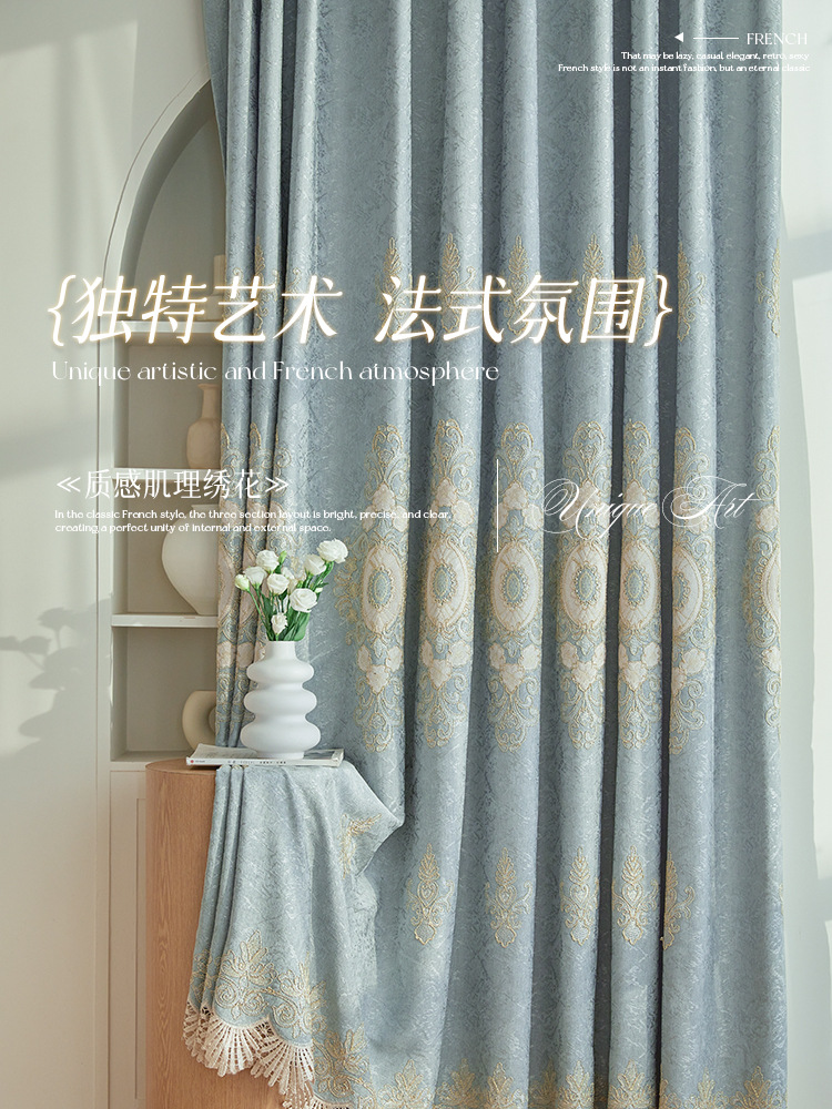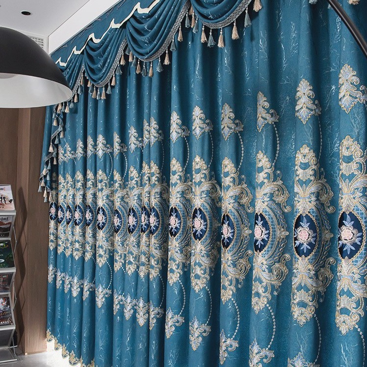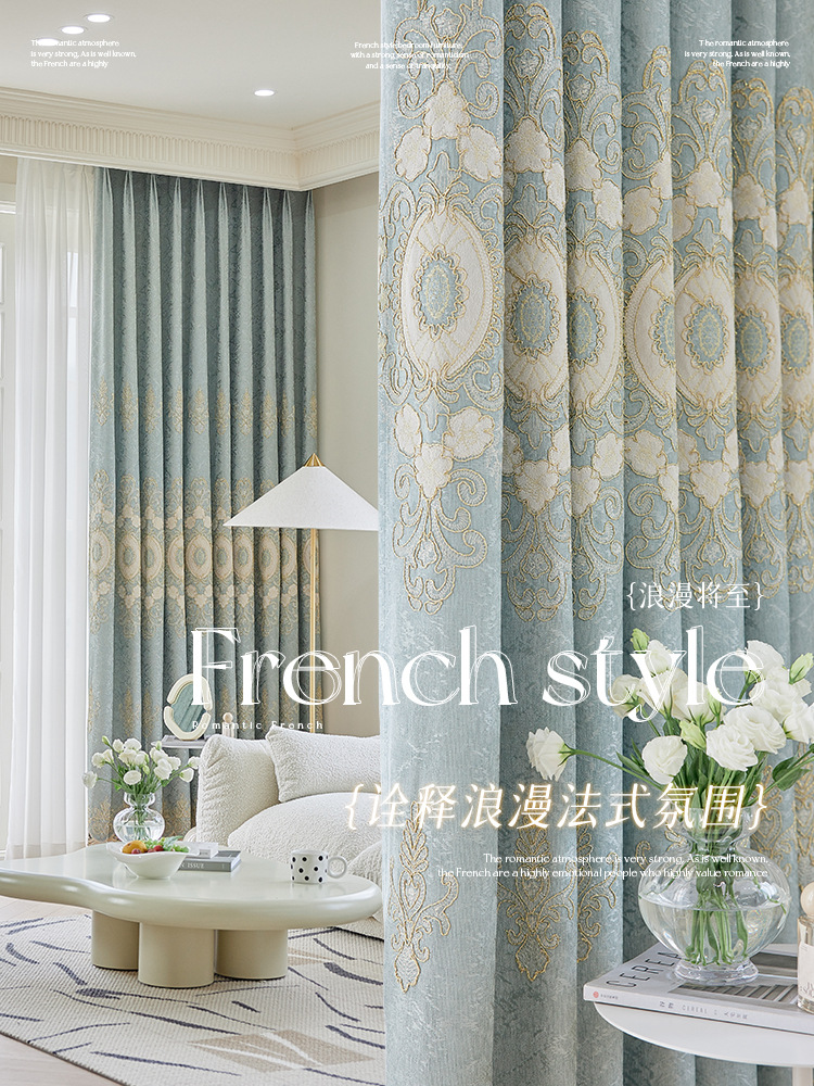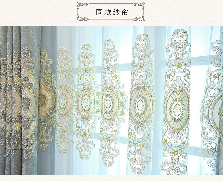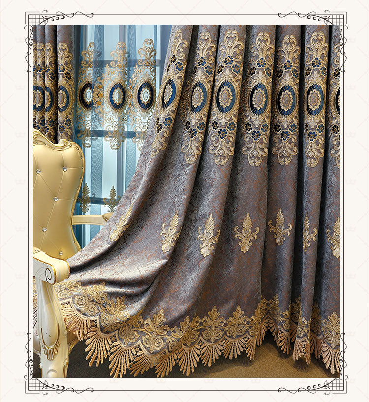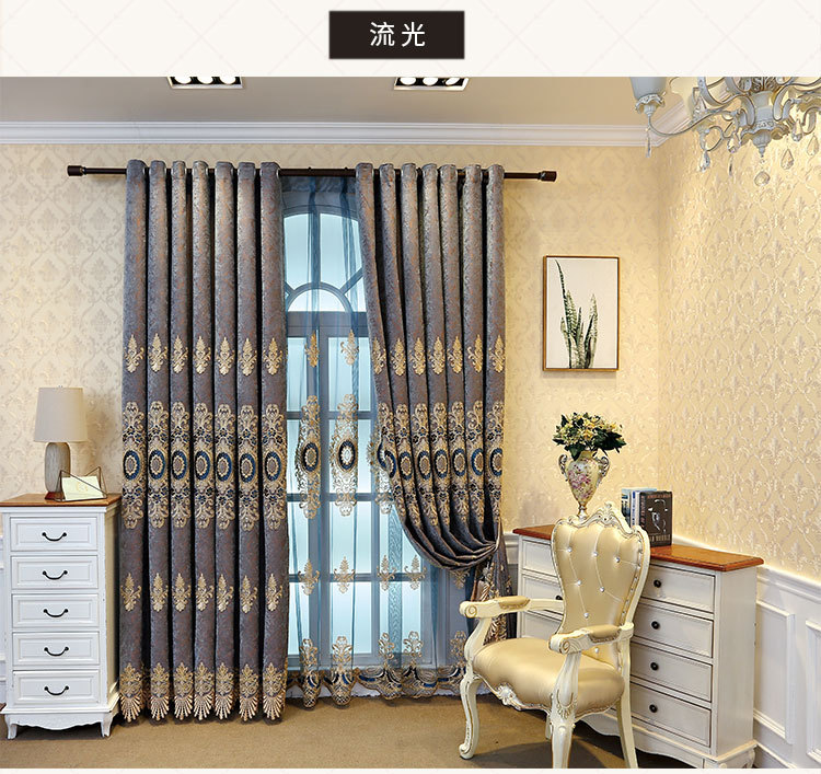 가벼운 고급 고급 고급 유럽 스타일 자수 커튼 선스크린 양산 구리 돈 잔디 캐시미어 체닐 실크 자수 커튼 원단스토어 가기