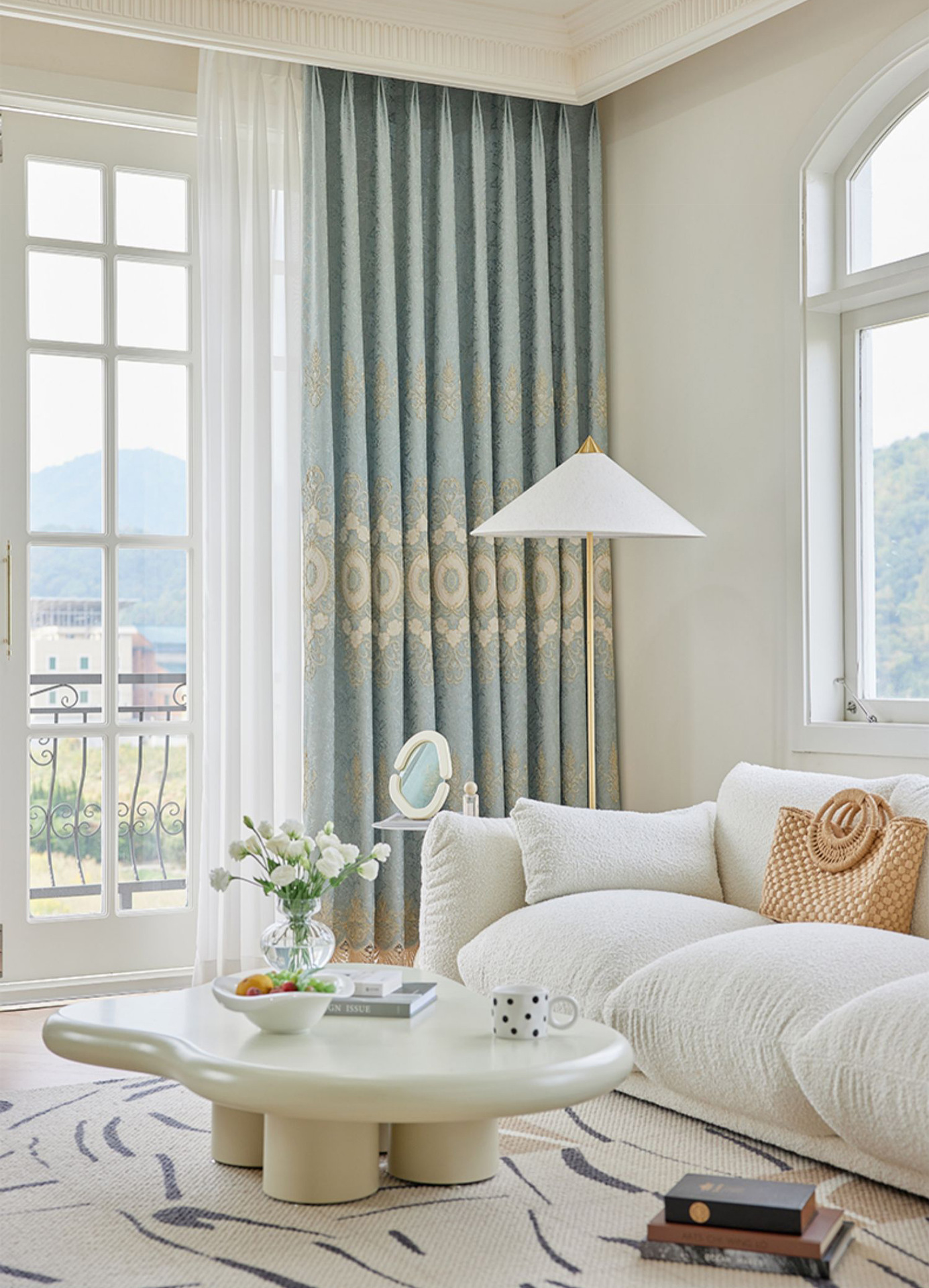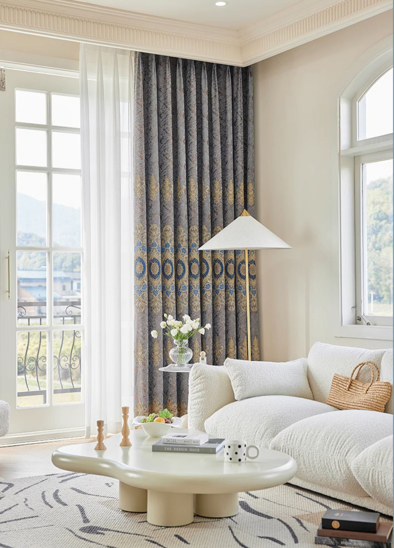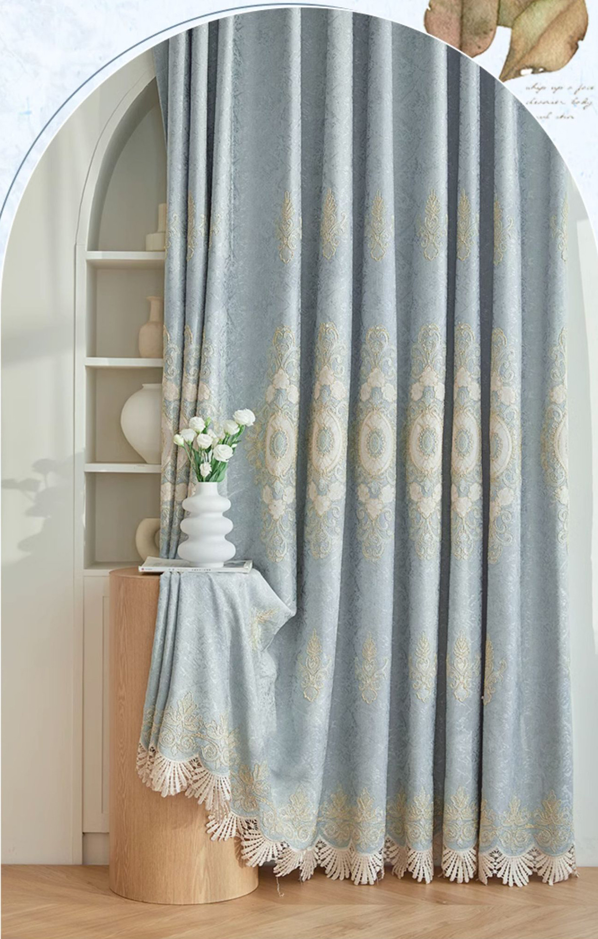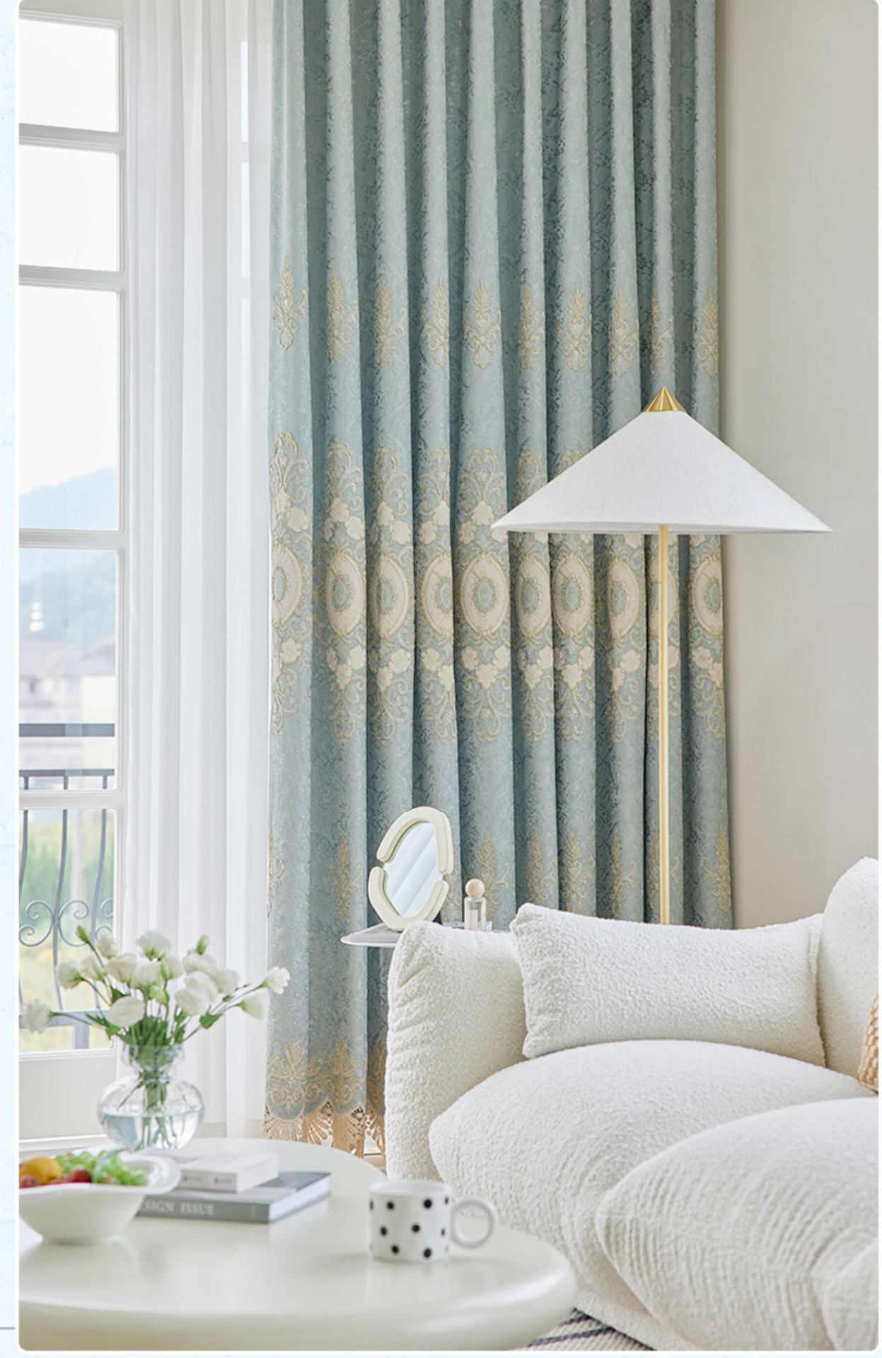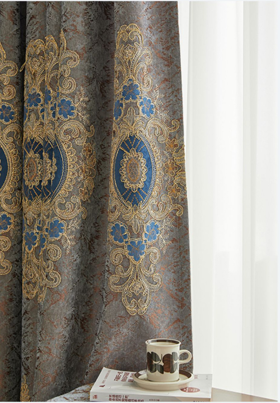 가벼운 고급 고급 고급 유럽 스타일 자수 커튼 선스크린 양산 구리 돈 잔디 캐시미어 체닐 실크 자수 커튼 원단스토어 가기