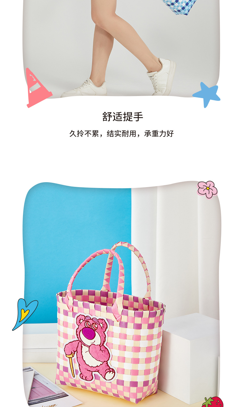 디즈니 직조가방, 쇼핑트렌드가방, 토트백, 휴대용 통근스타일, 고급스럽고 대용량 식료품가방스토어 가기
