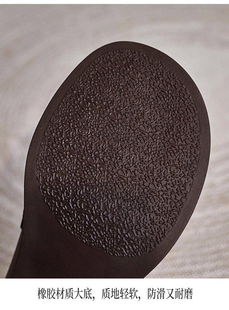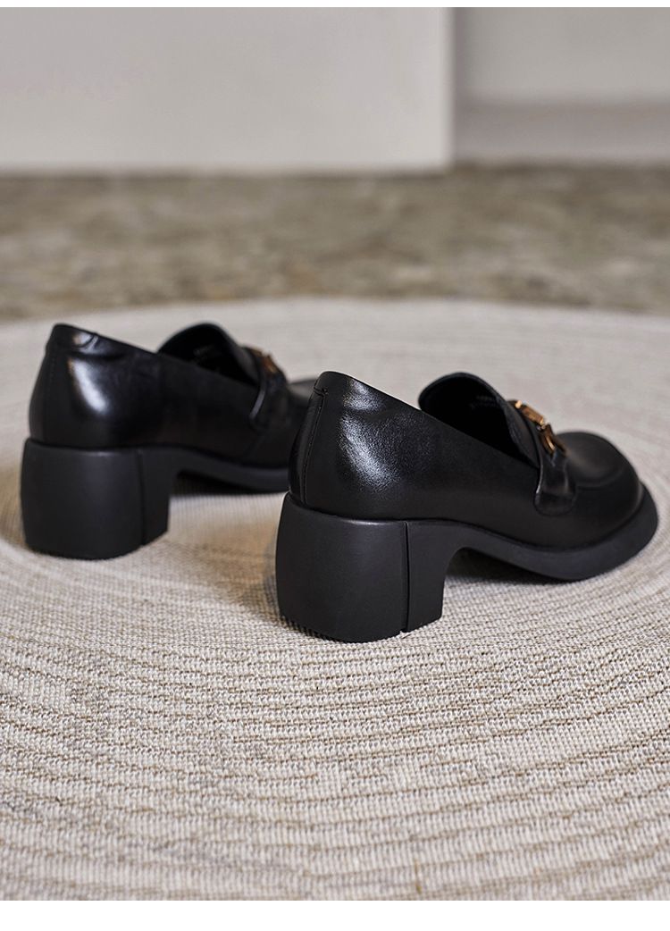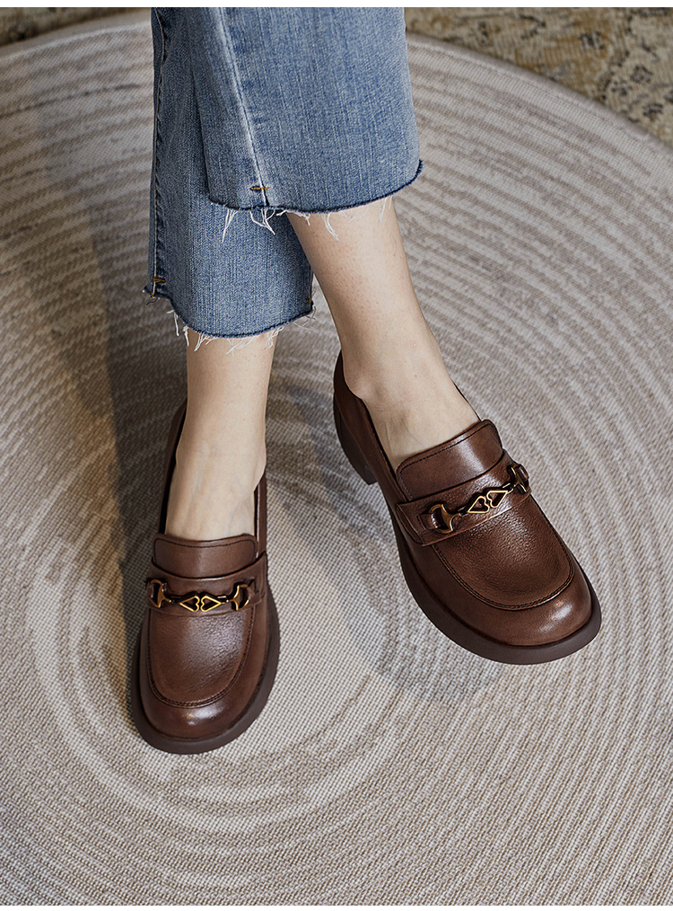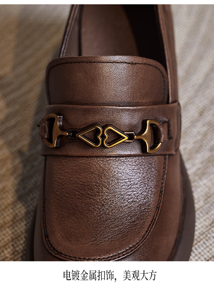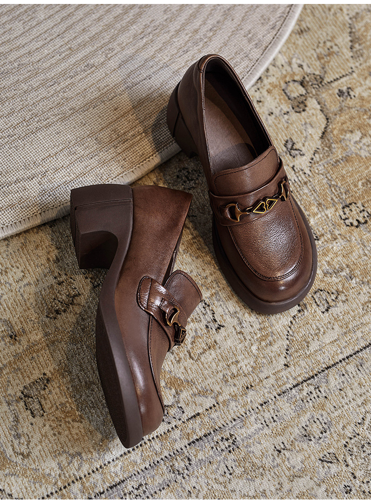 정품 가죽 로퍼 2024 새로운 봄과 가을 슬립 온 청키 힐 미드 힐 싱글 레이어 신발 빈티지 여성용 캐주얼 작은 가죽 신발스토어 가기