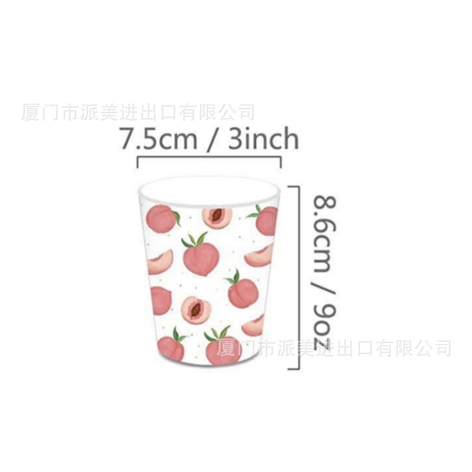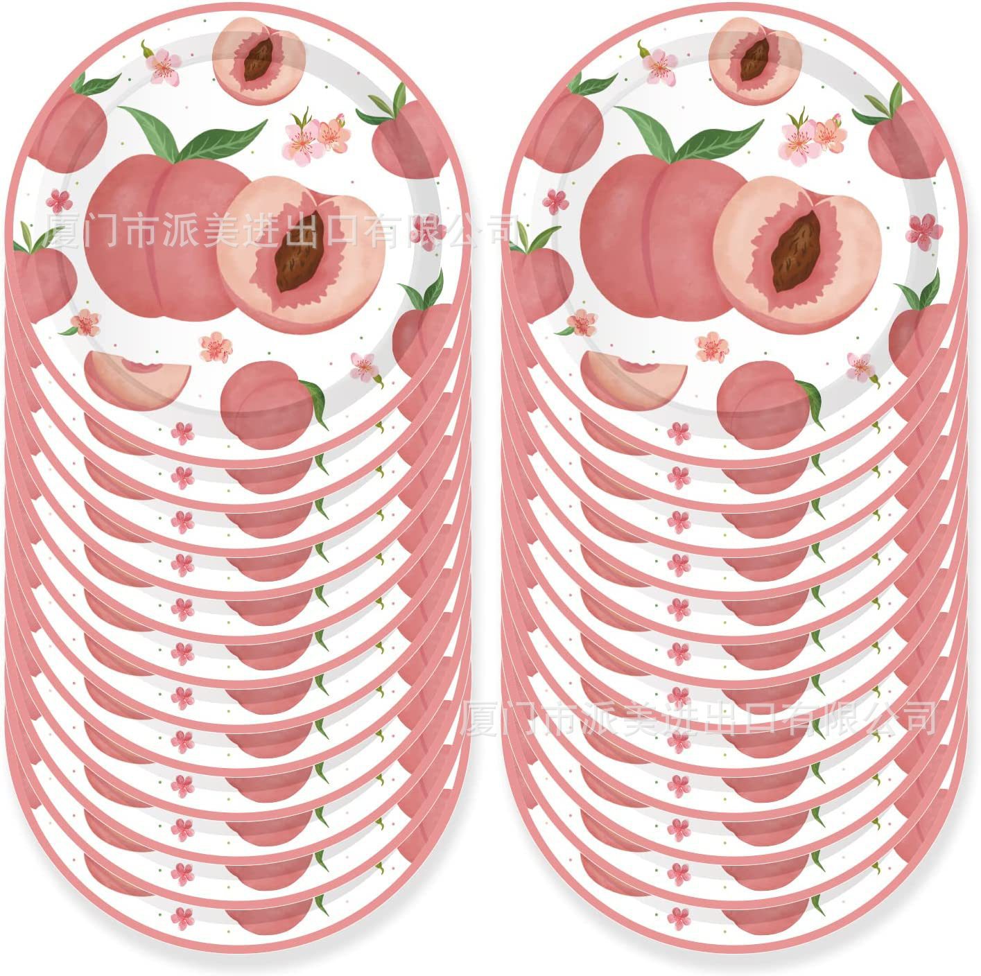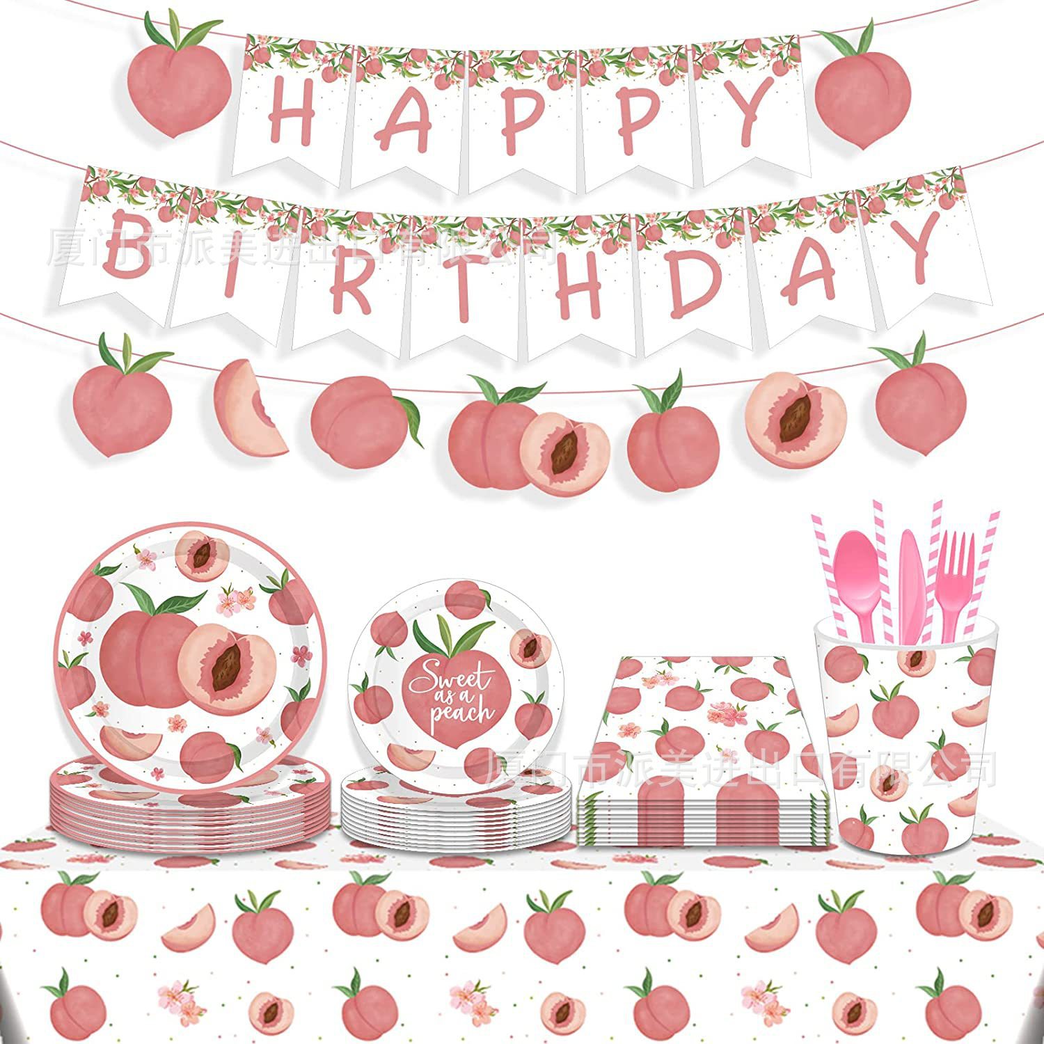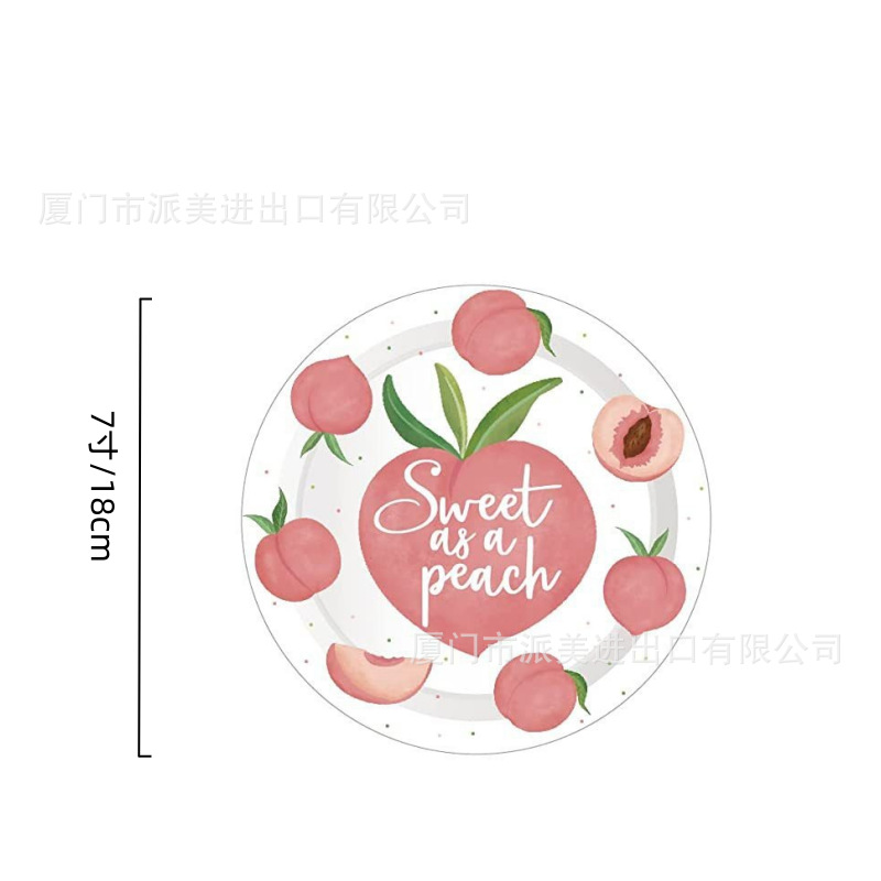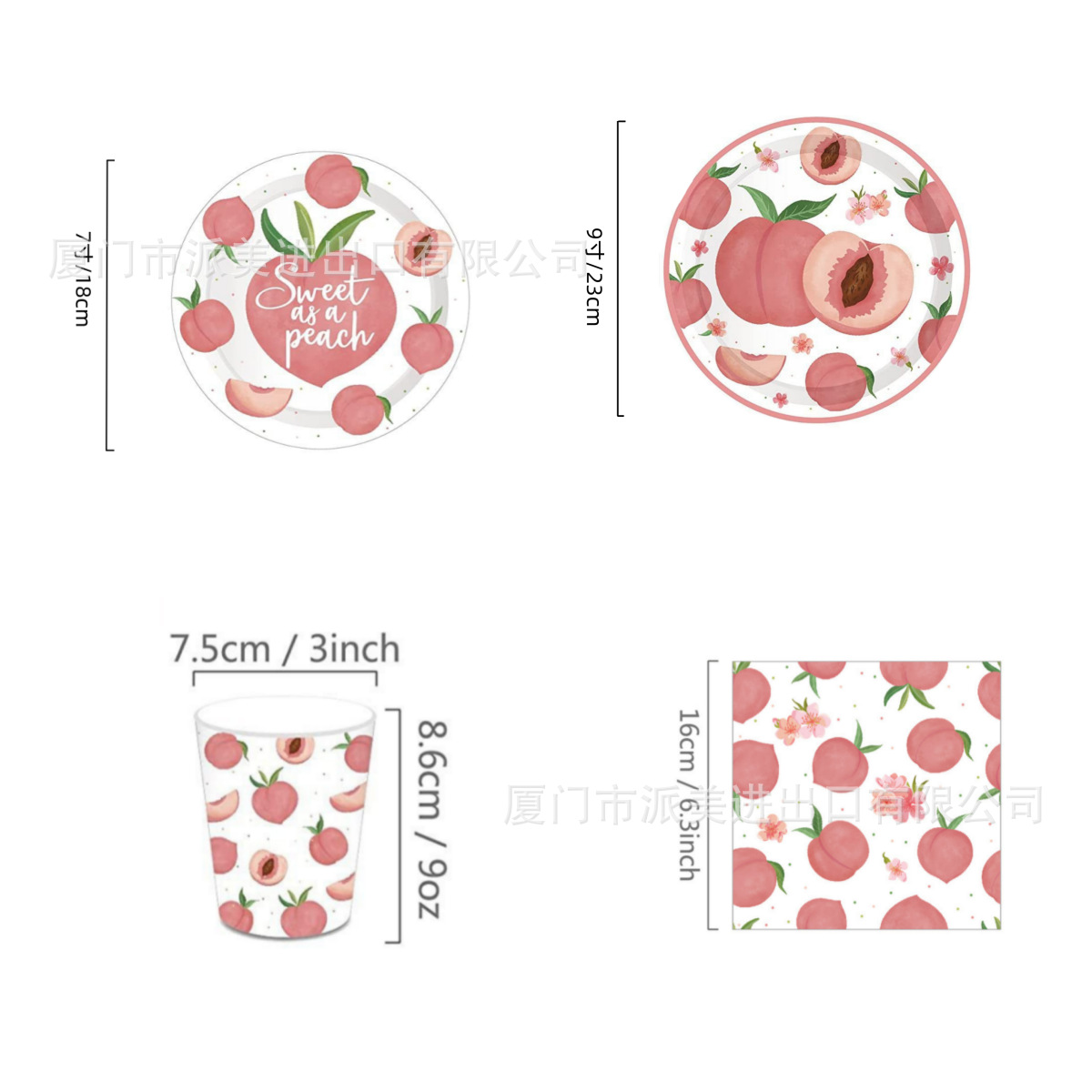 새로운 허니 복숭아 테마 파티 장식 일회용 식기 세트 종이 접시 종이 타월 종이 컵 과일 복숭아 세트스토어 가기