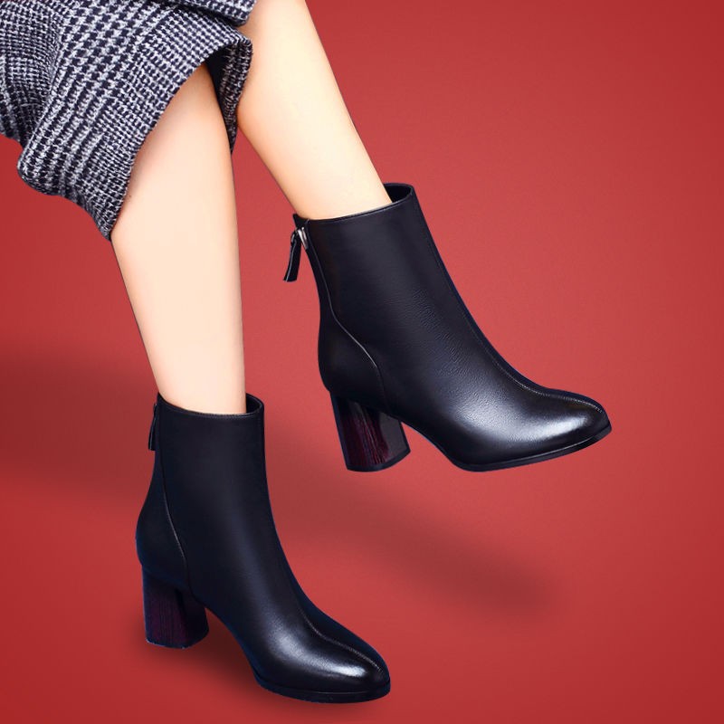 유럽 및 미국 스타일 여성용 숏부츠 2025 봄 가을 신상 하이힐 두꺼운 굽 블랙 싱글 라이닝 플리스 패션 마틴 부츠 대형 사이즈 도매스토어 가기