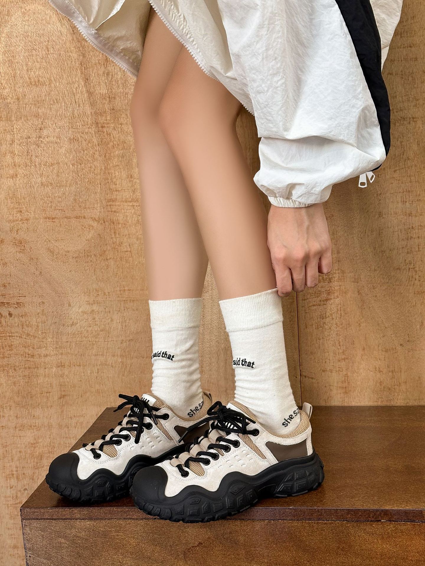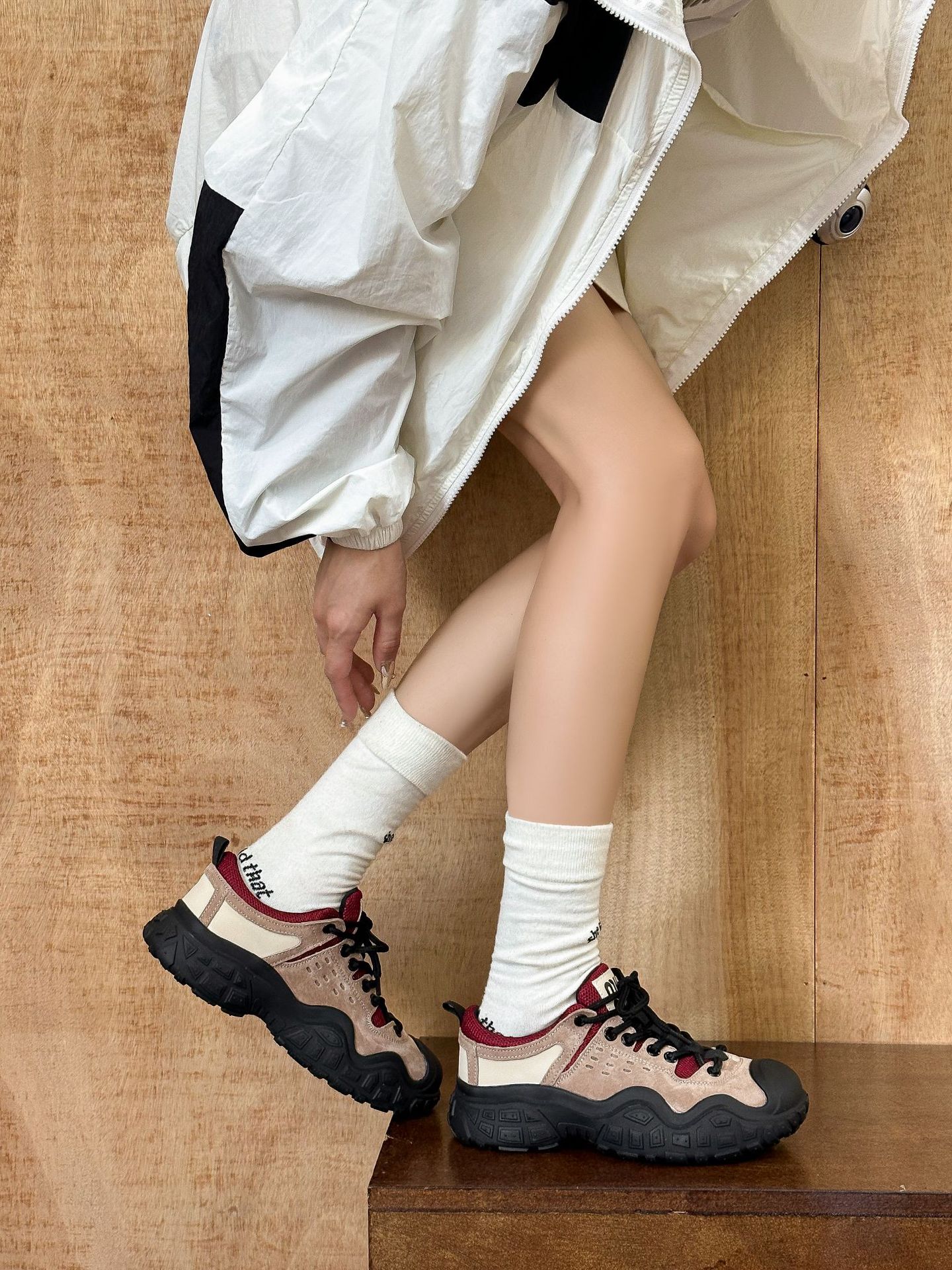 두꺼운 단독 패션 정품 가죽 등산 신발 여성 신발 2024 새로운 스포츠 캐주얼 신발 야외 캠핑 토레 신발 여성 보드 신발