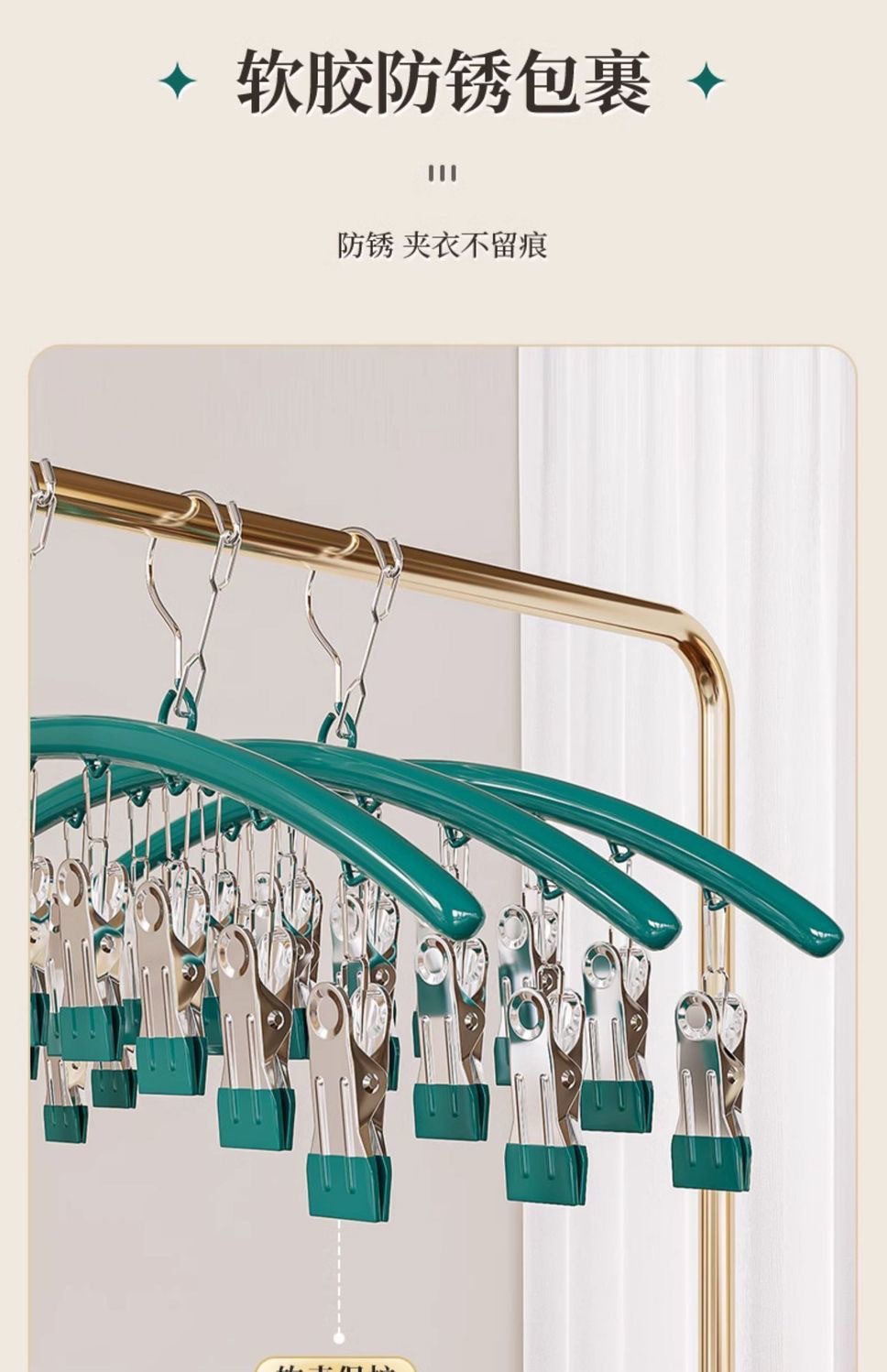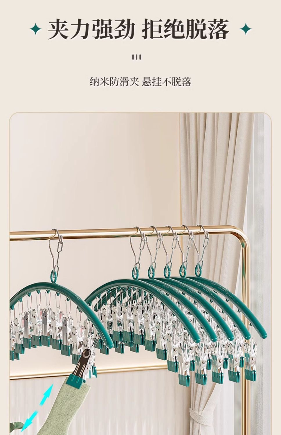 맞춤형 스테인레스 스틸 의류 랙, 다기능 의류 랙 후크, 유아 및 어린이 가정용 발코니, 양말 건조를 위한 다중 클립스토어 가기