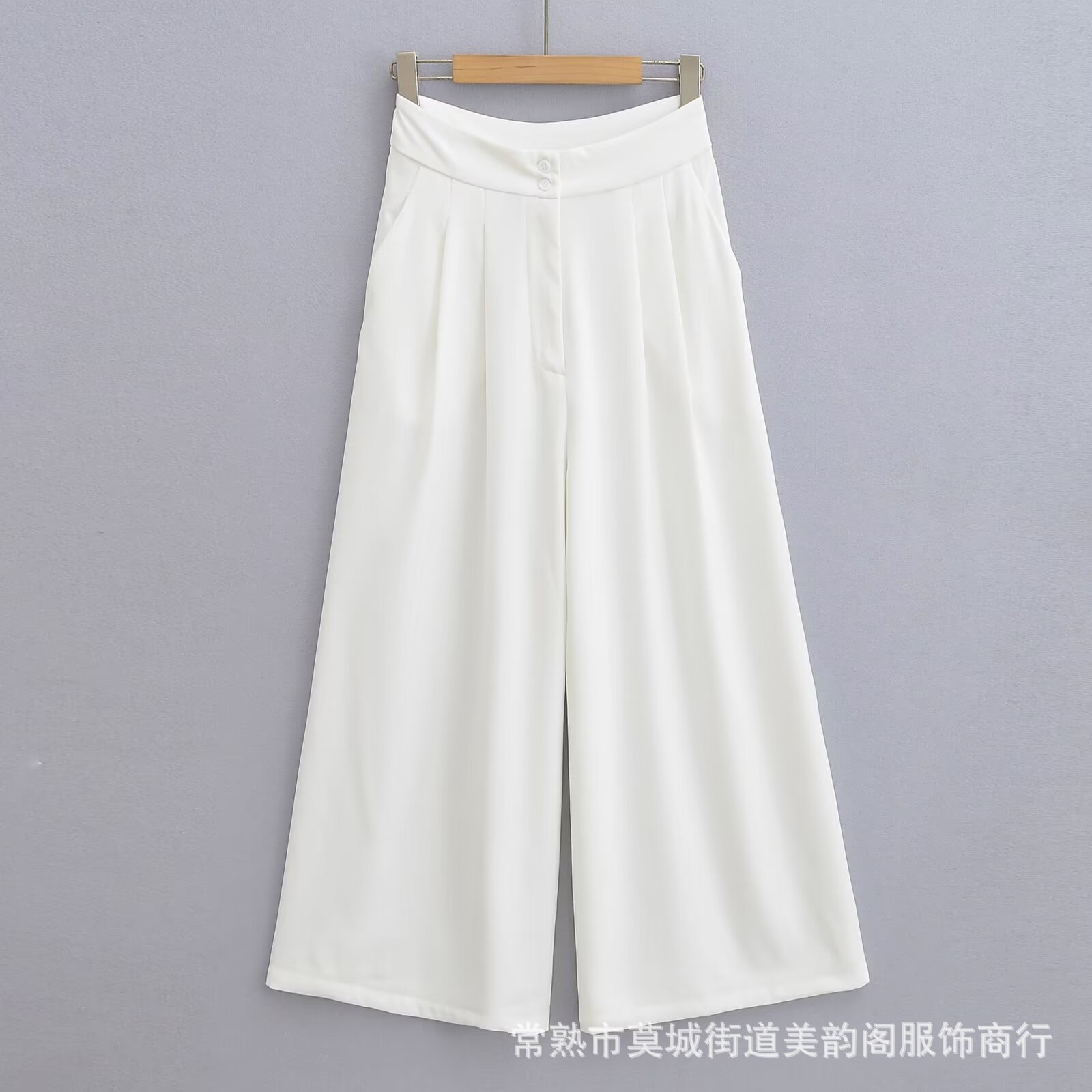 UC & ZA 국경 유럽 및 미국 스타일 여성 착용 흰색 높은 허리 느슨한 캐주얼 리넨 혼합 넓은 다리 바지 팬츠 2365586