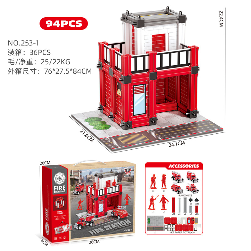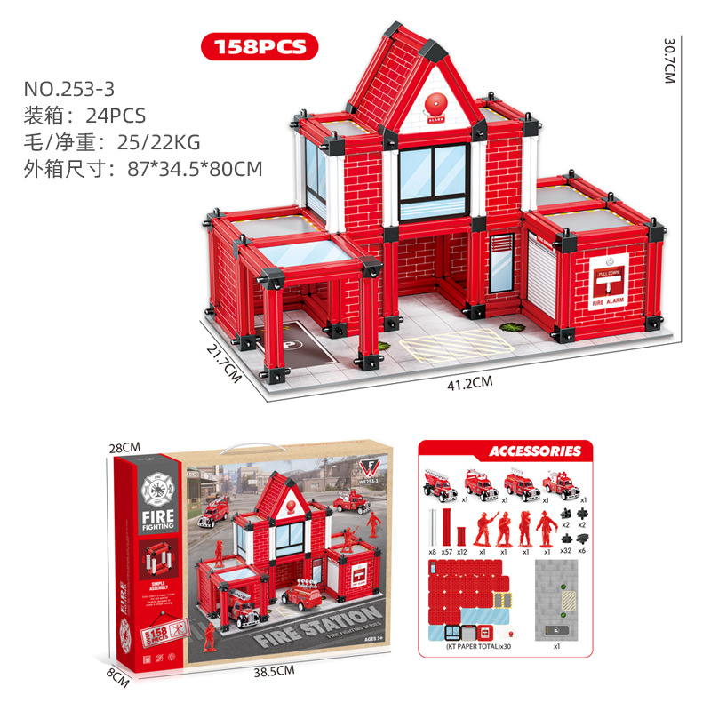 253-3消防/工程/警察拼装屋积木 | 彩盒 | 38.5*8*28cm | 24 | 87*34.5*80cm | 25/22 | 0.24 | 0.9 |