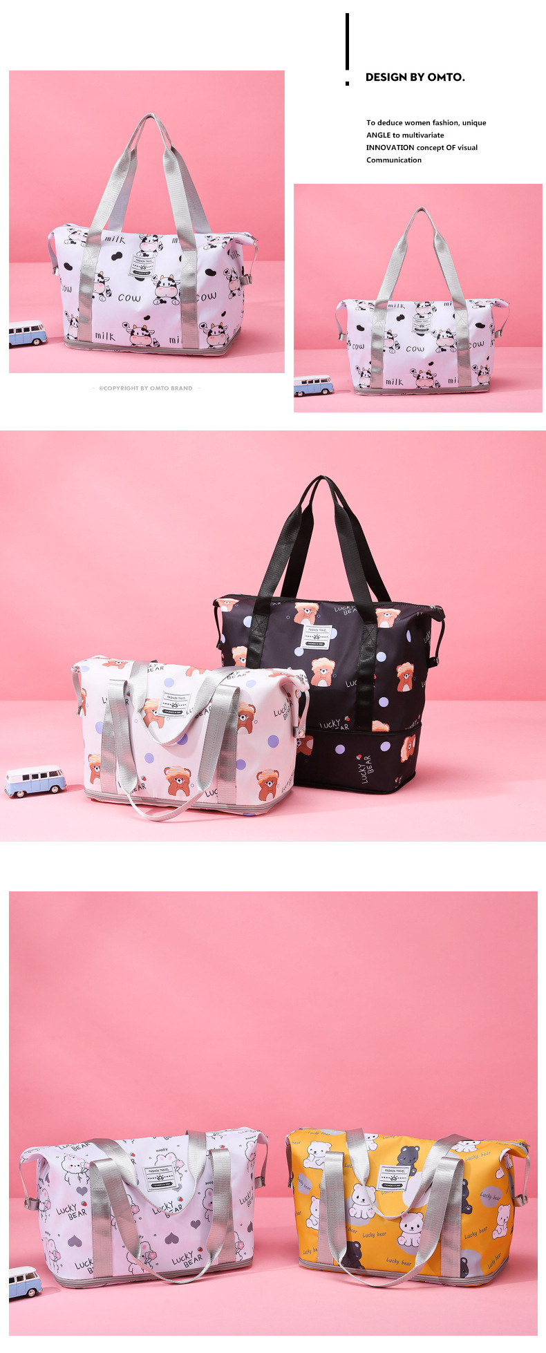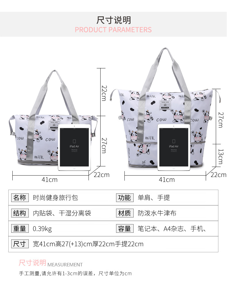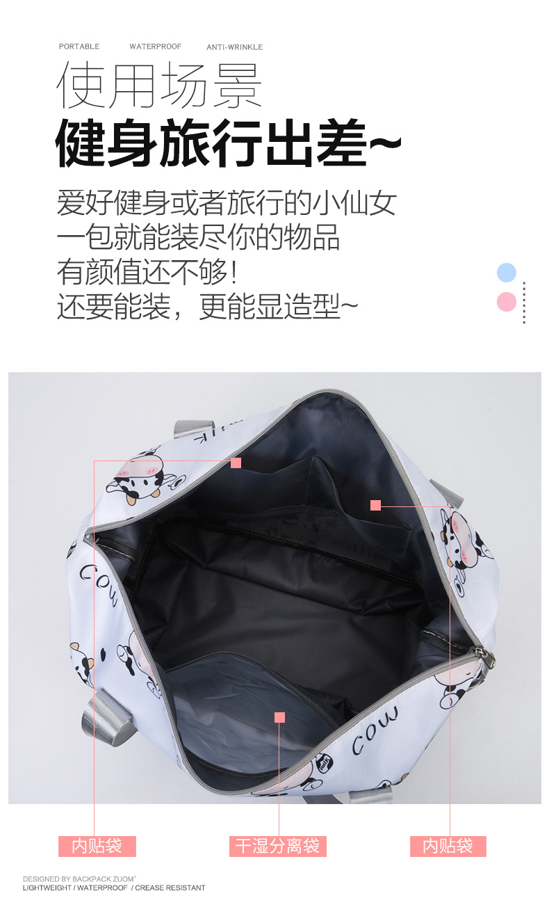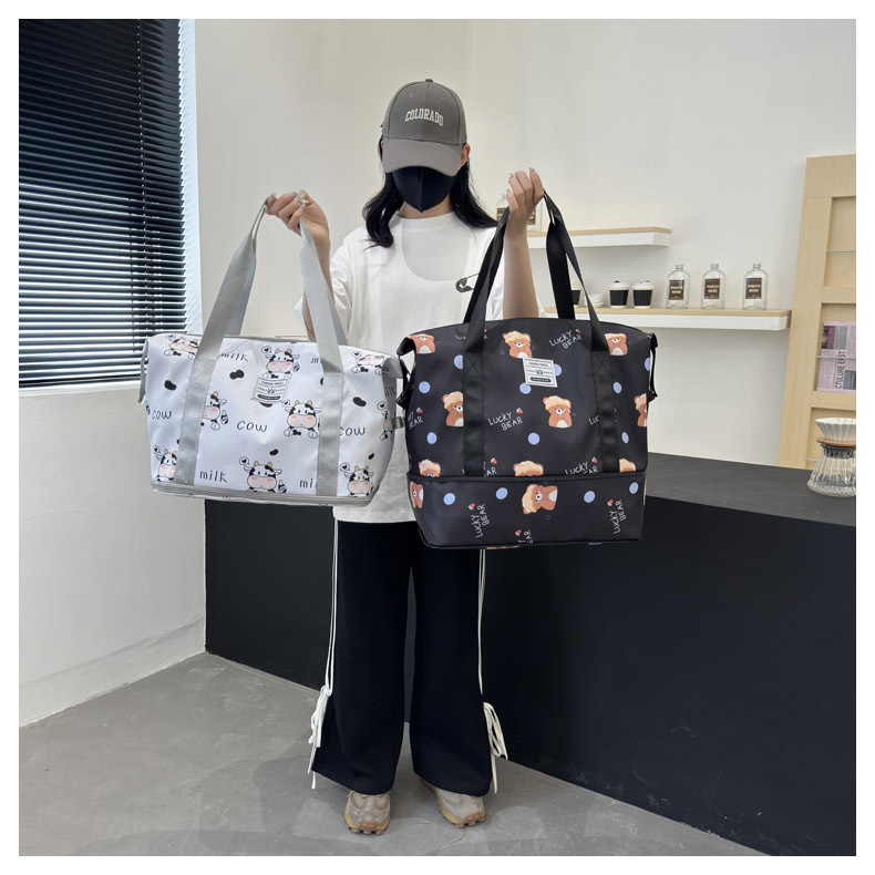 건조하고 젖은 별도의 저장 가방 대용량 경량 휴대용 가방 생산 연장 여행 가방 만화 인쇄 요가 가방