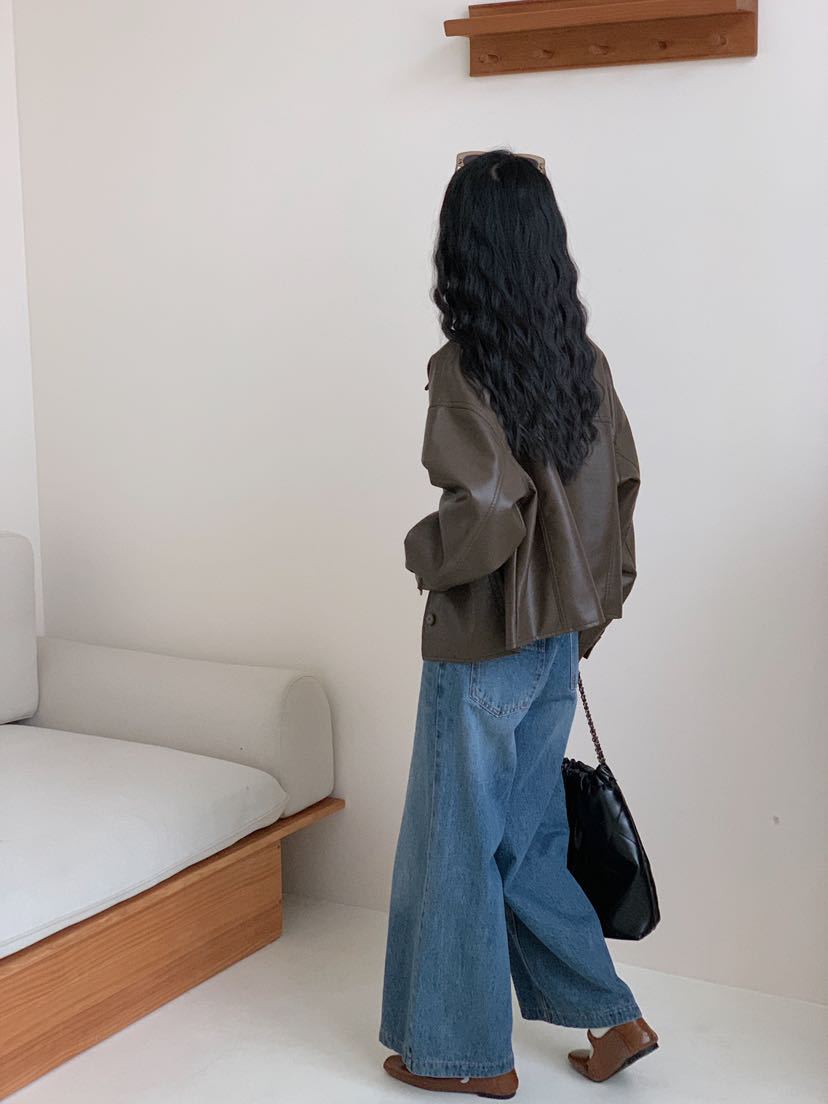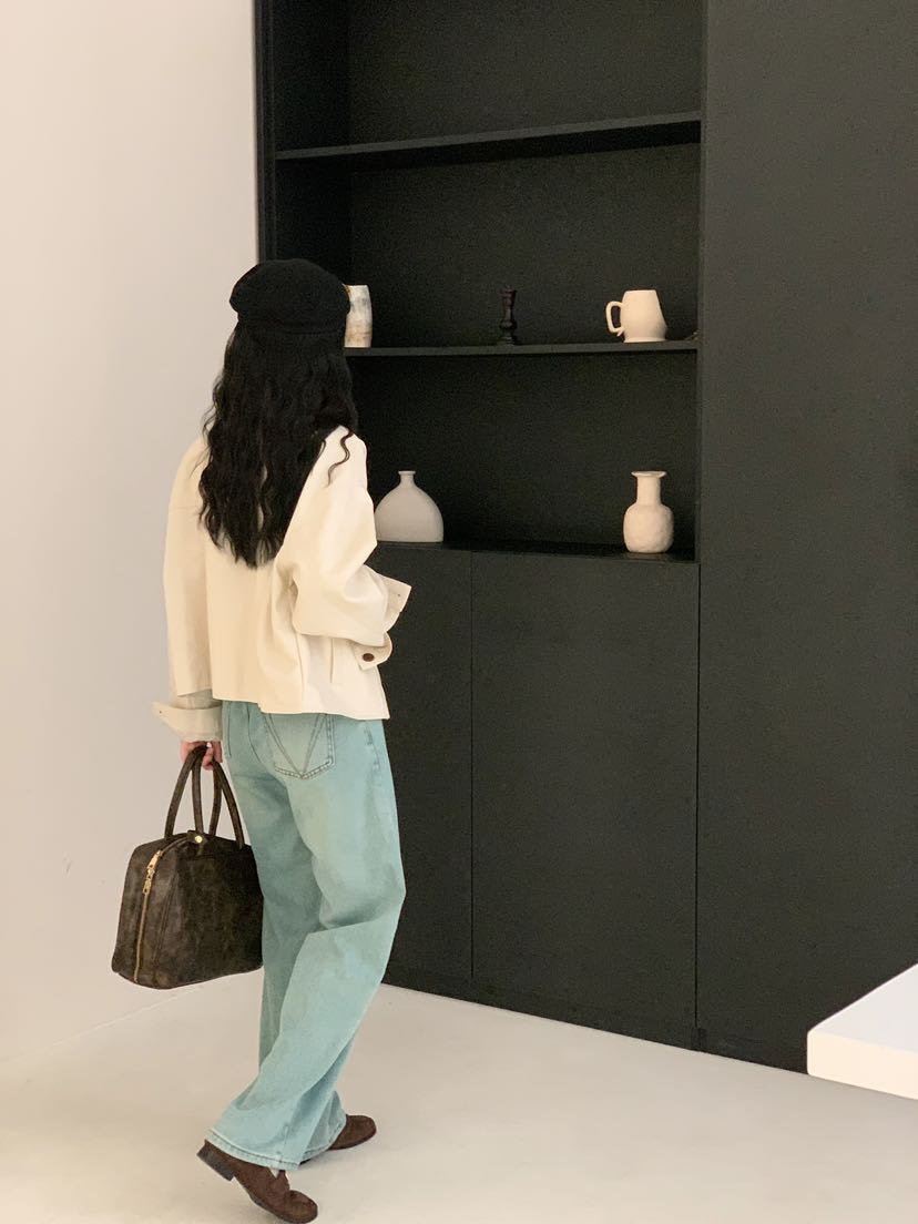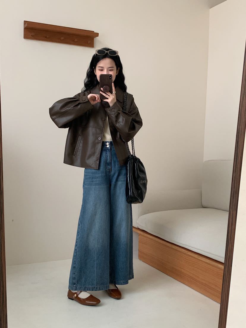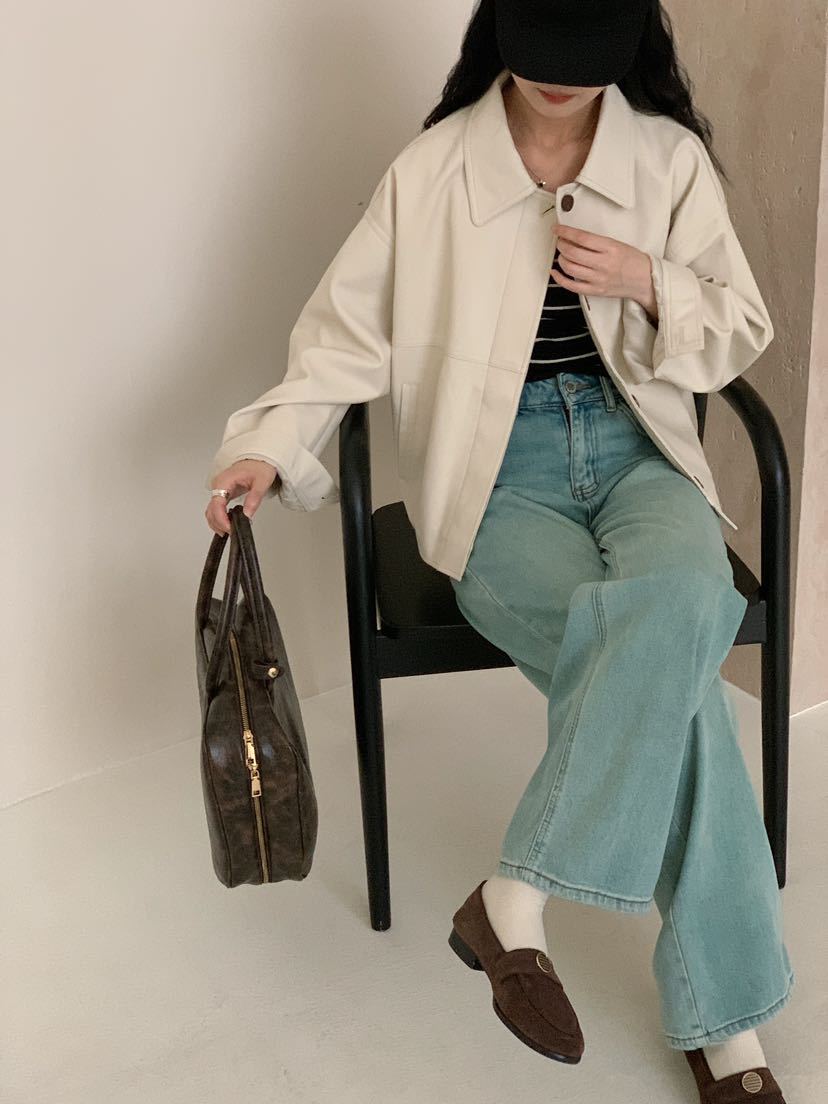 2024 한국 스타일 우아한 슬림 핏 짧은 가죽 코트 여성 가을 올 매치 퓨어 옷깃 캐주얼 자켓스토어 가기