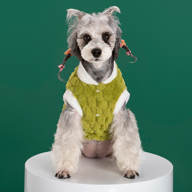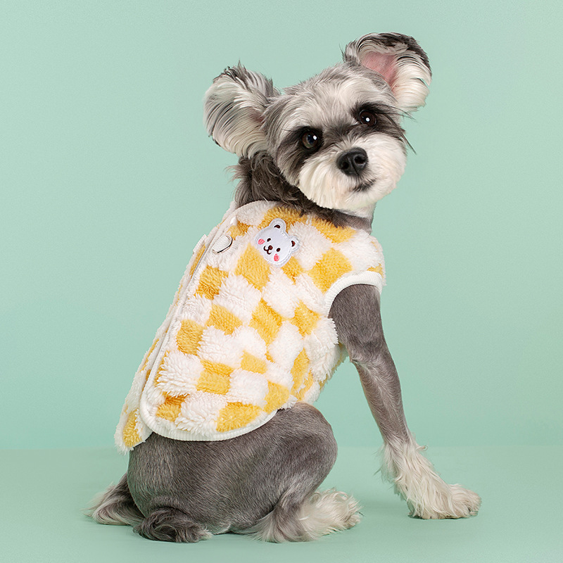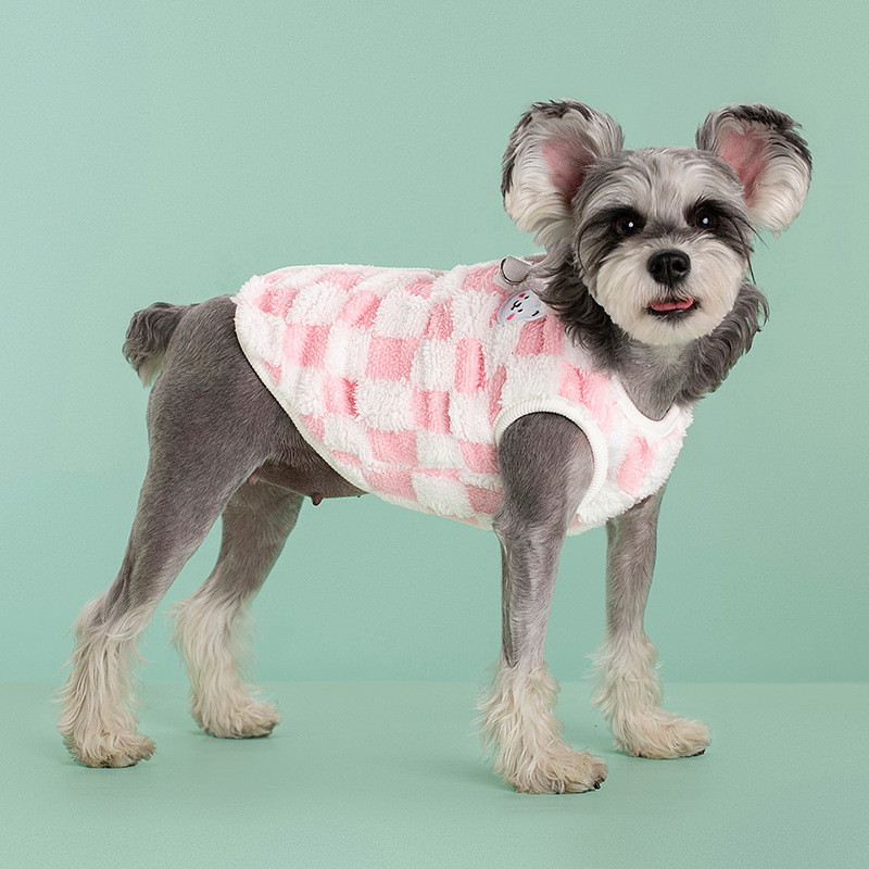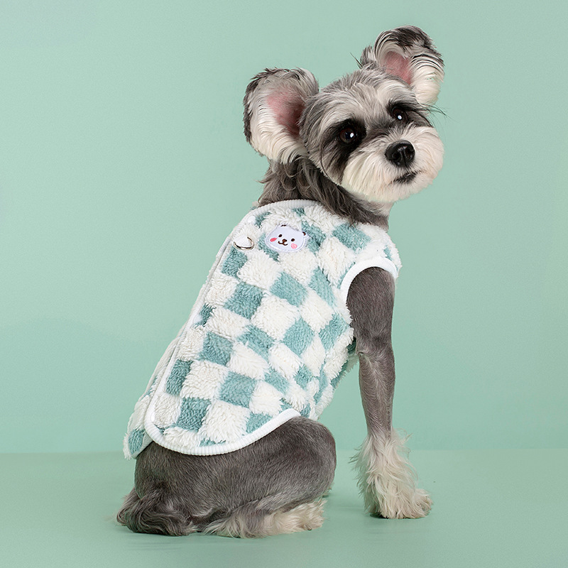 가을과 겨울 애완견 의류 테디 고양이 양털 조끼 패딩, 견인 버클 체크 무늬 조끼 도매스토어 가기
