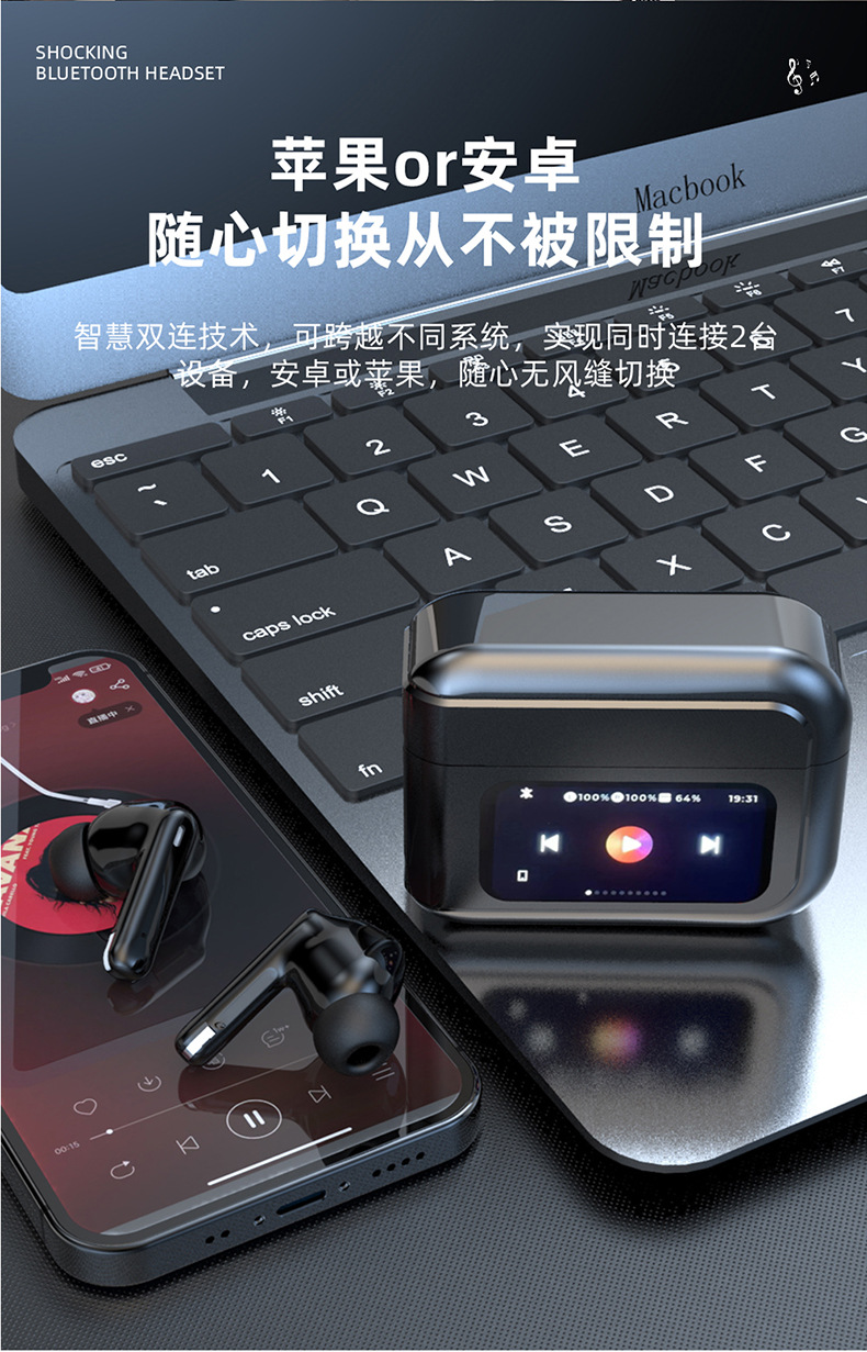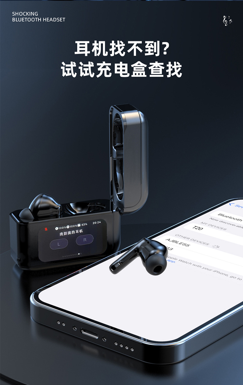 T20 풀 컬러 스마트 스크린 블루투스 헤드셋 64G 로컬 메모리 ANC 소음 감소 국경 아마존 무선 헤드셋스토어 가기