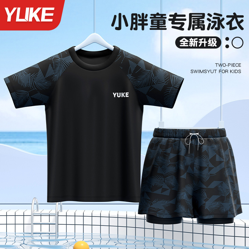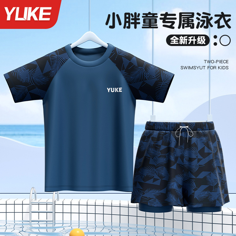 어린이 수영복 소년 통통한 2024 큰 어린이와 소년을위한 새로운 여름 분할 수영복 느슨한 훈련 수영복