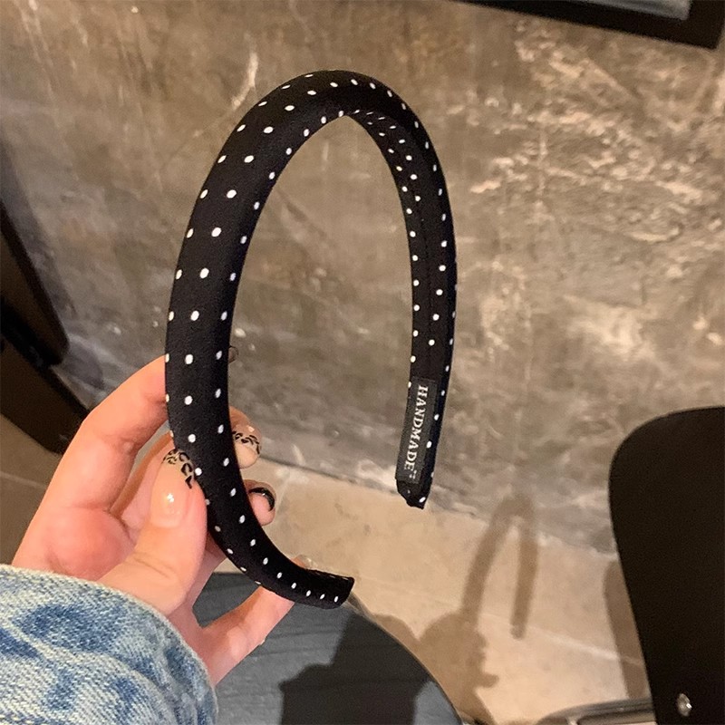 • 블랙 도트무늬 얇은 헤어밴드 (폭 1.5cm)