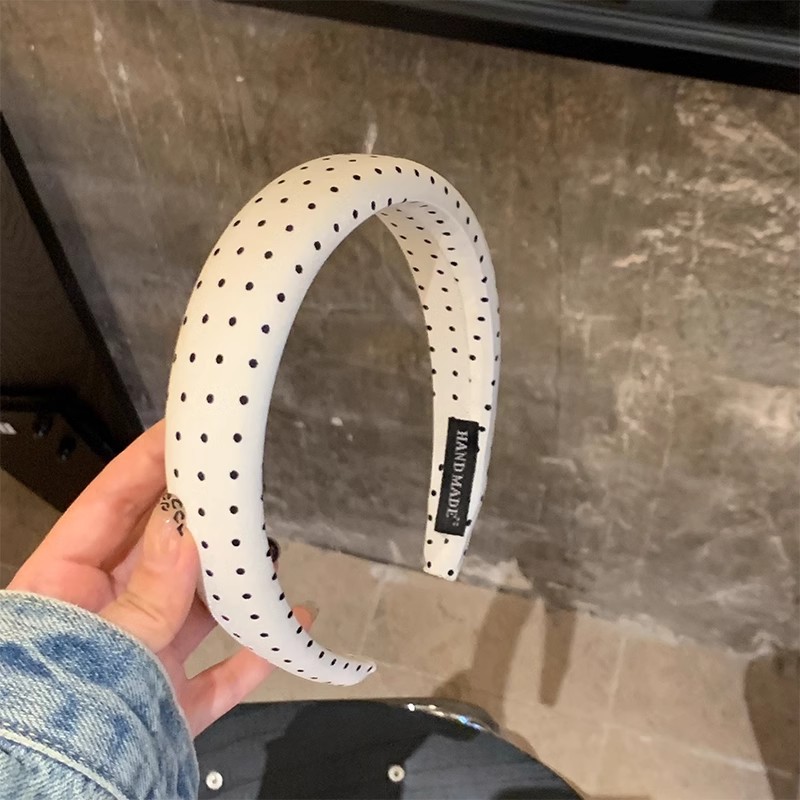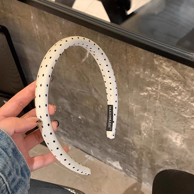 • 화이트 도트무늬 와이드 헤어밴드 (폭 3cm)