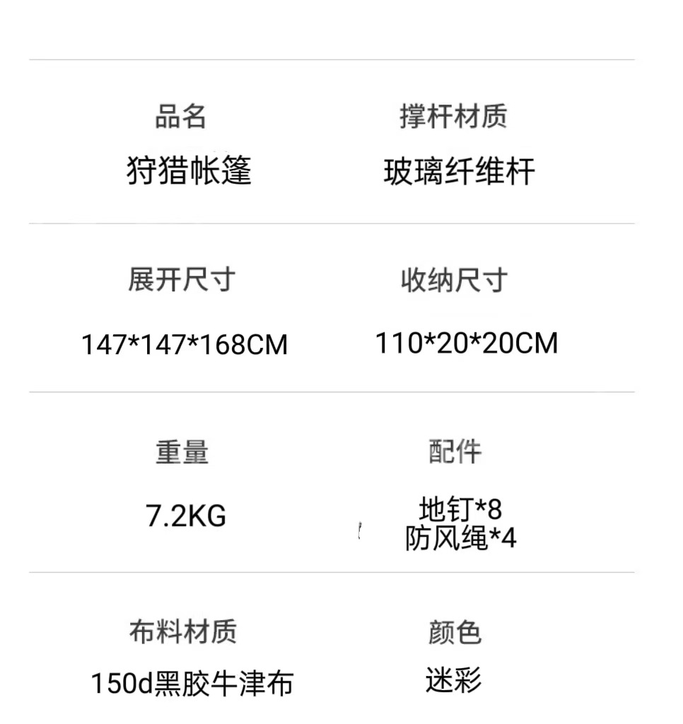• 위장: 270 ° 사냥 텐트