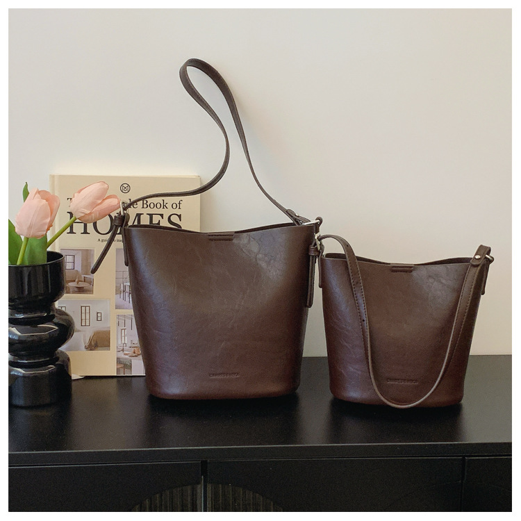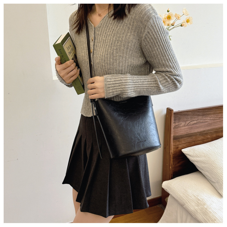 레트로 틈새 디자인 가방 여성의 2024 새로운 간단한 크로스 바디 작은 가방 하이 엔드 패션 어깨 버킷 가방스토어 가기