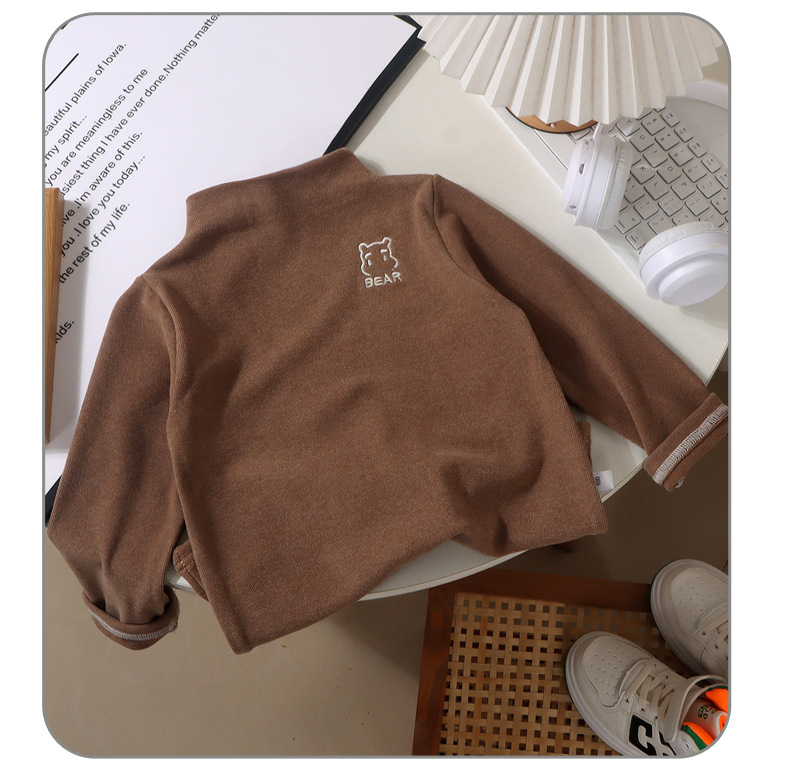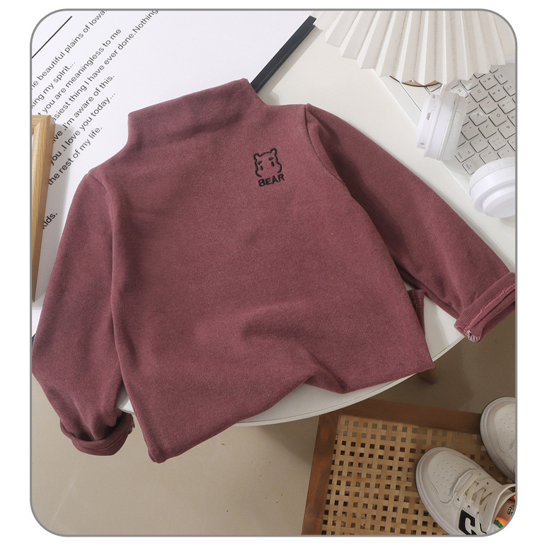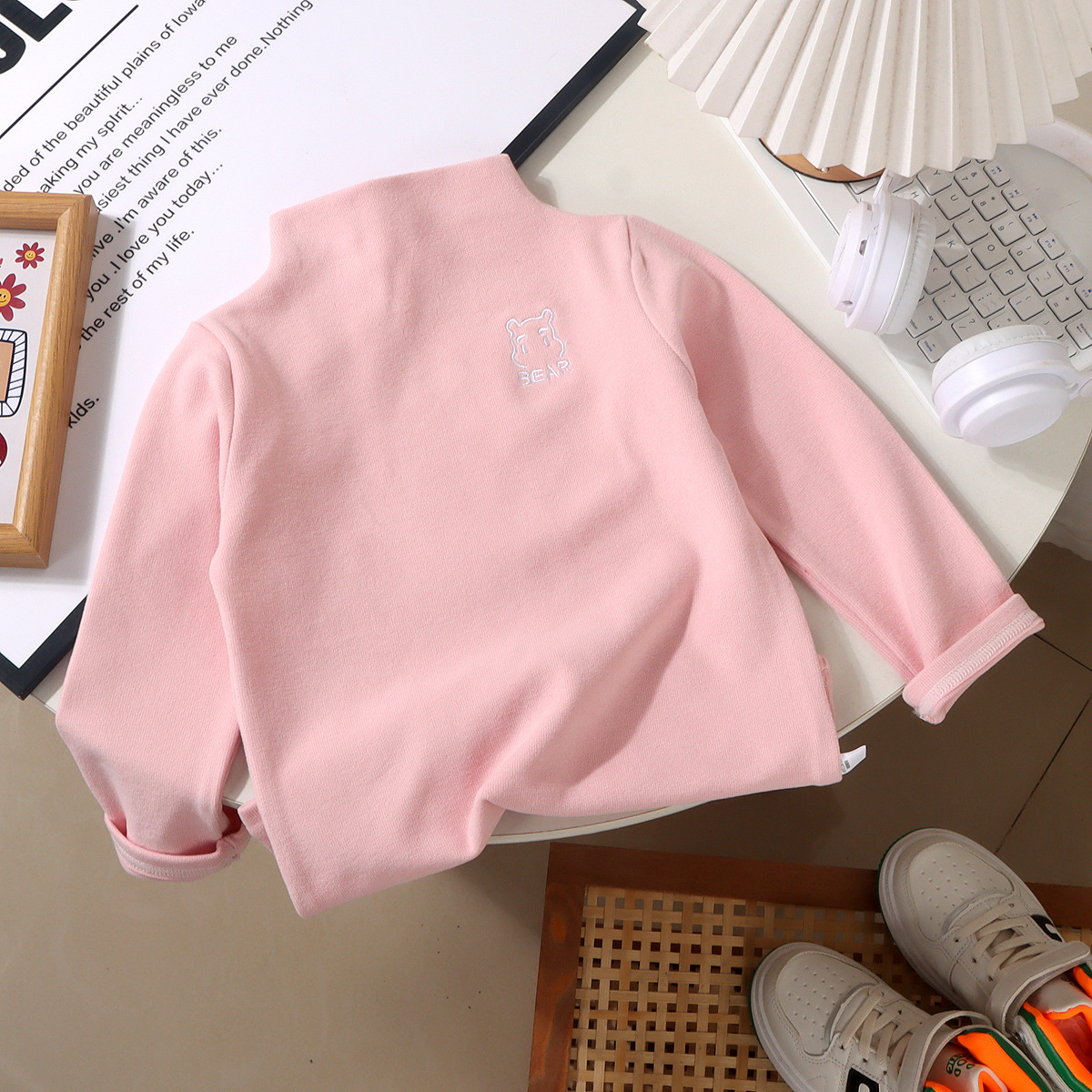 어린이 뉴 보이즈 · 걸스 하프하이 칼라 따뜻한 내부 재킷 중소형 어린이 아기 티셔츠 긴팔 베이스 셔츠 트렌디스토어 가기