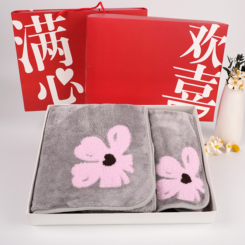 산호 양털 뜨거운 꽃 수건 목욕 수건 선물 상자 세트 두꺼운 물 흡수 회사 연례 회의 이벤트 결혼식 동반 행사스토어 가기