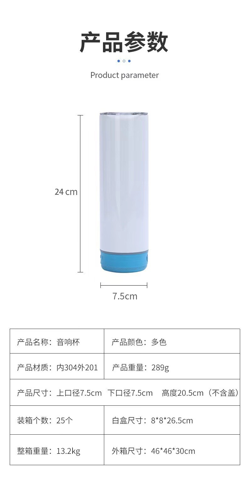 국경 간 승화 20oz 블루투스 오디오 컵 창조적 인 304 스테인레스 스틸 보온병 컵 더블 진공 스트레이트 컵