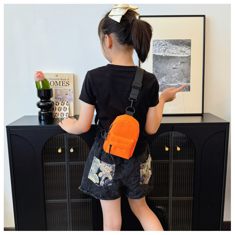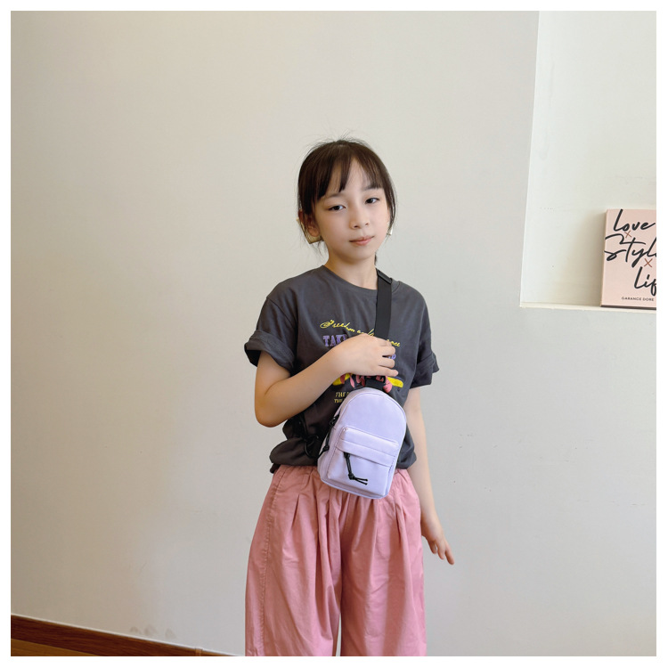한국 스타일 2024 새로운 도착 유행 소년 소녀 작은 광장 가방 어린이 가방 서양식 단색 경량 미니 키즈 크로스 바디 백