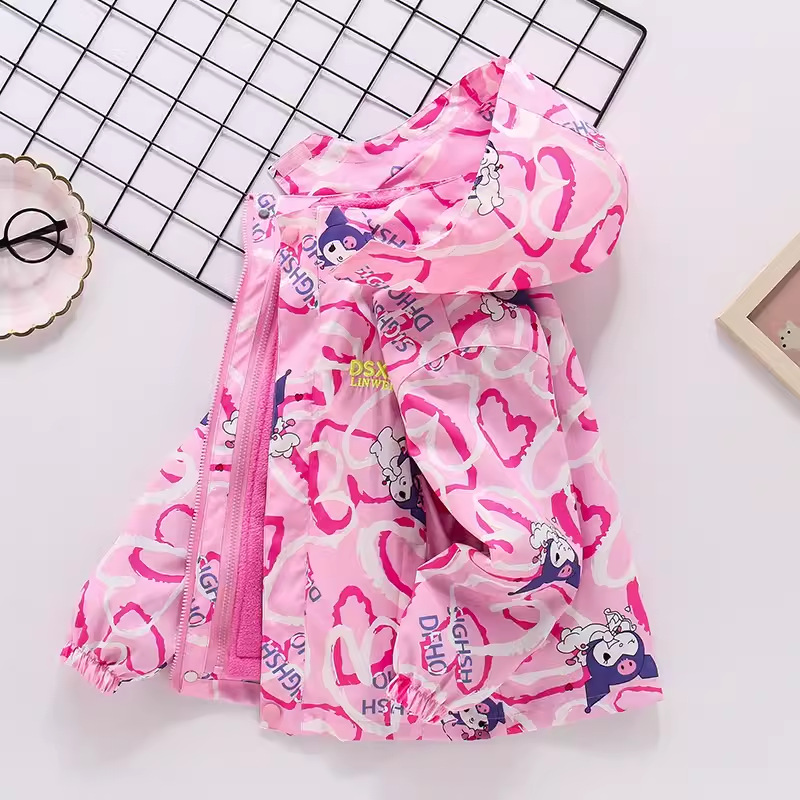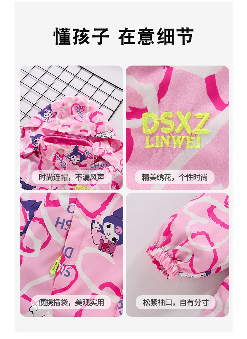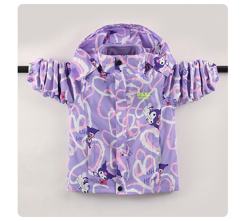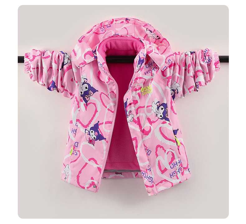 2025 새로운 가을 겨울 여아 코트 라인 쿠로미 3-in-1 탈착식 재킷 중대형 아동용 투피스 세트