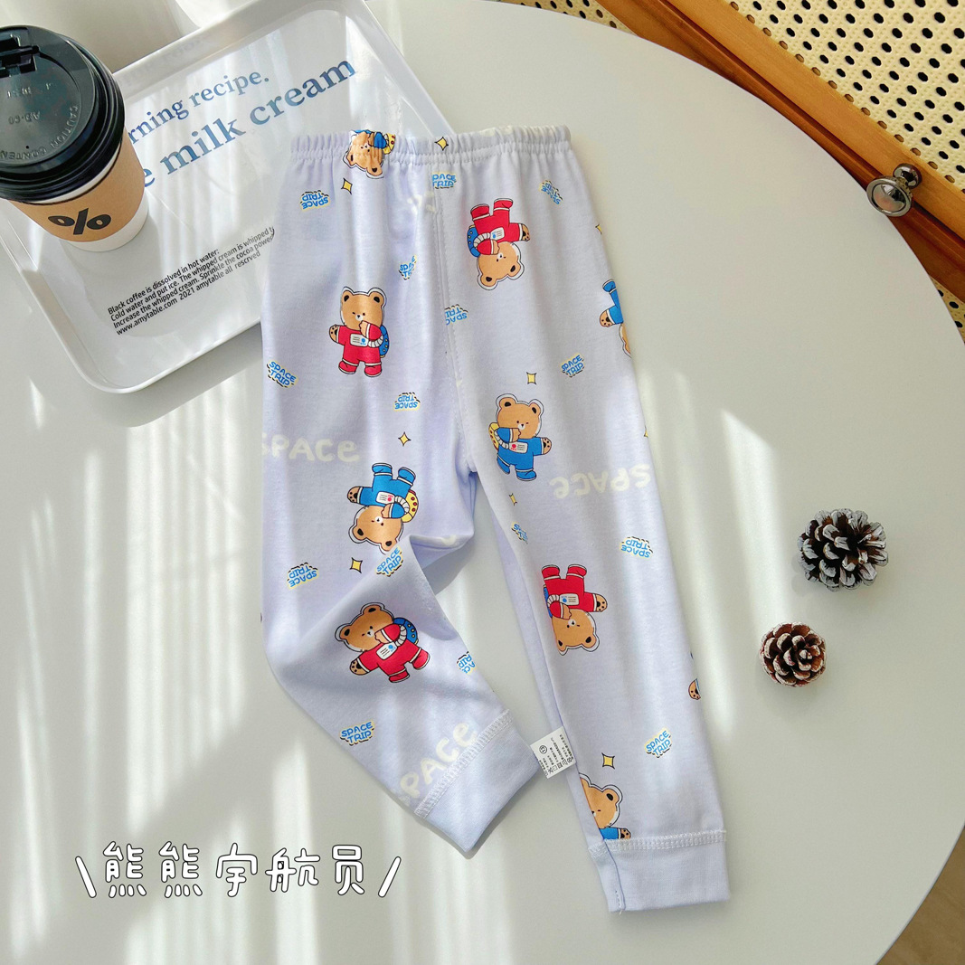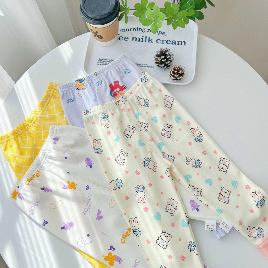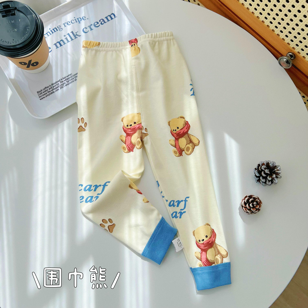 25 남아 여아 바지 가을 겨울 아동 순면 가을바지 면바지 이너웨어 잠옷 아기 보온바지 만화 유아용스토어 가기
