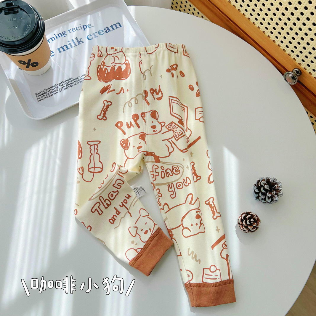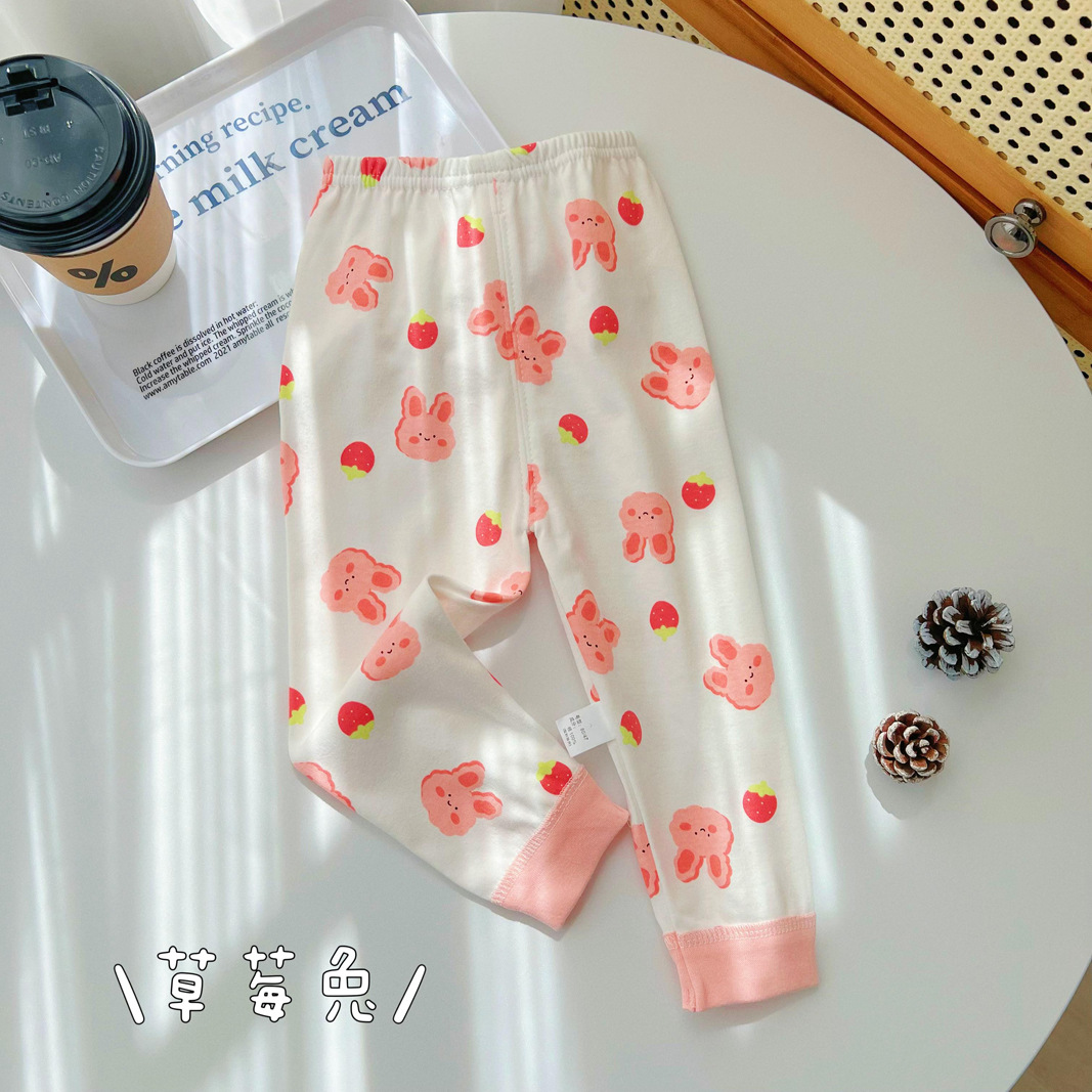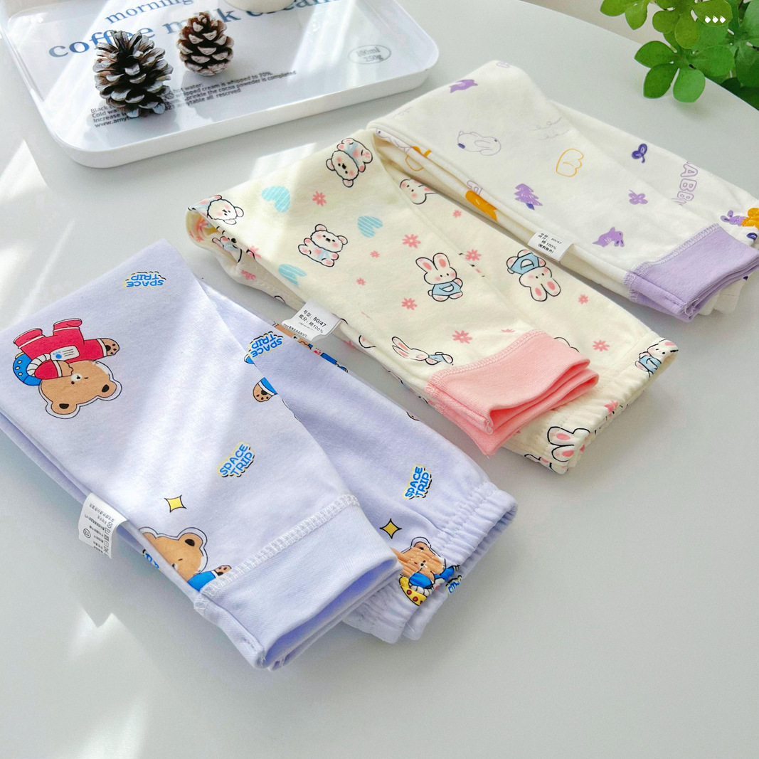25 남아 여아 바지 가을 겨울 아동 순면 가을바지 면바지 이너웨어 잠옷 아기 보온바지 만화 유아용스토어 가기