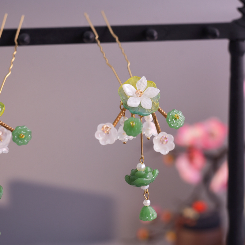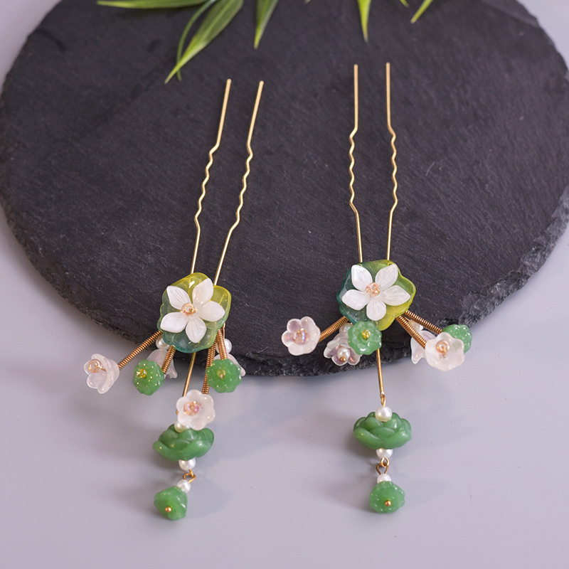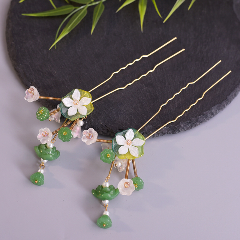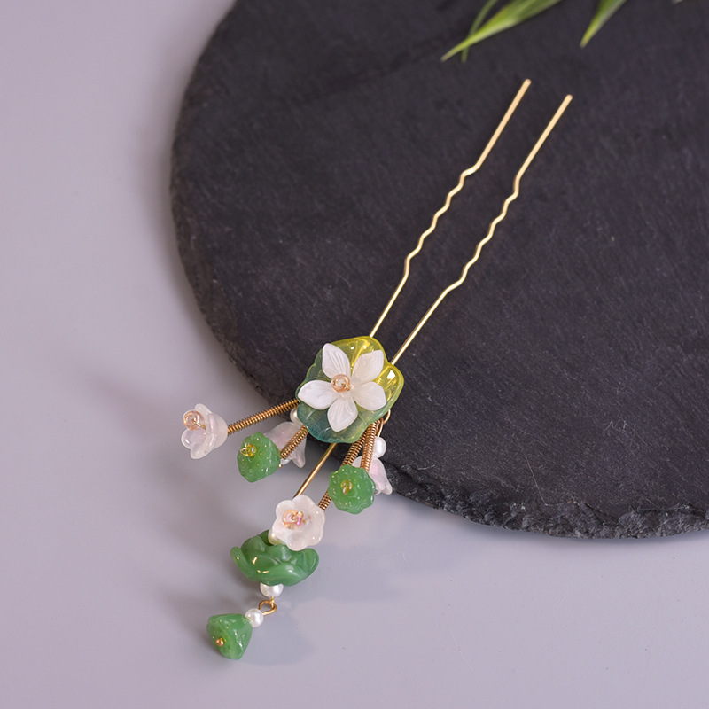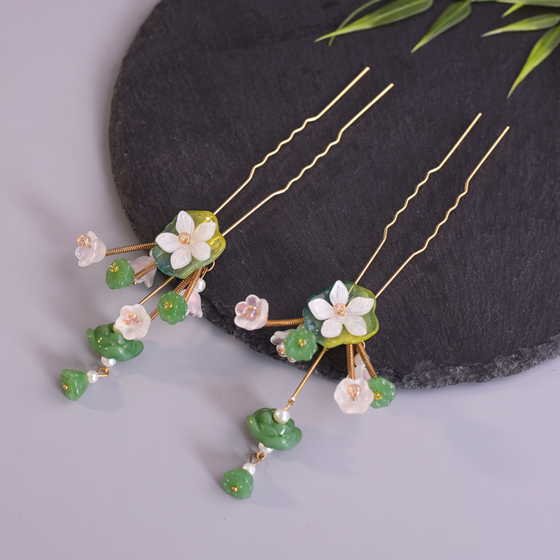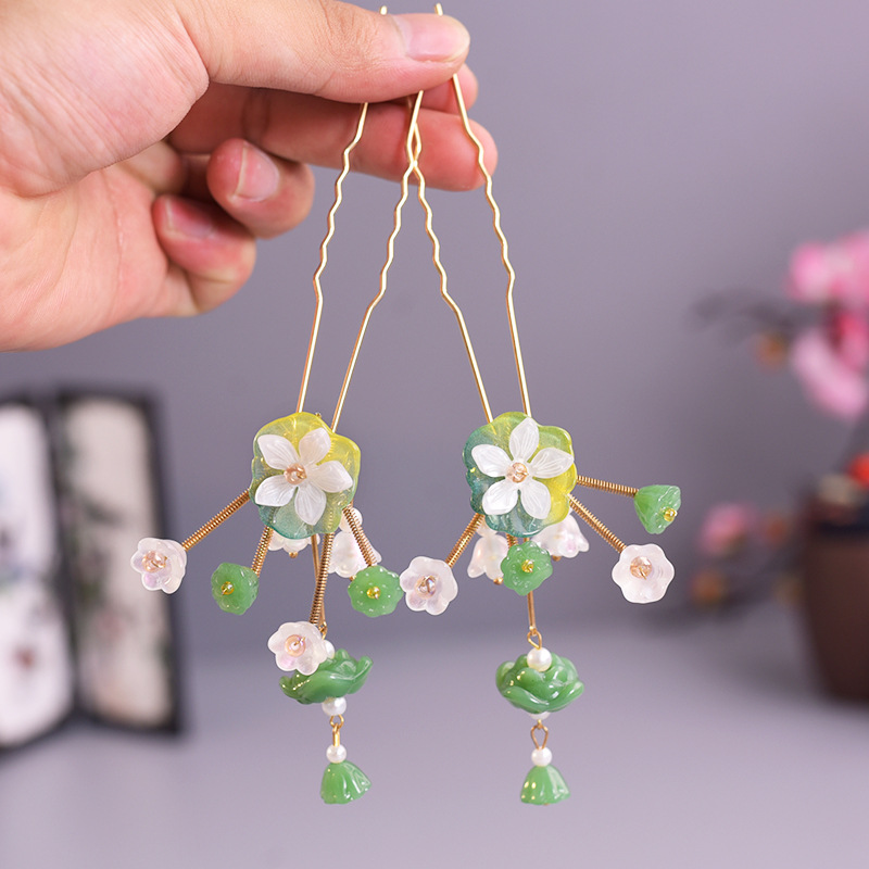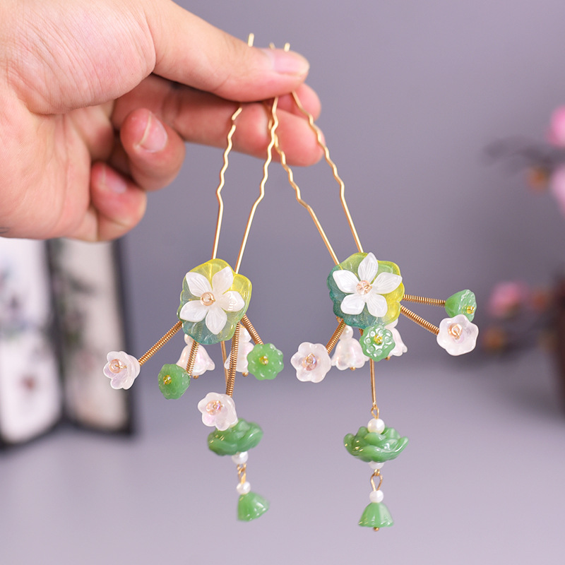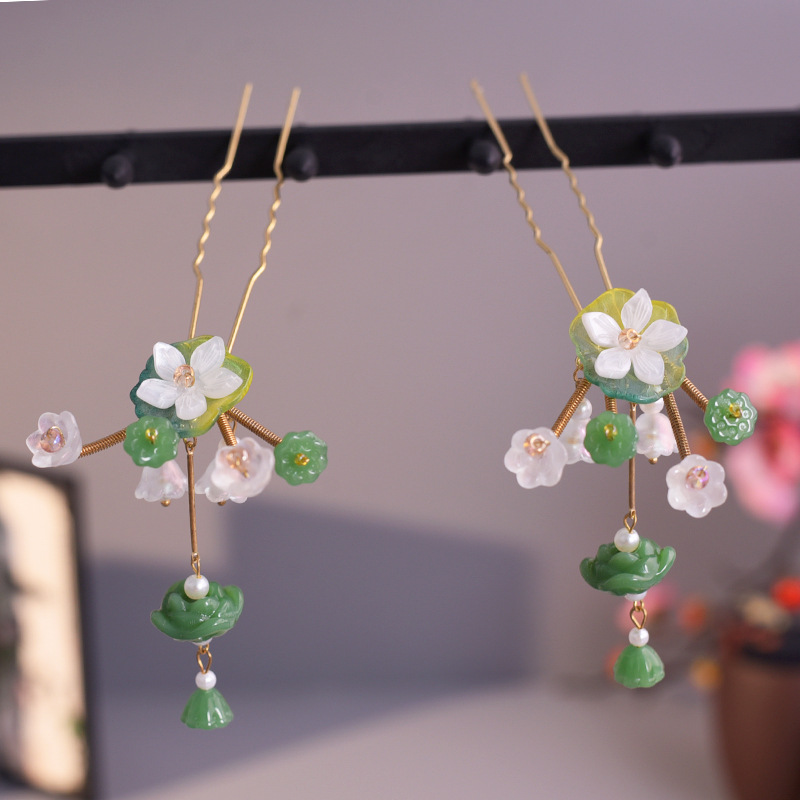 원래 신선한 골동품 연꽃 잎 머리 연꽃 캐노피 한푸 헤어 액세서리 새로운 중국 연꽃 장식 작은 머리핀 고대 의류 액세서리스토어 가기