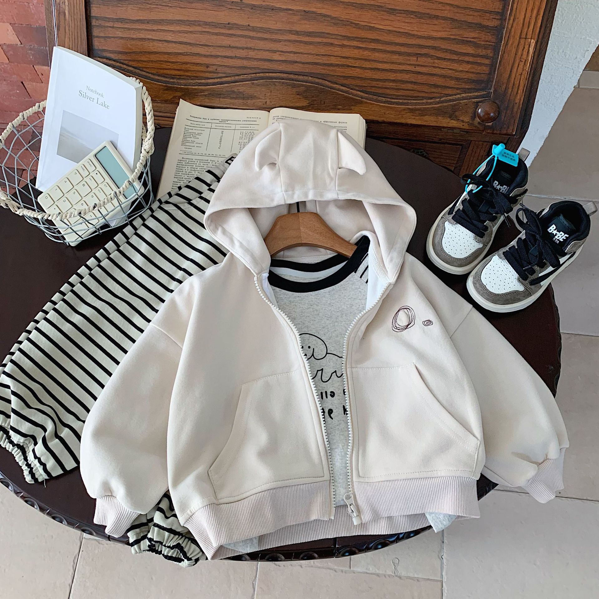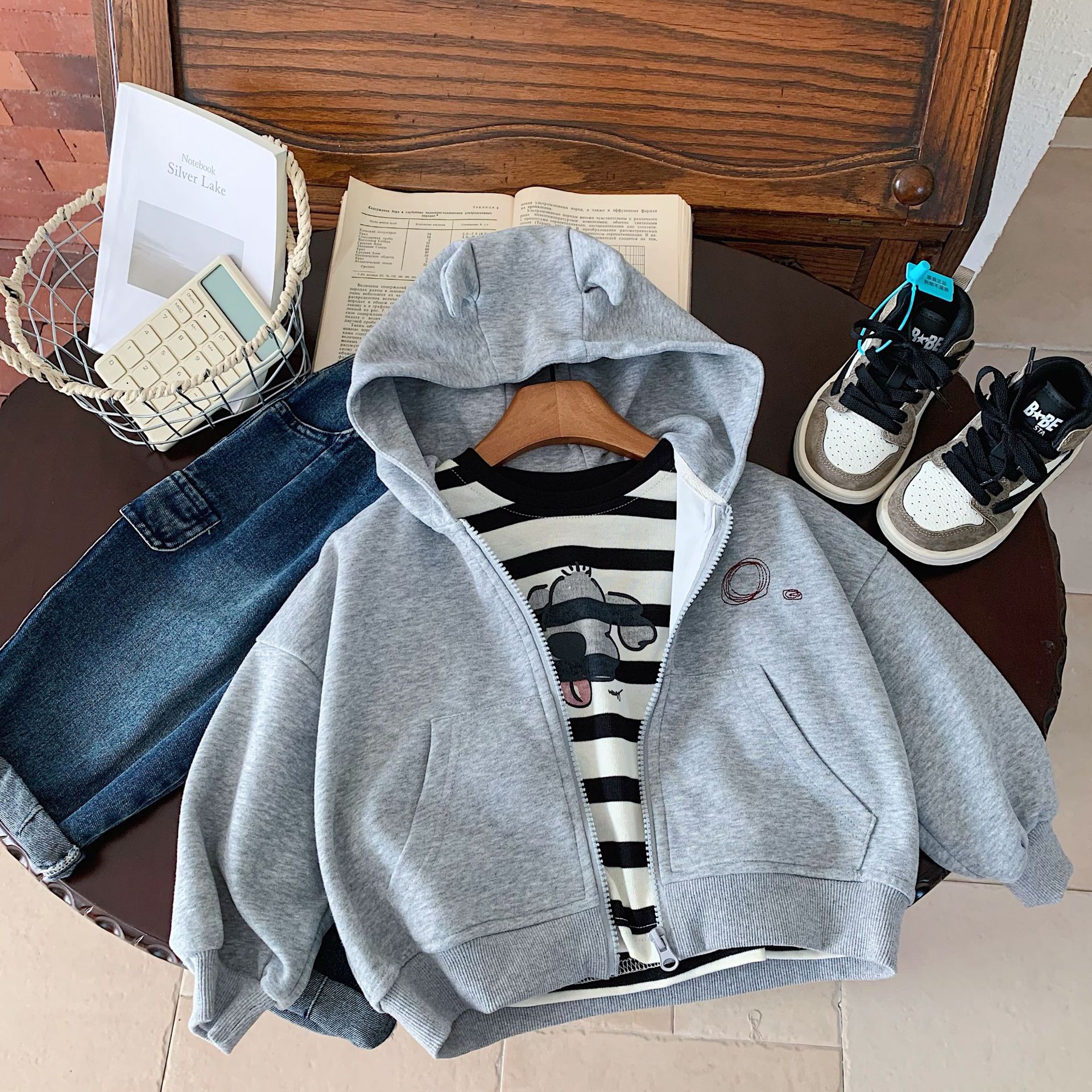 어린이 코트 Bangcheng 2025 가을 신상품 남아 자수 후드 가디건 코트 한국 스타일 부드럽고 트렌디한 G0352스토어 가기