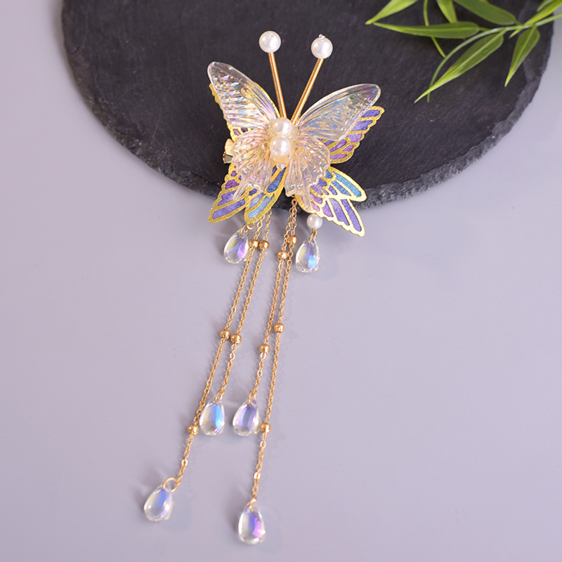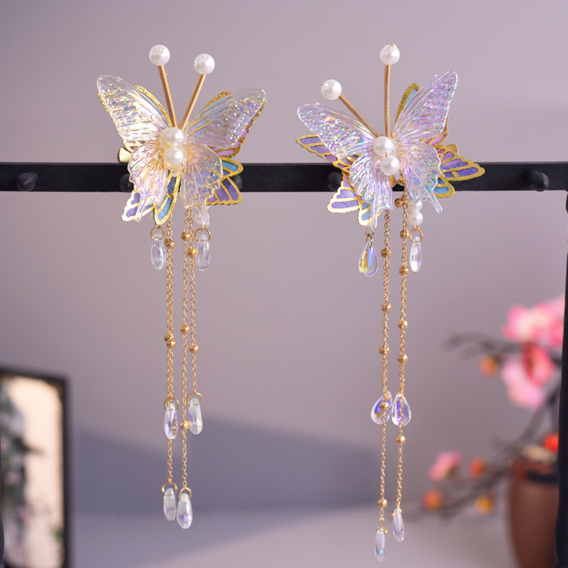 환상적인 나비 술 헤드웨어 한후 머리핀 꽃 헤어 액세서리 골동품 진주 산책 Guofeng 소녀의 요정 액세서리스토어 가기