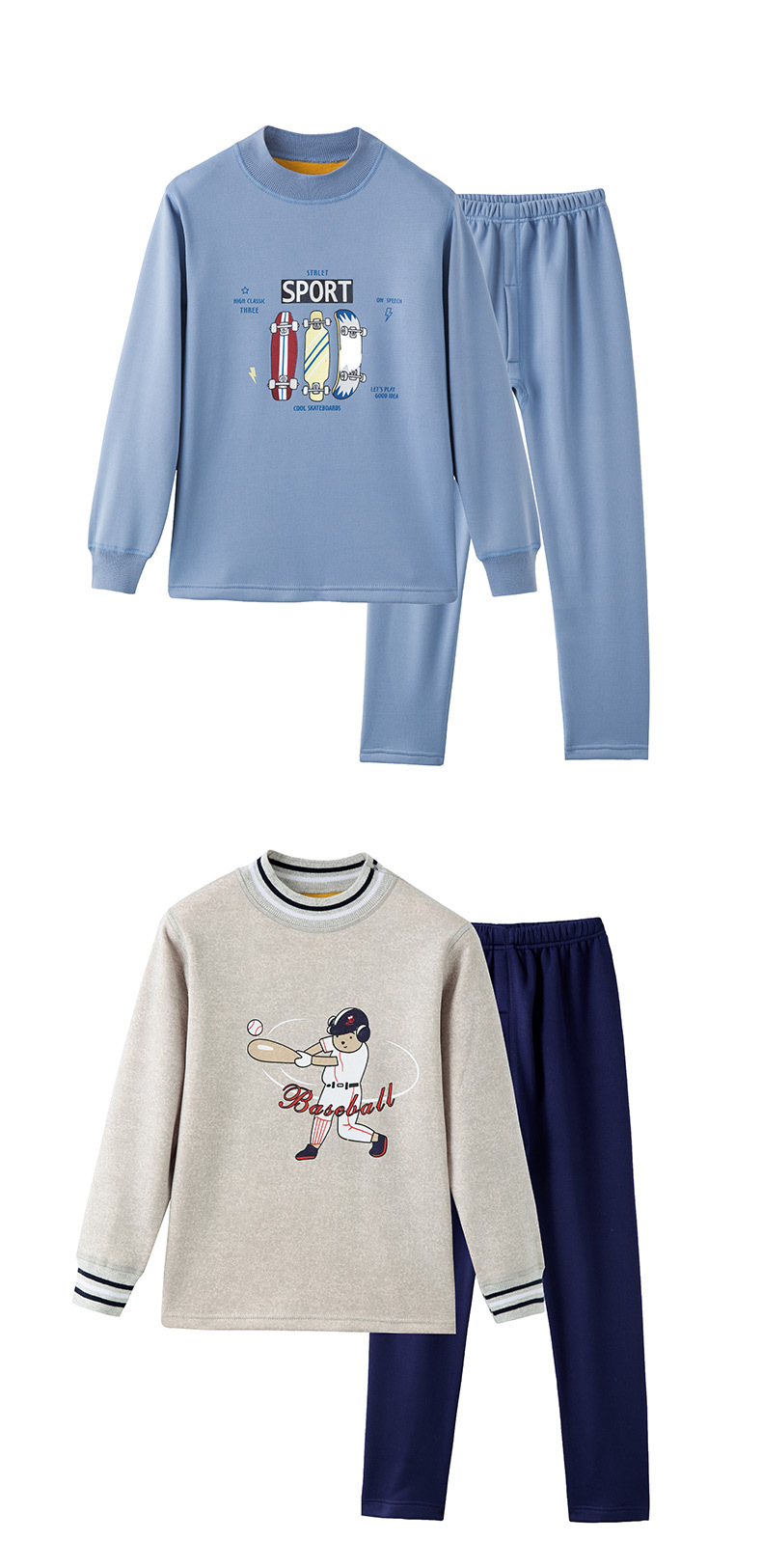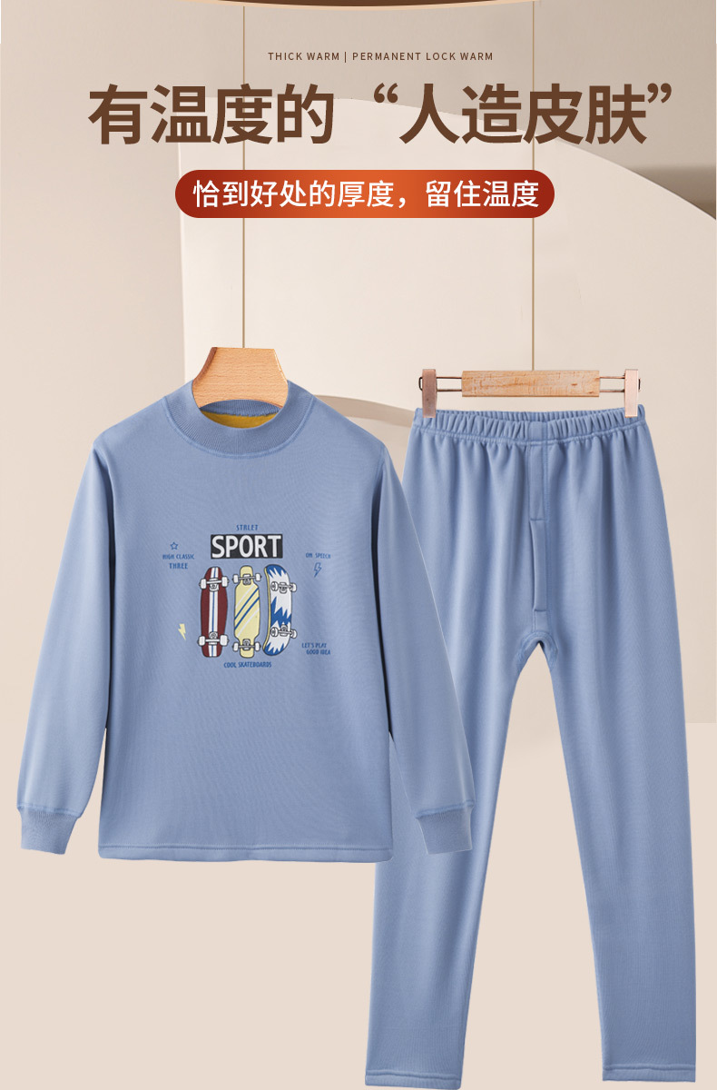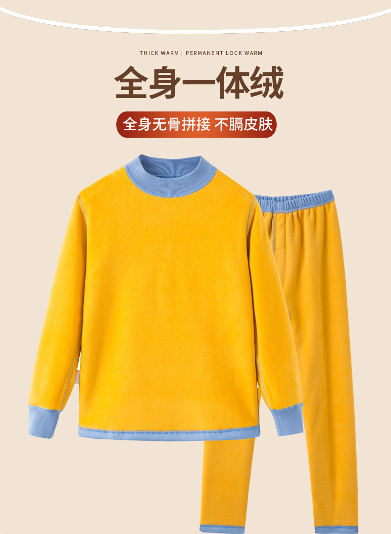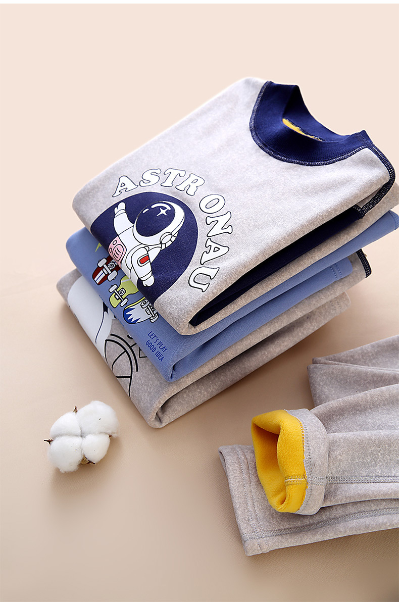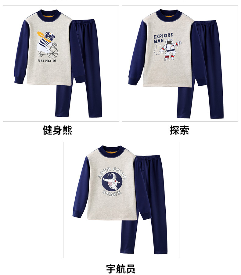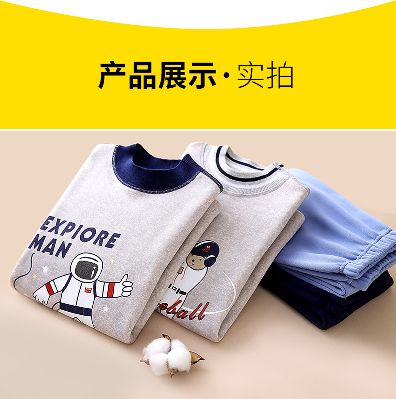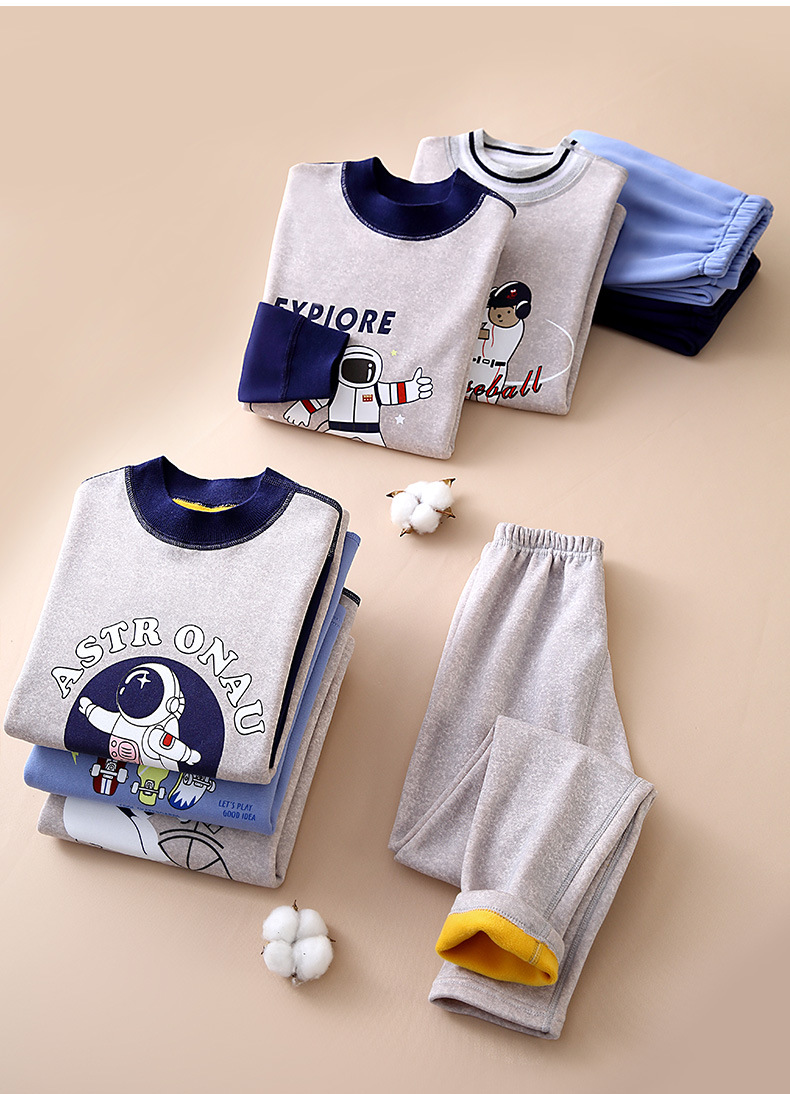 어린이 겨울 보온 내의, 가을옷, 가을바지, 중간 라운드넥, 남아 여아 유아 홈웨어 세트, 플리스 안감, 두꺼운스토어 가기