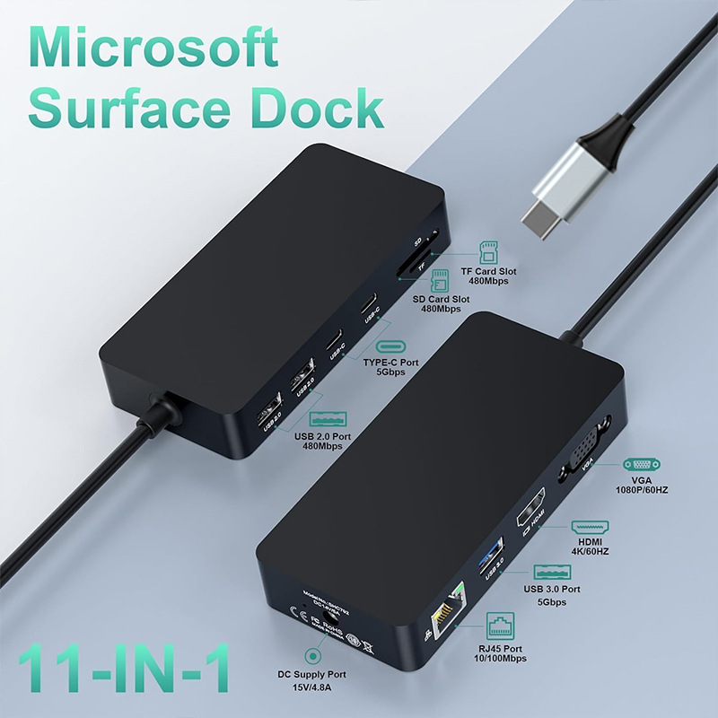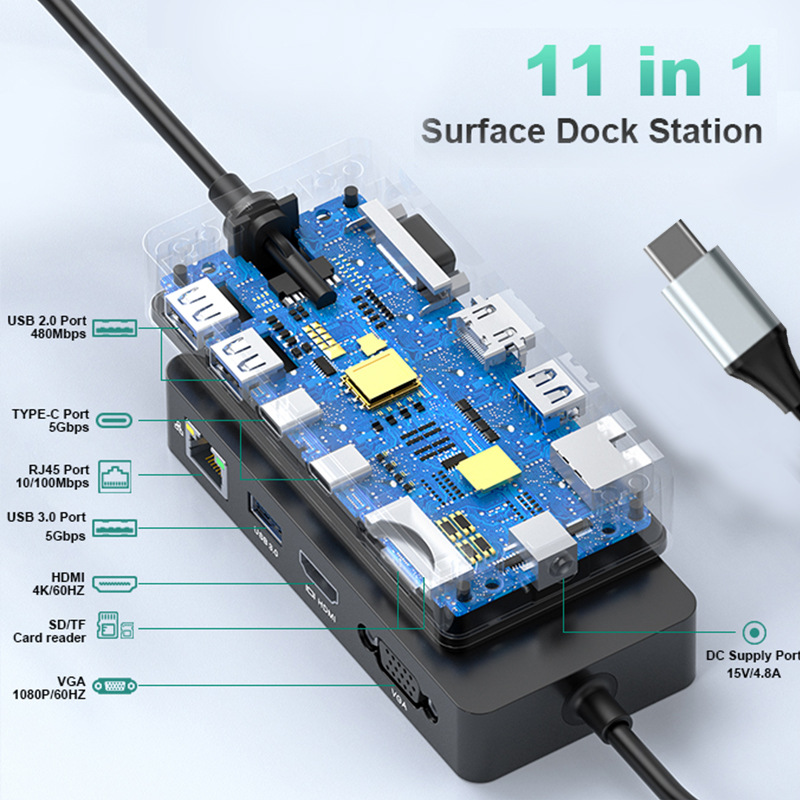 마이크로 소프트 표면 pro7/8/9/X 확장 도크 usb3.0 HDMI 네트워크 포트 PD 전원 공급 장치 카드 읽기 HUB