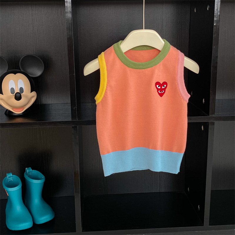 2025년 가을 신상 컬러 배색 니트 따뜻하고 편안한 귀여운 남녀 아동용 하트 스웨터 조끼 트렌디스토어 가기