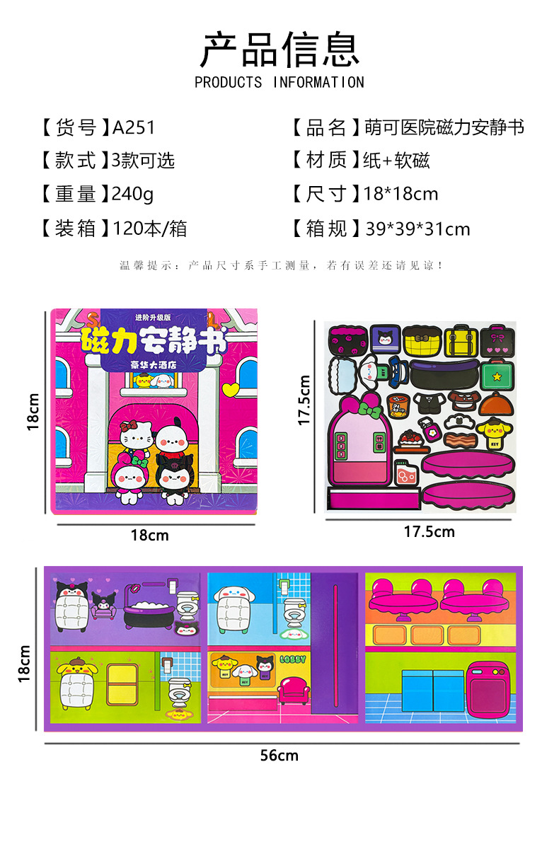 자기 조용한 책 멋진 귀여운 유치원 절단-무료 DIY 소녀 페이스트 장난감 호텔 스티커 책