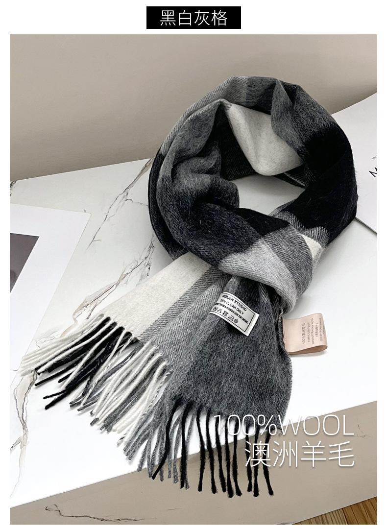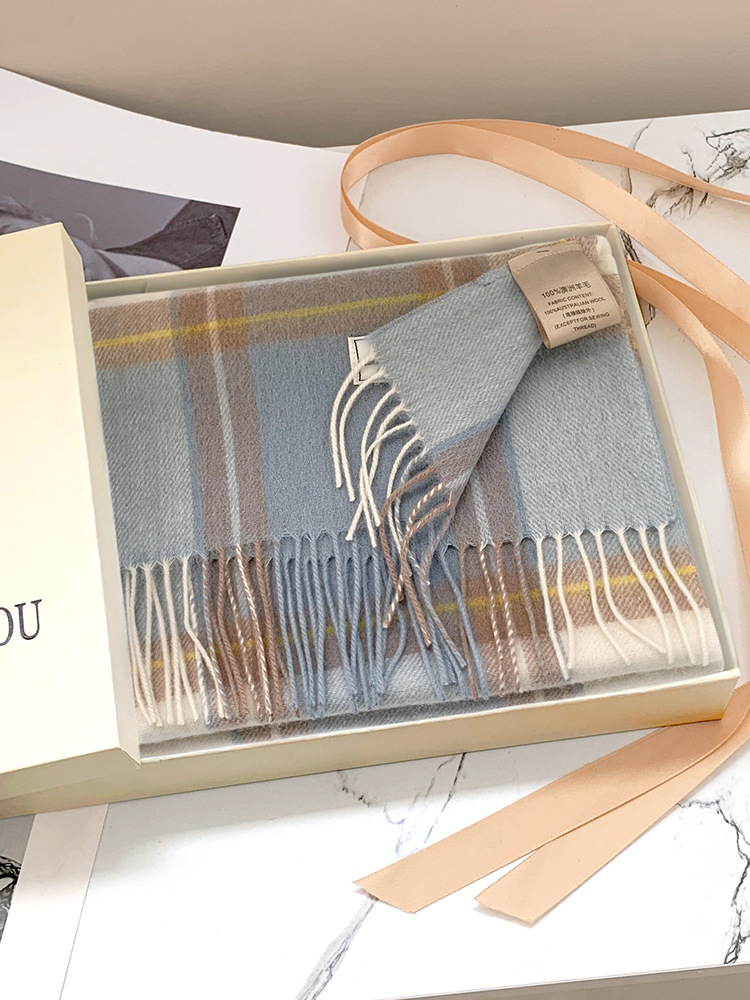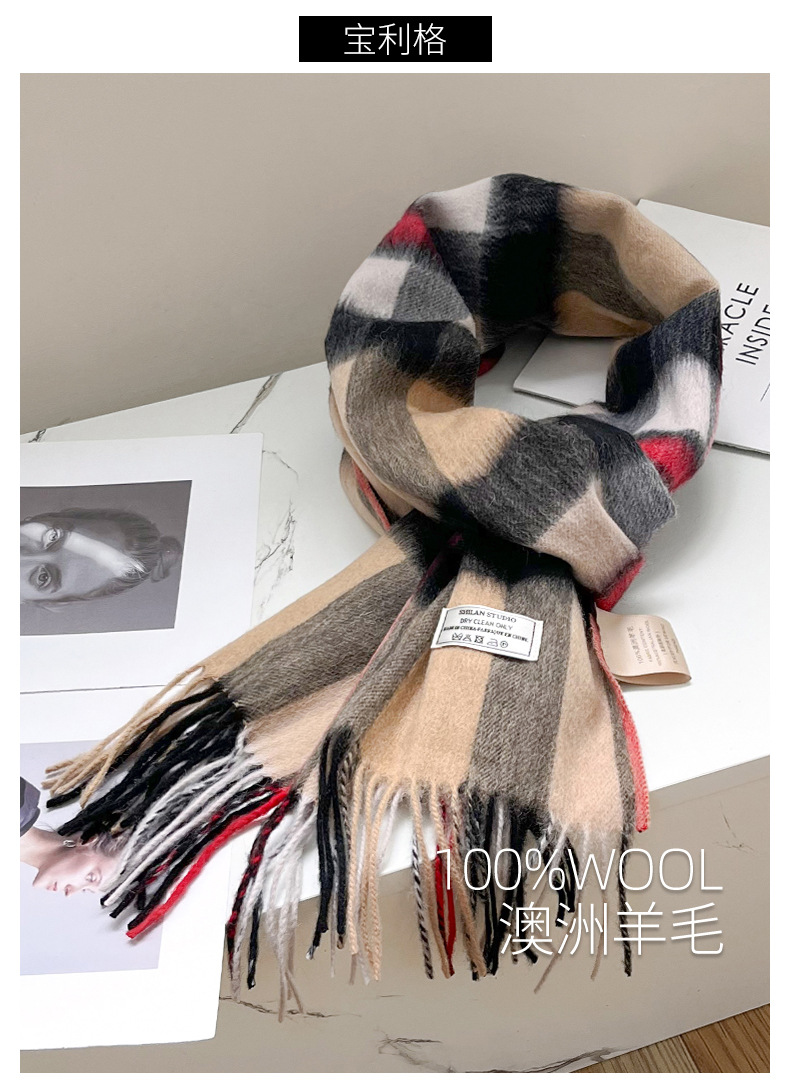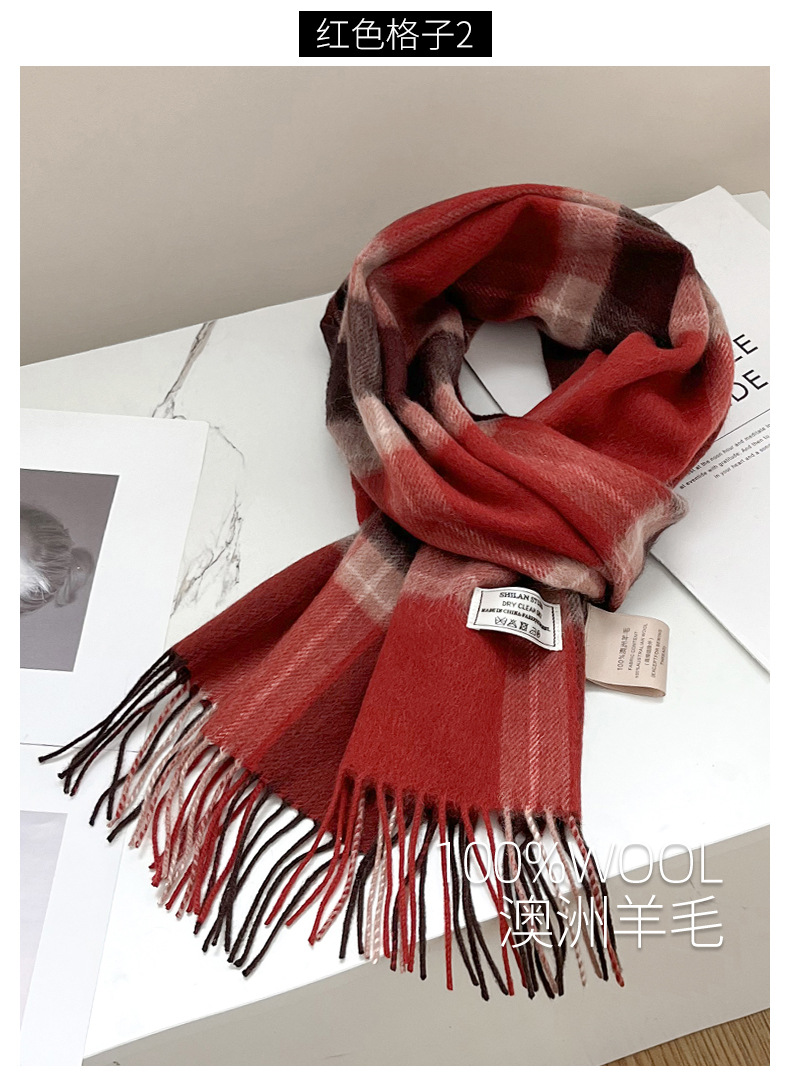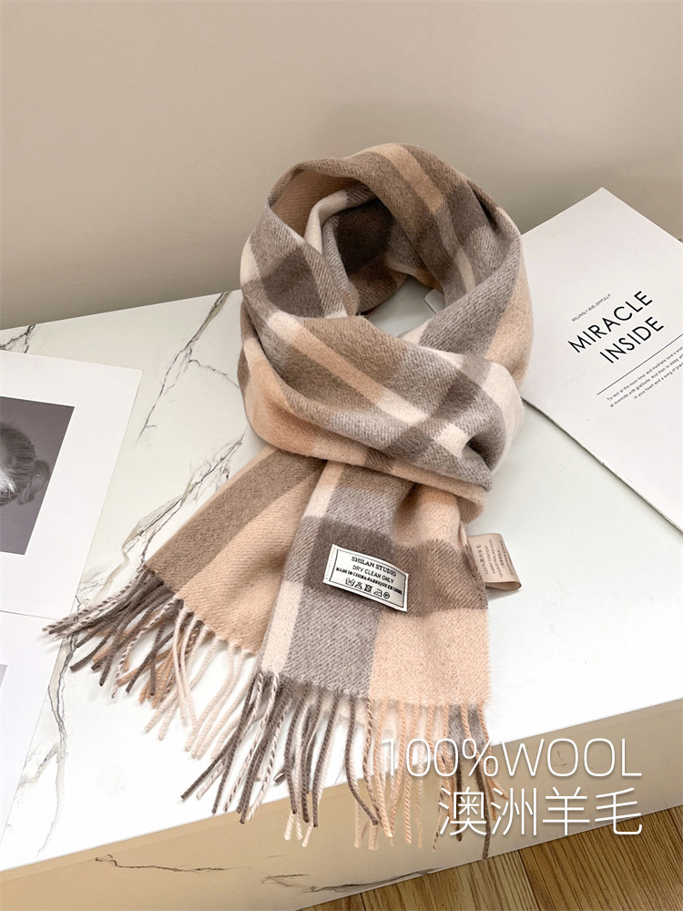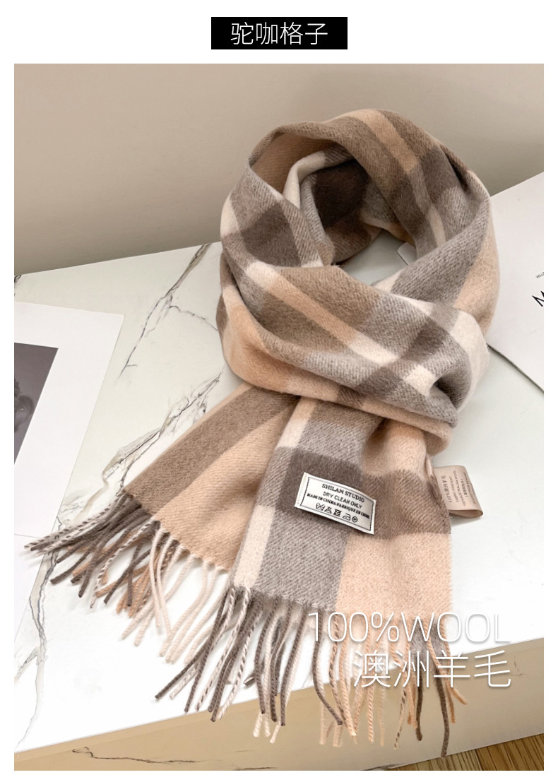 100% 호주산 울 순모 스카프 여성용 가을 겨울 고급스러운 2025년 신상 영국 스타일 체크무늬 스카프 선물세트스토어 가기