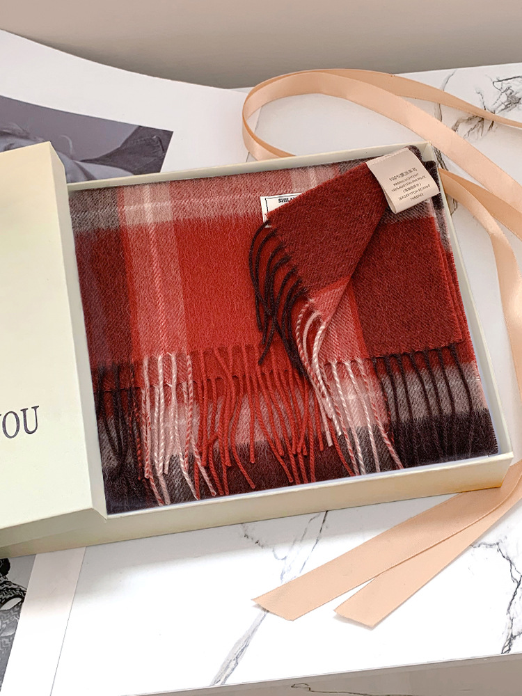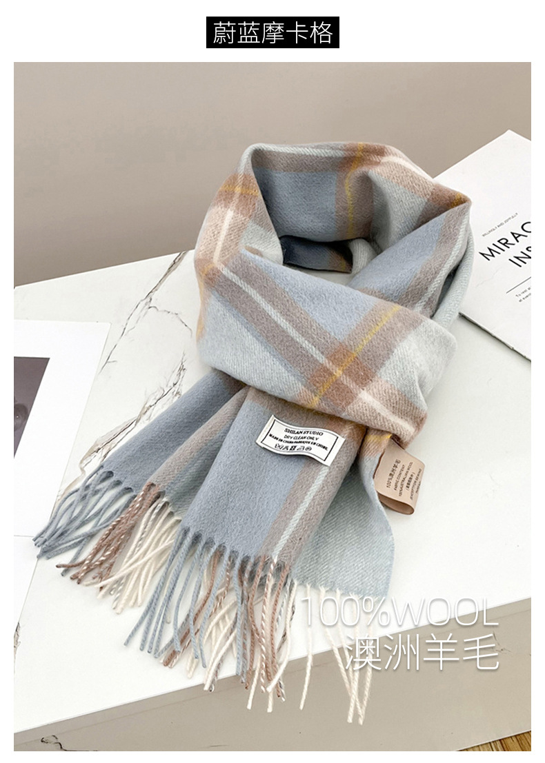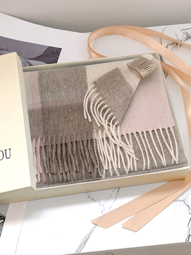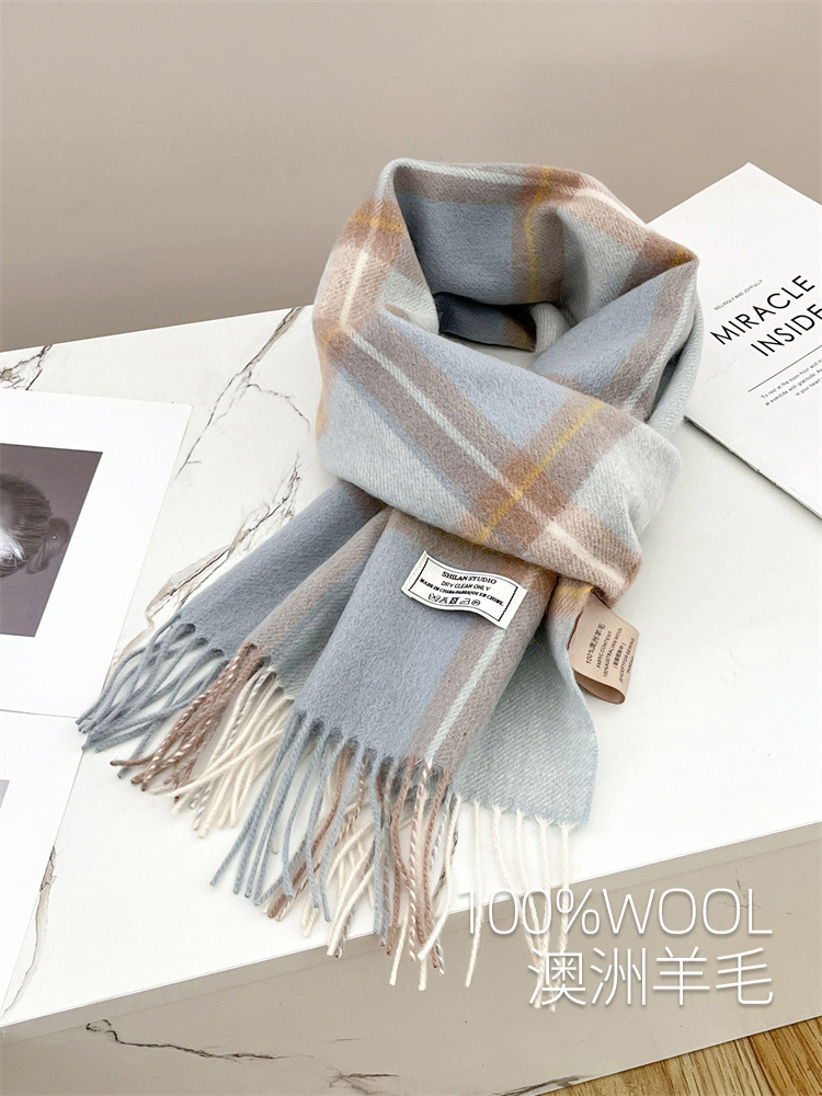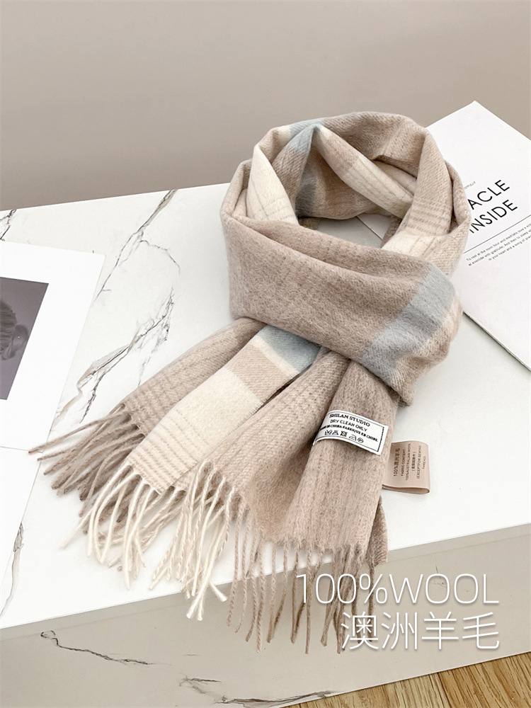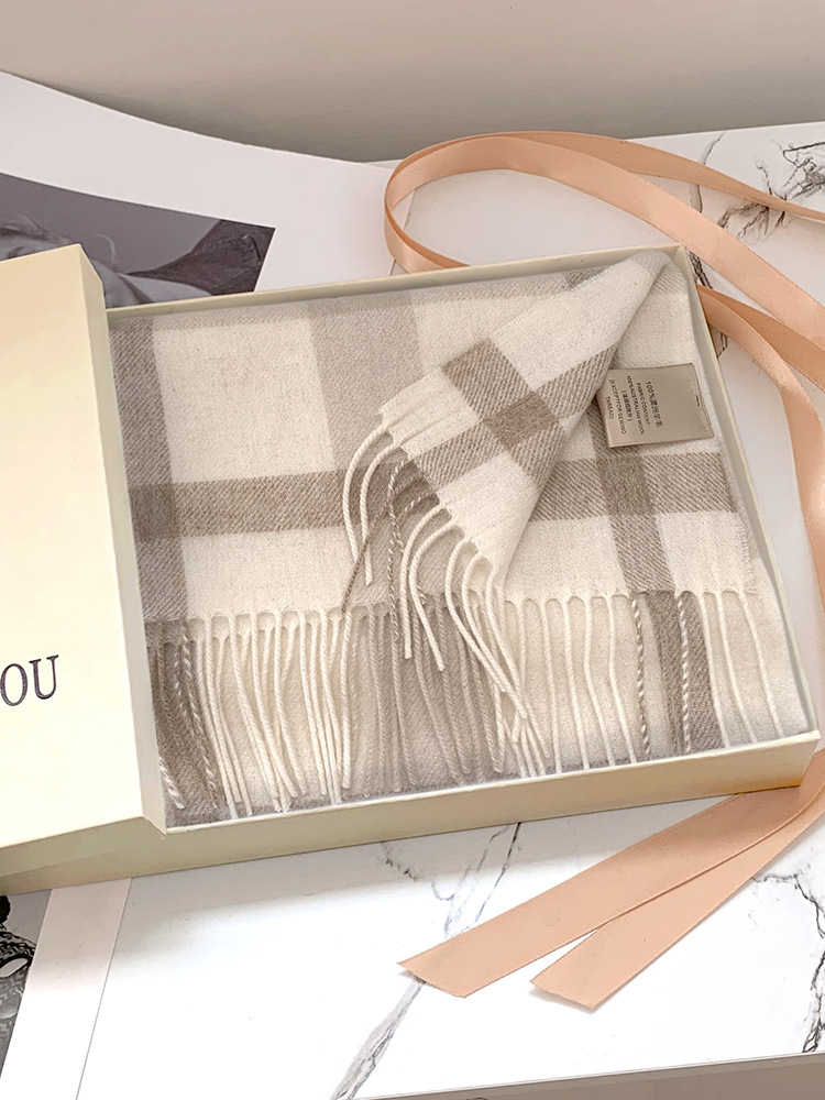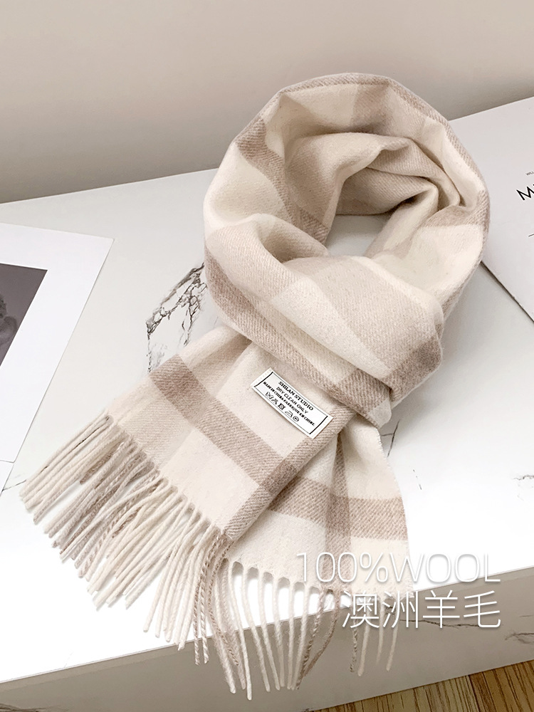 100% 호주산 울 순모 스카프 여성용 가을 겨울 고급스러운 2025년 신상 영국 스타일 체크무늬 스카프 선물세트스토어 가기