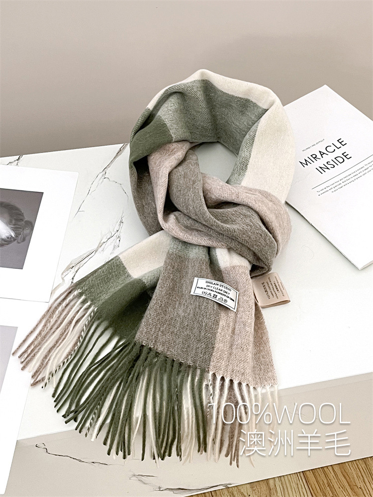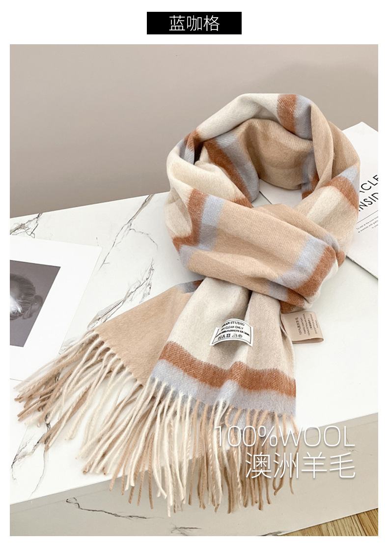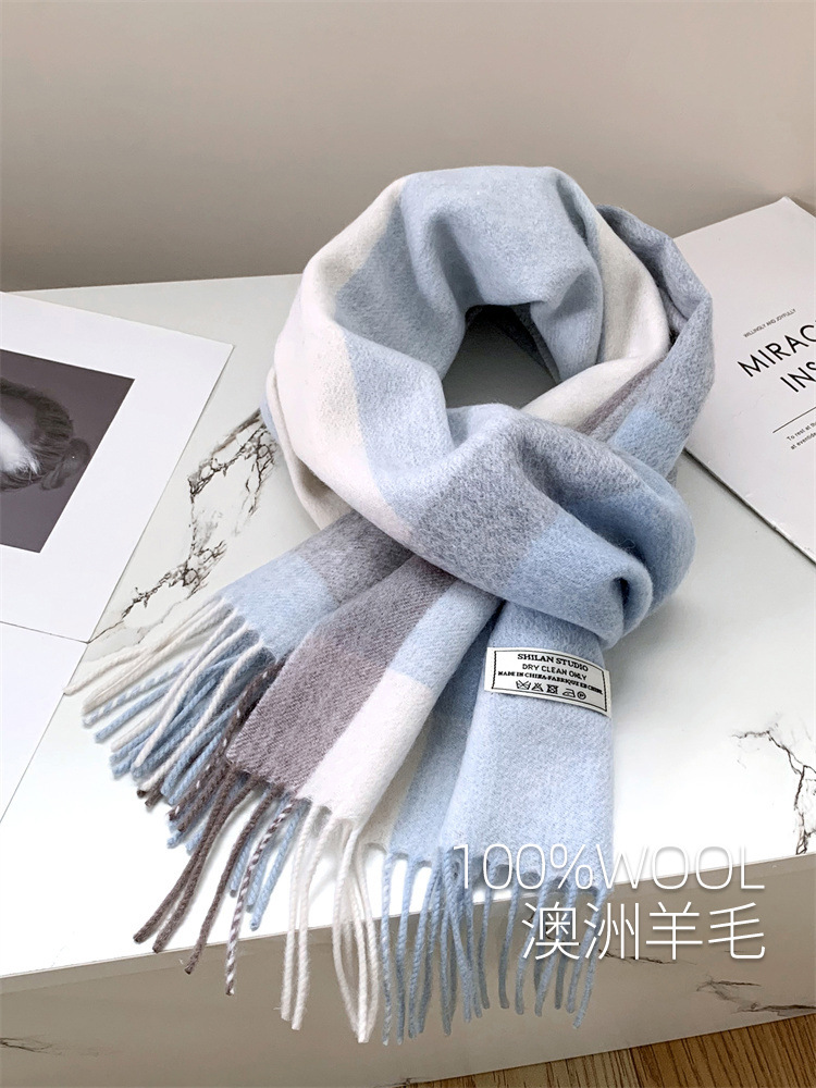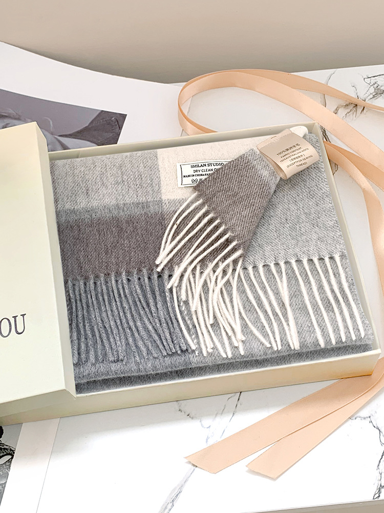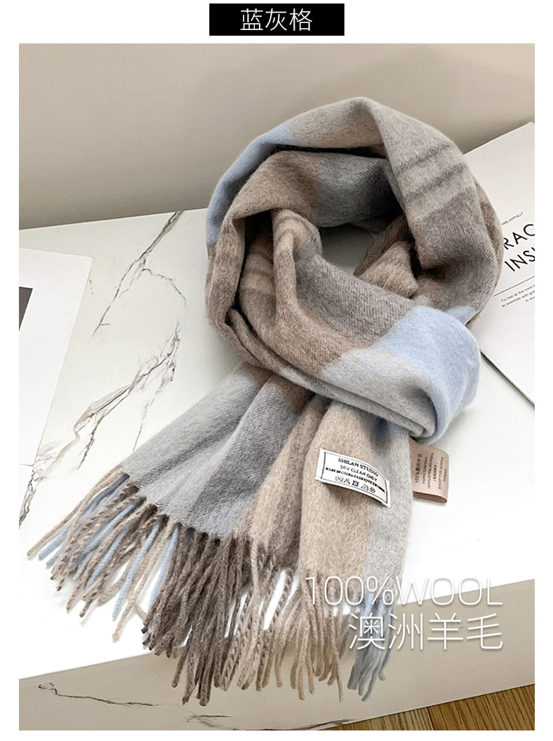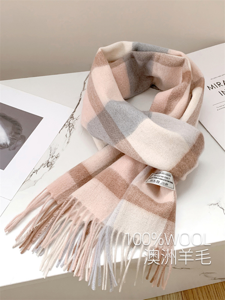 100% 호주산 울 순모 스카프 여성용 가을 겨울 고급스러운 2025년 신상 영국 스타일 체크무늬 스카프 선물세트스토어 가기