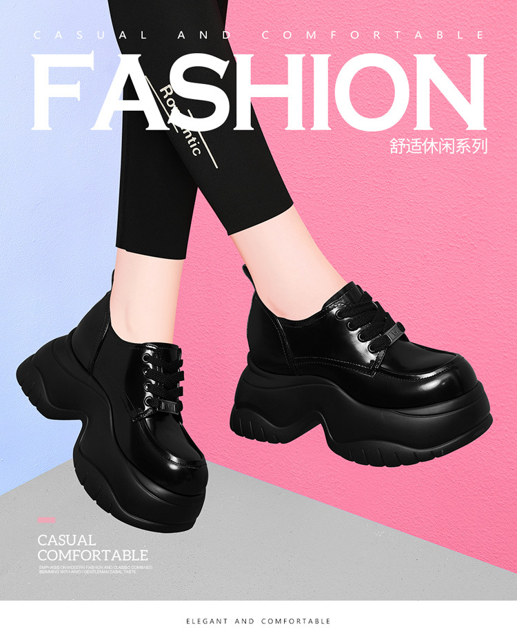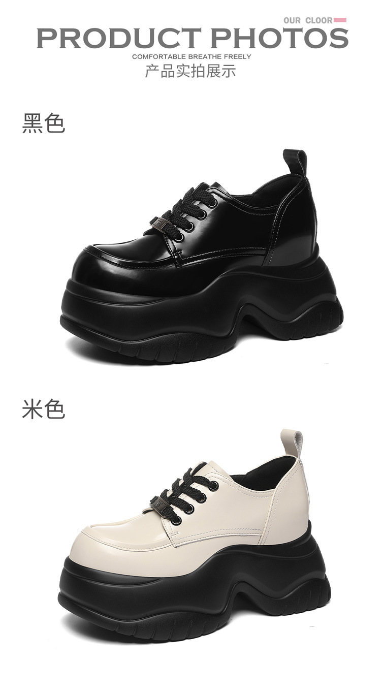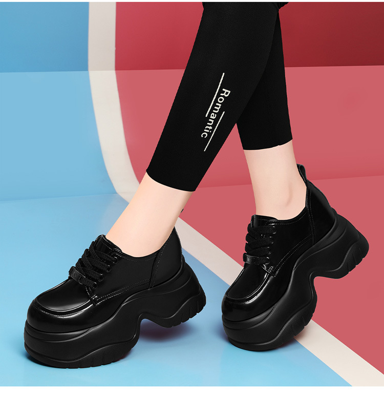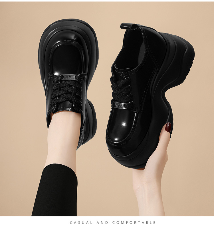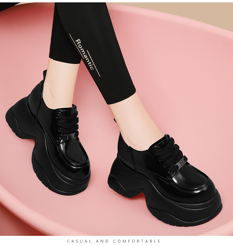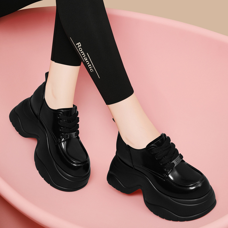 여성을위한 두꺼운 밑창 로퍼 2024 가을 새로운 스타일 키가 큰 여성 신발 세련된 플랫폼 다용도 검은 영국 작은 가죽 신발스토어 가기