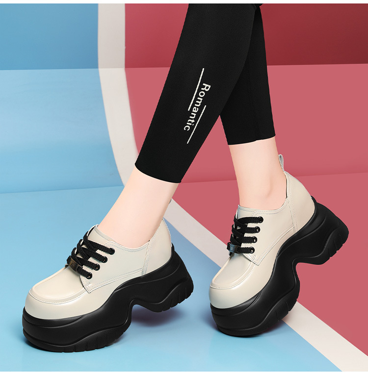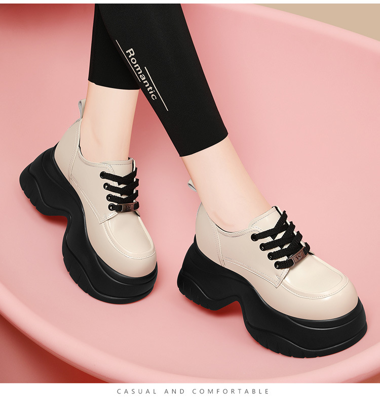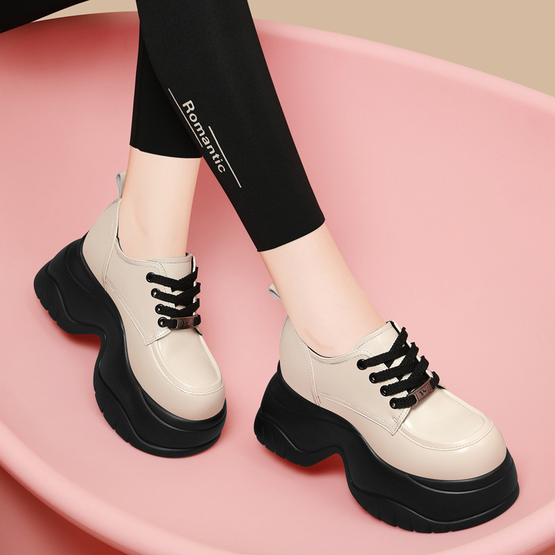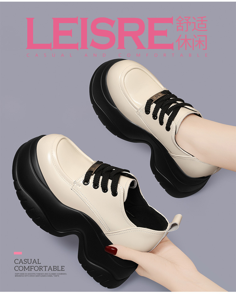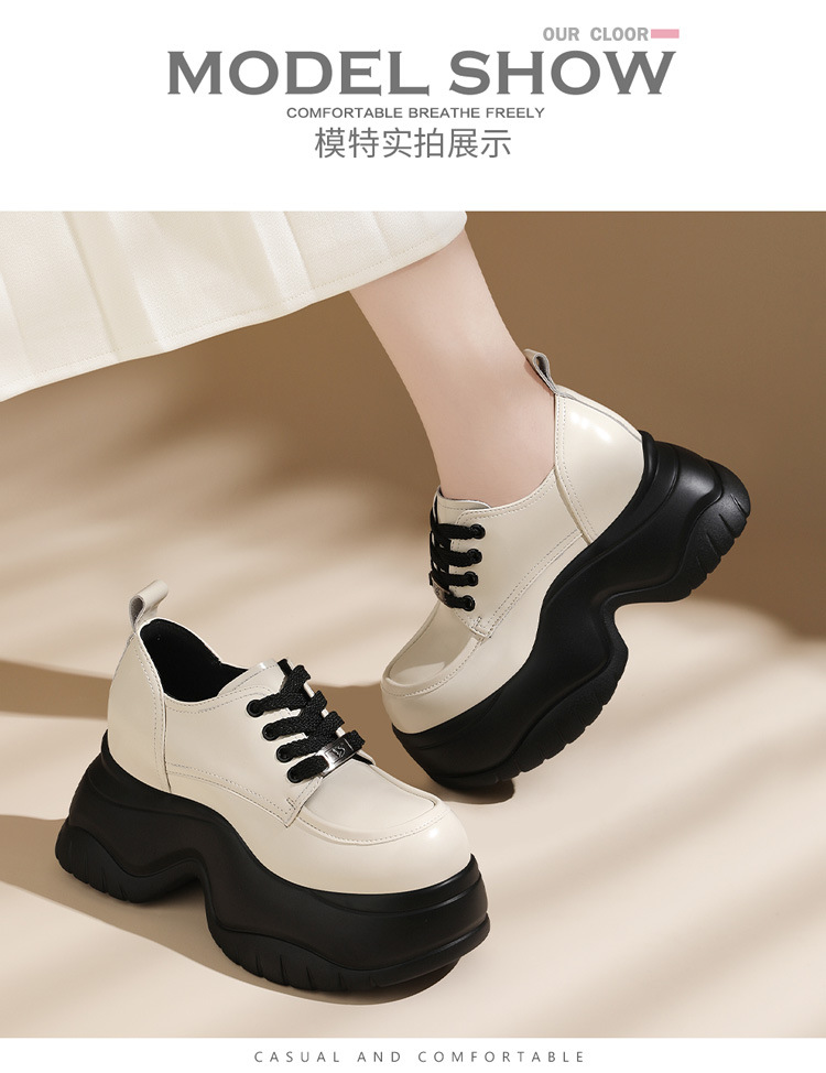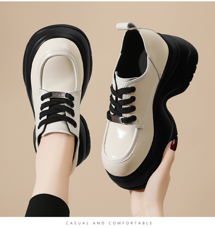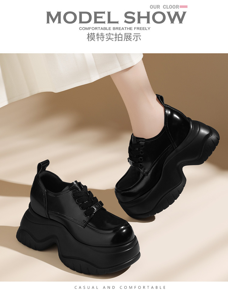 여성을위한 두꺼운 밑창 로퍼 2024 가을 새로운 스타일 키가 큰 여성 신발 세련된 플랫폼 다용도 검은 영국 작은 가죽 신발스토어 가기