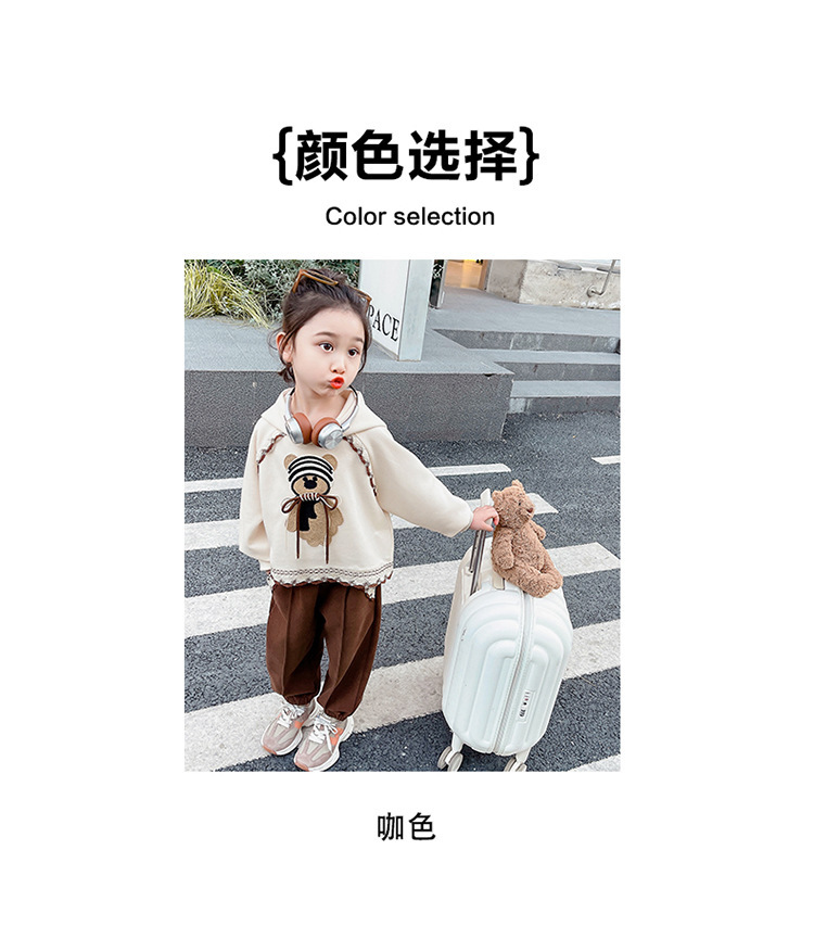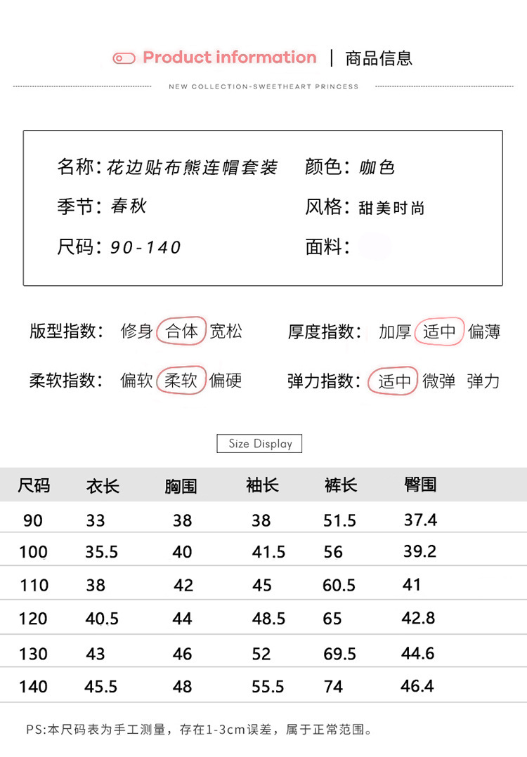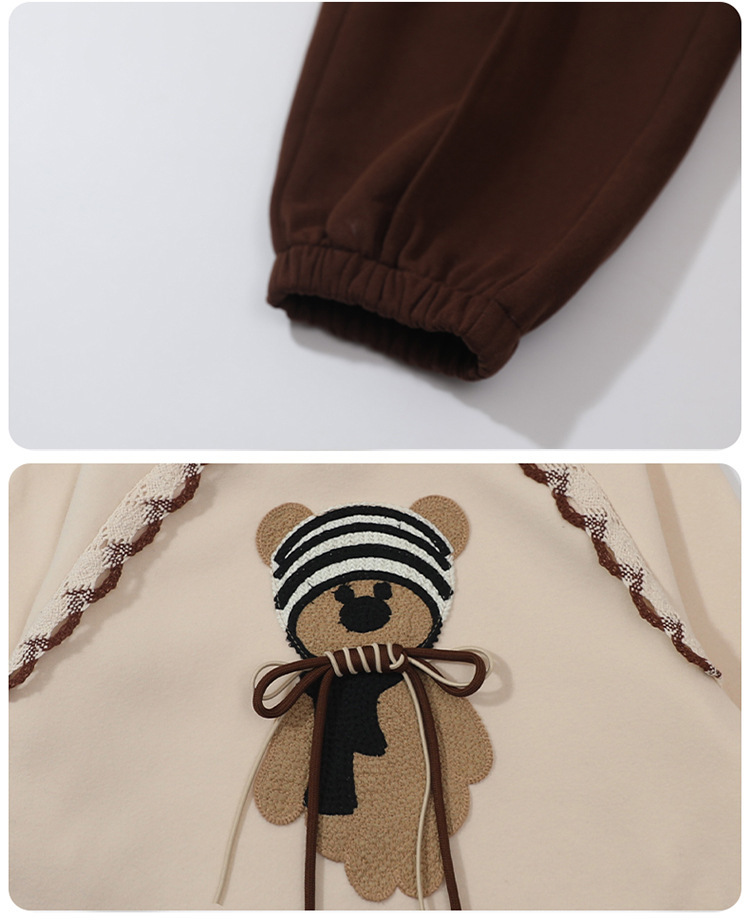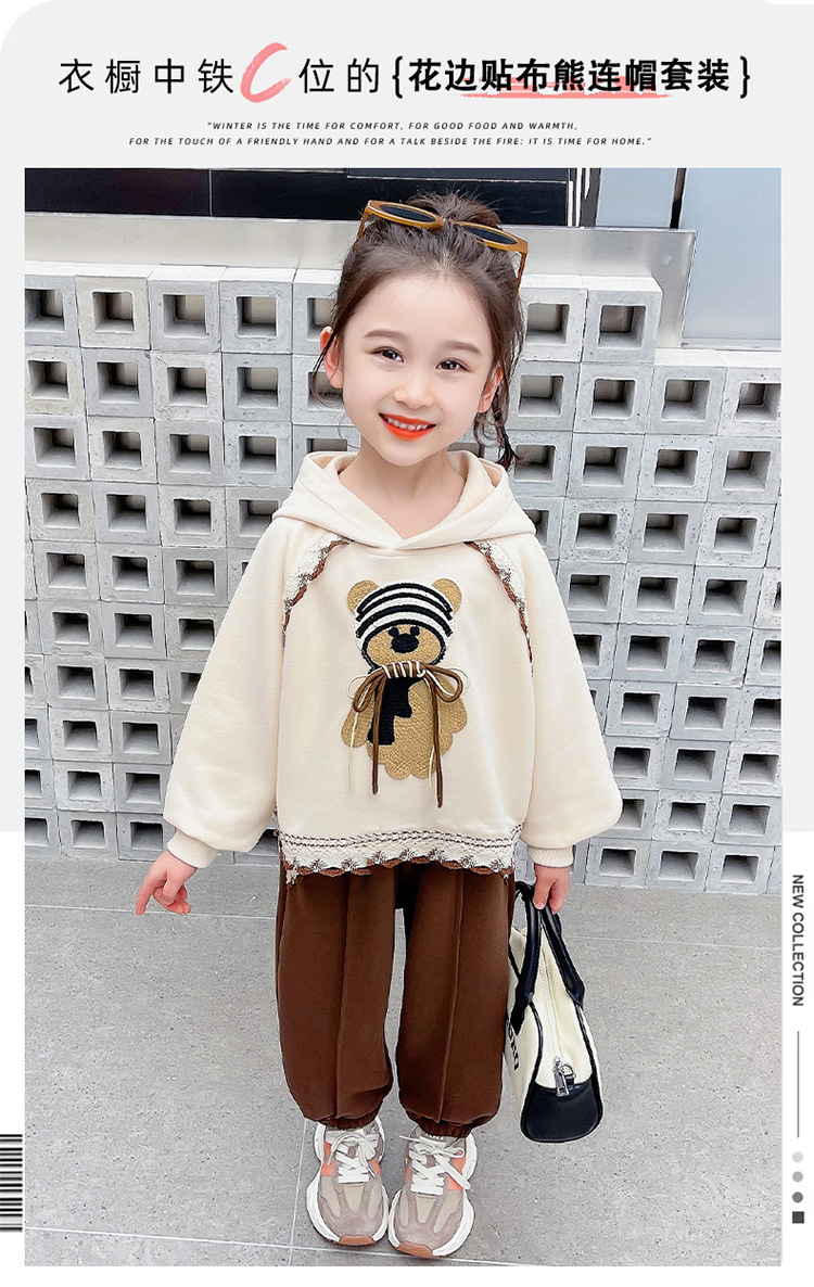 소녀의 봄과 가을 의류 레이스 핏 베어 후드 세트 어린이 스타일리제 봄 땀 어린이 한국 투피스 세트스토어 가기