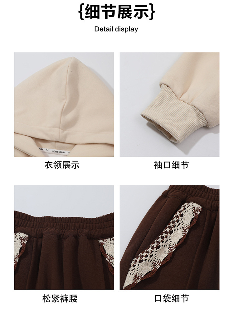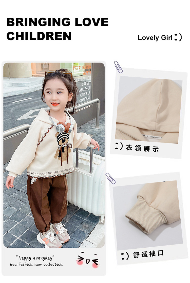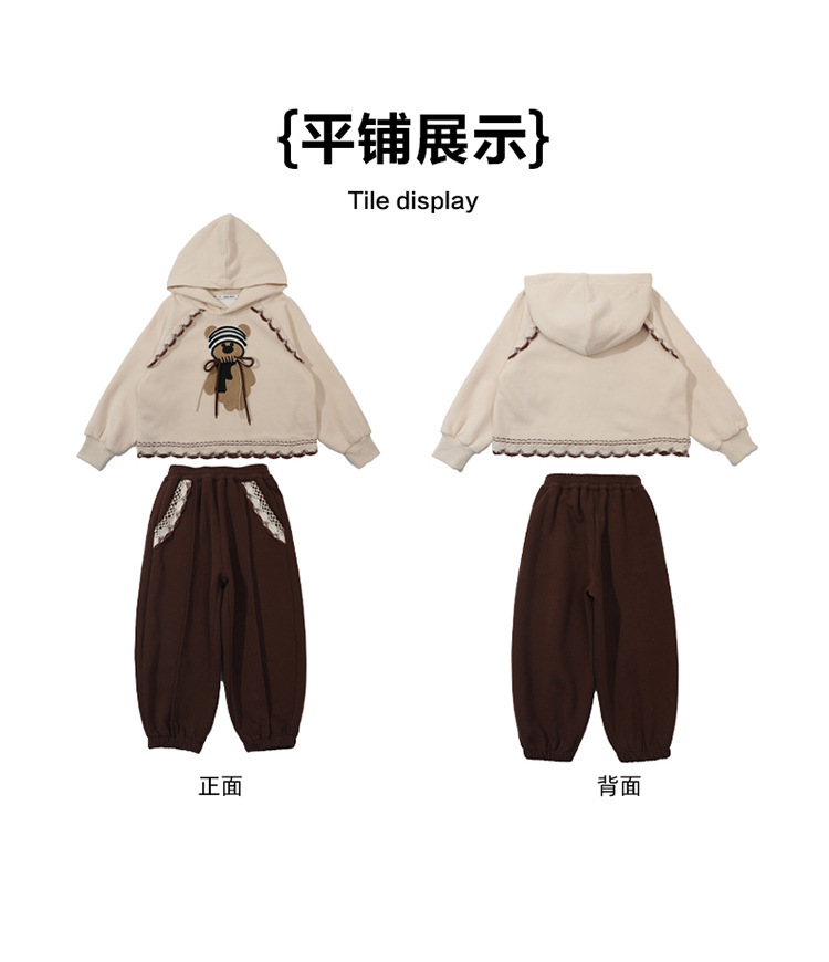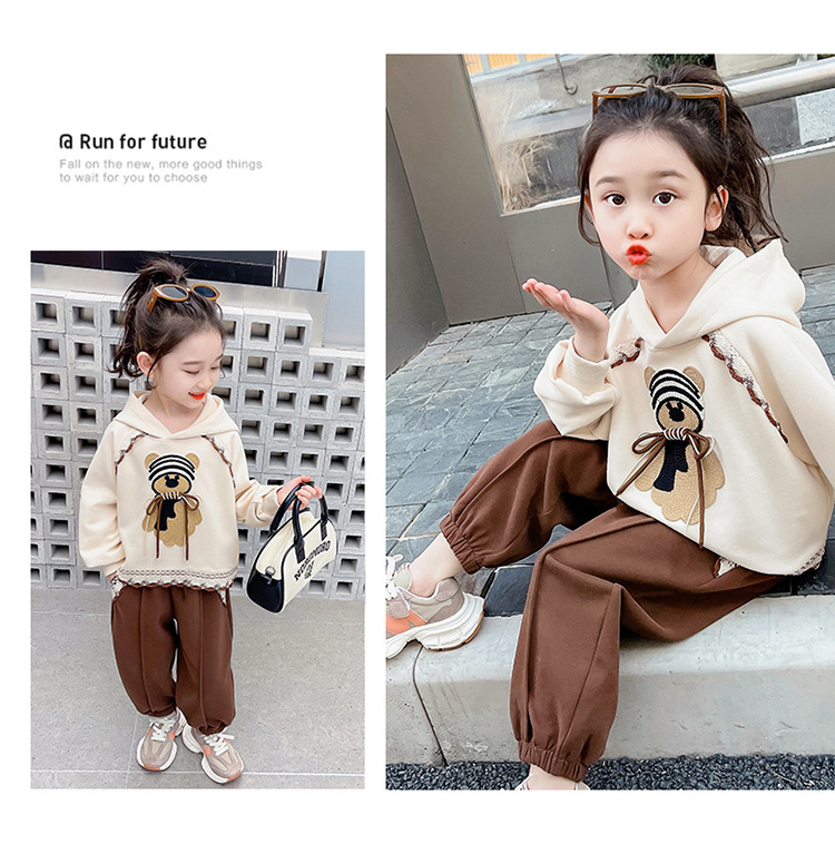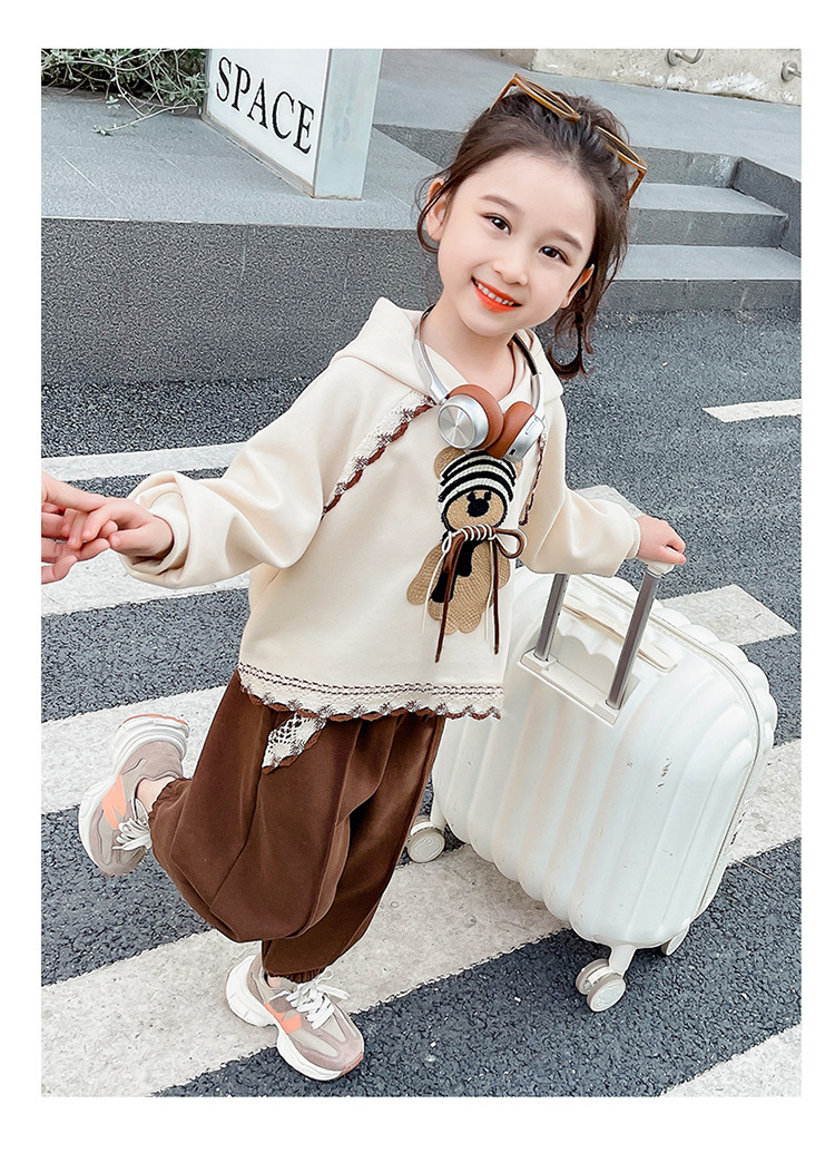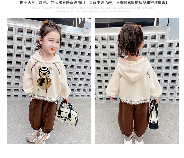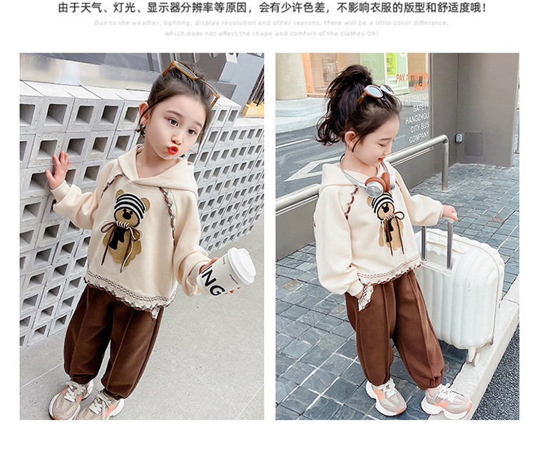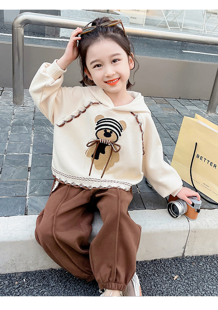 소녀의 봄과 가을 의류 레이스 핏 베어 후드 세트 어린이 스타일리제 봄 땀 어린이 한국 투피스 세트