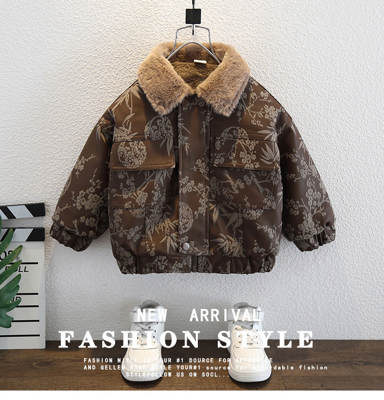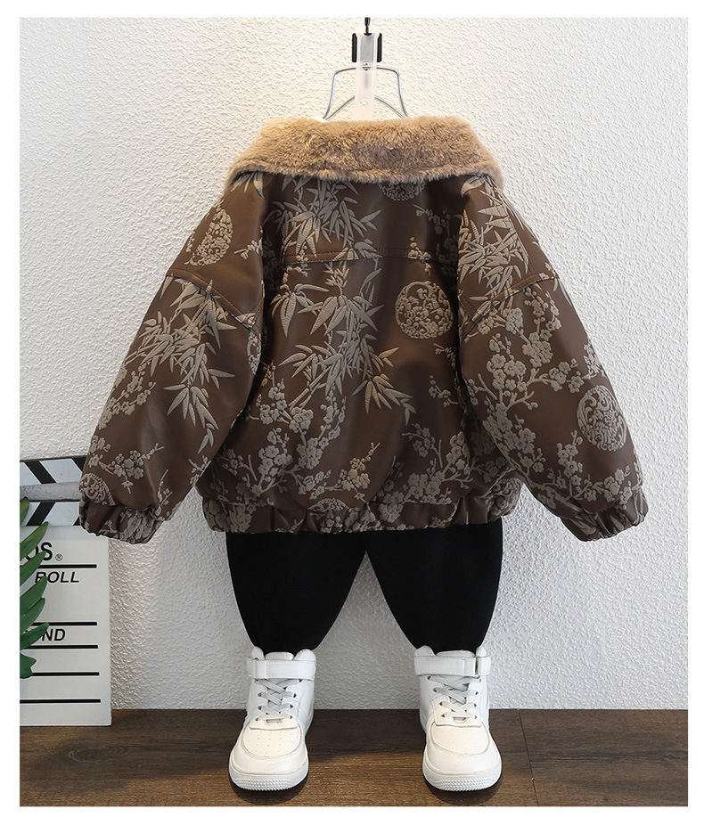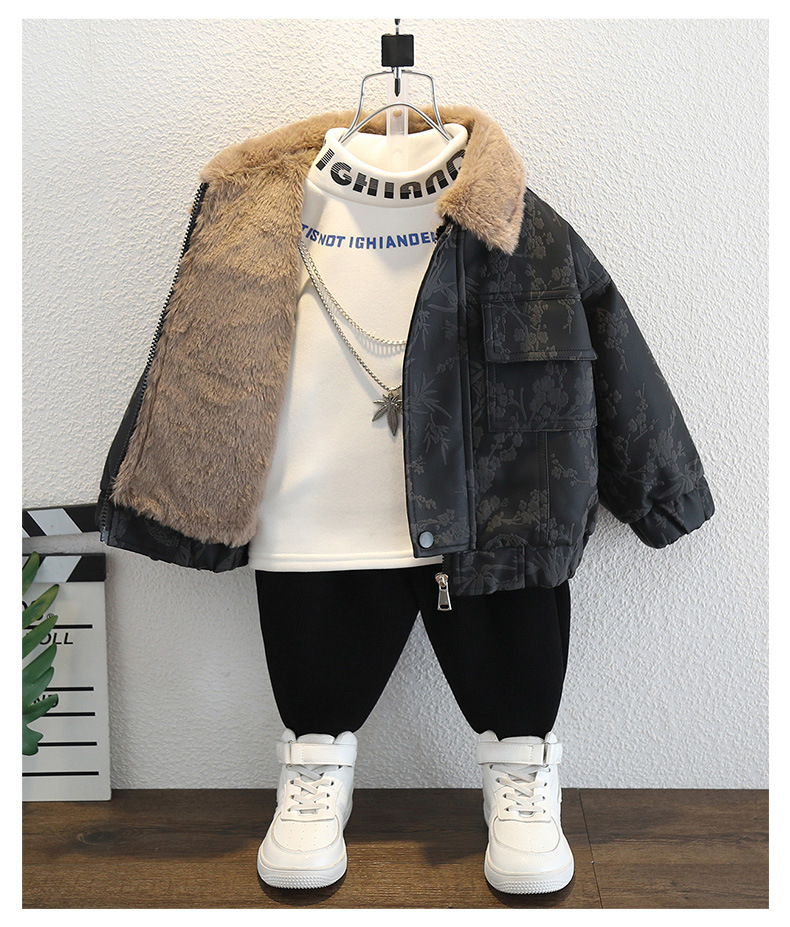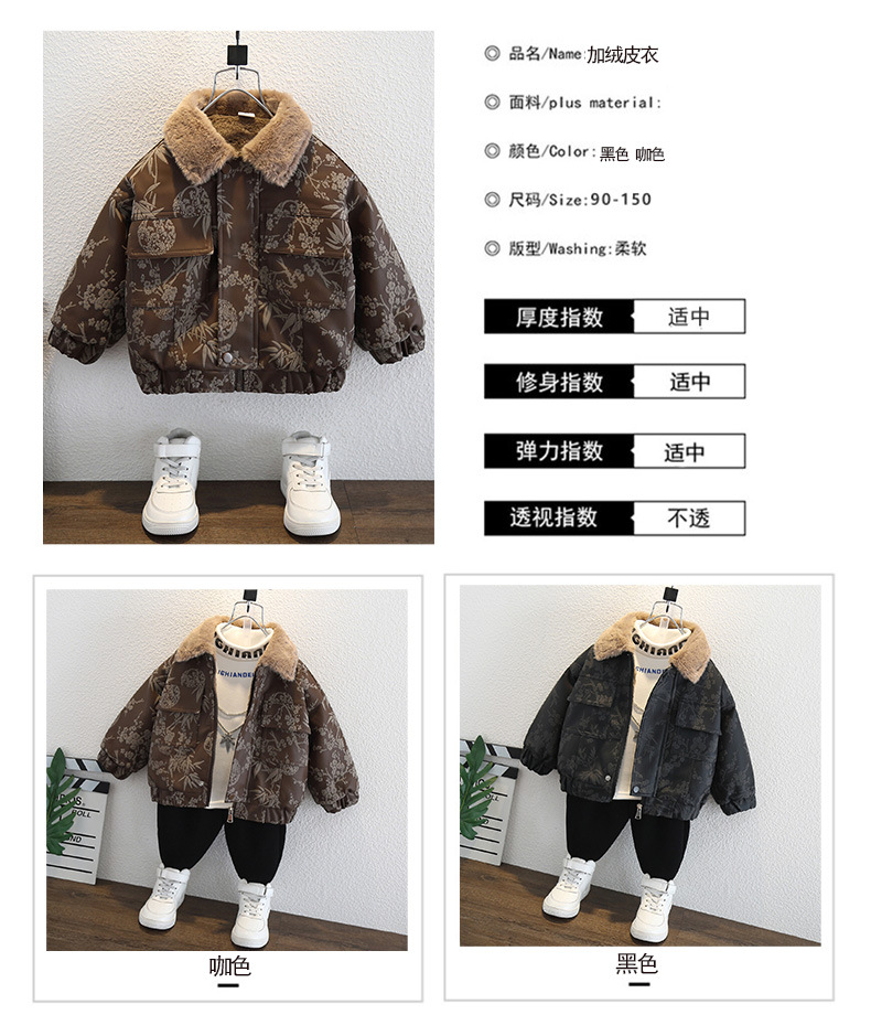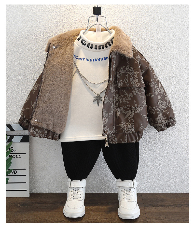 2025년 가을 겨울 남아용 양털 재킷 새로운 스타일의 멋지고 세련된 아동용 가죽 재킷 아기 겨울 의류 두꺼운 중국 의류스토어 가기