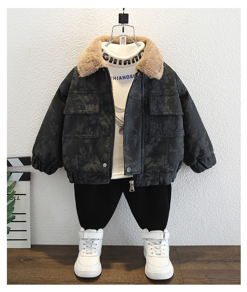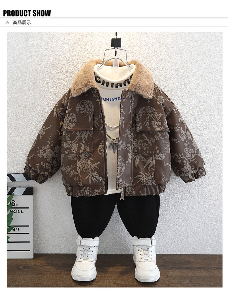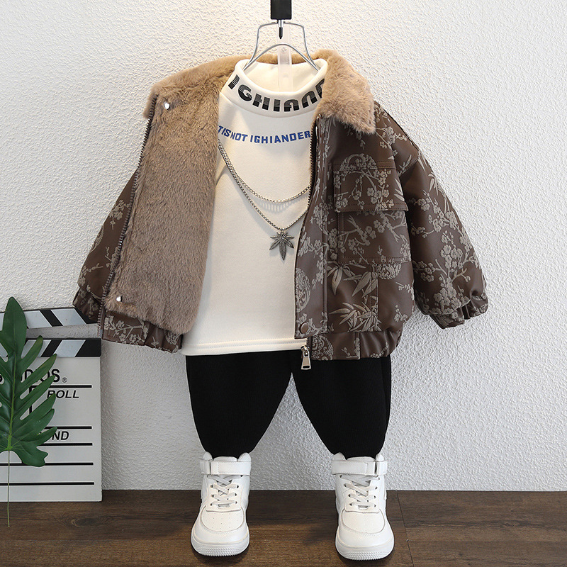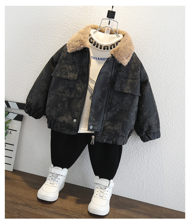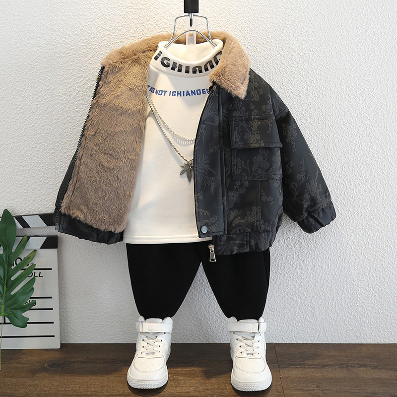 2025년 가을 겨울 남아용 양털 재킷 새로운 스타일의 멋지고 세련된 아동용 가죽 재킷 아기 겨울 의류 두꺼운 중국 의류스토어 가기