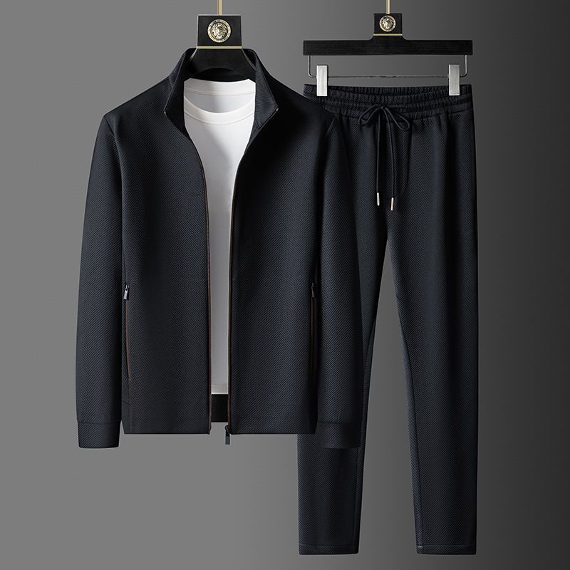 2024 봄과 가을 새로운 스포츠웨어 세트 남성용 캐주얼 통기성 하이 엔드 재킷 바지 칼라 지퍼 카디건