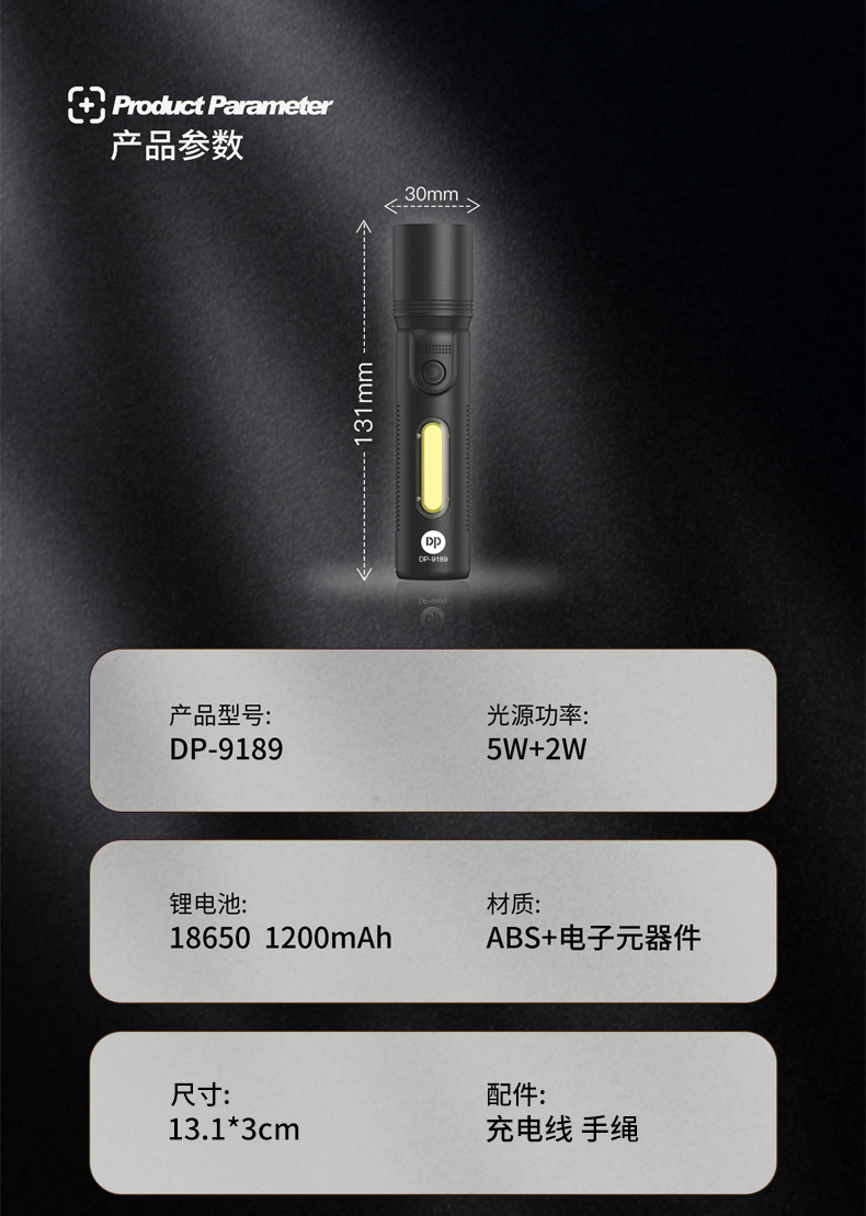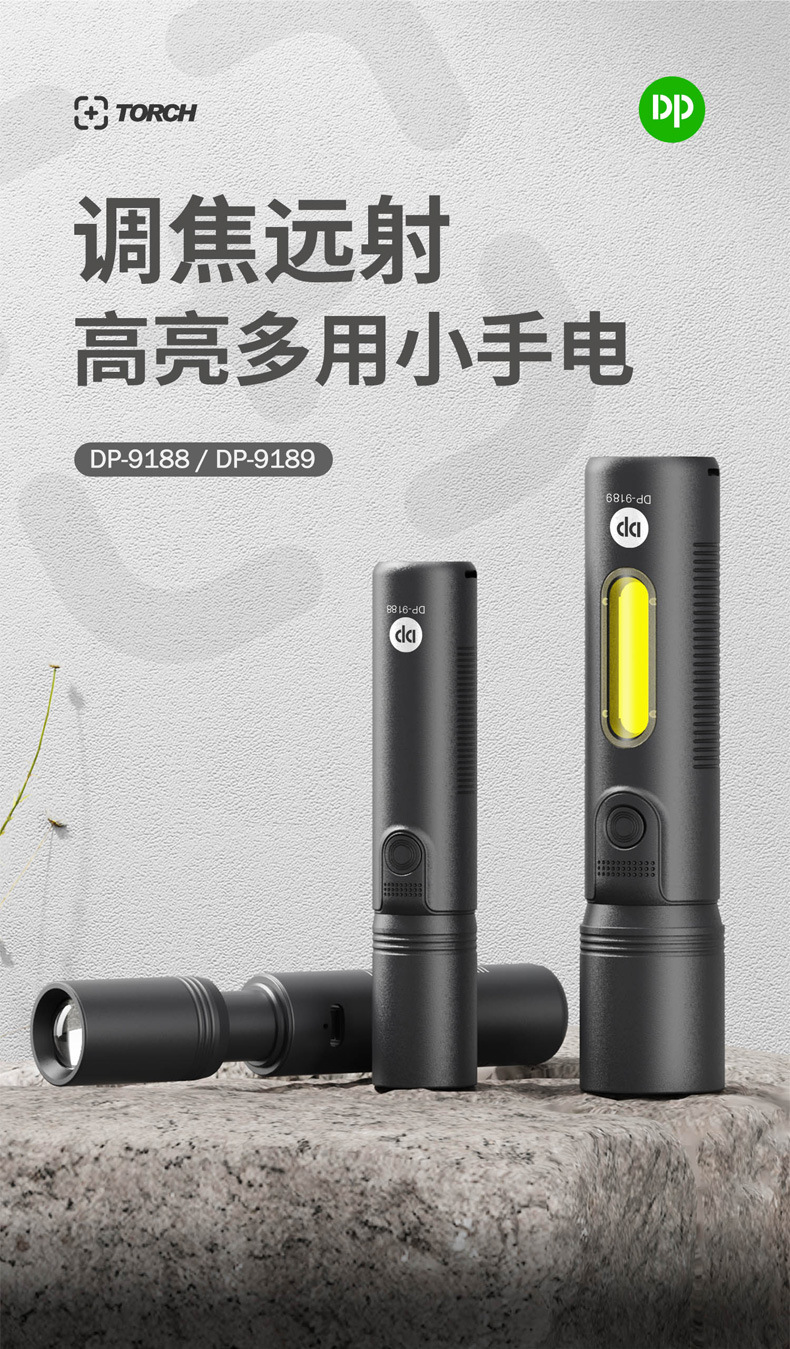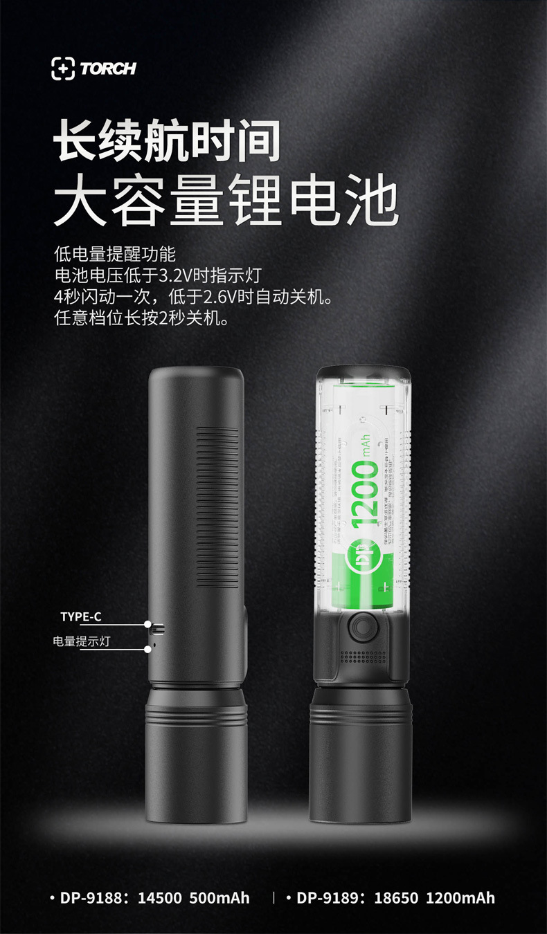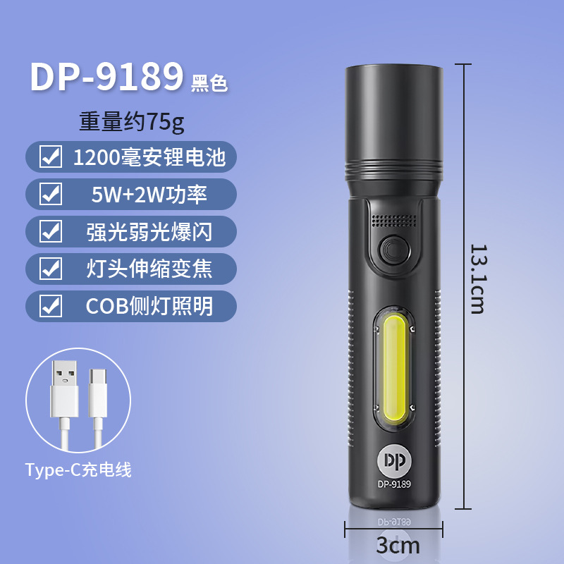 휴대용 LED 리튬 배터리 야외 조명 비상 작은 손전등 도매에 초점을 맞춘 긴 양의 손전등 9189스토어 가기