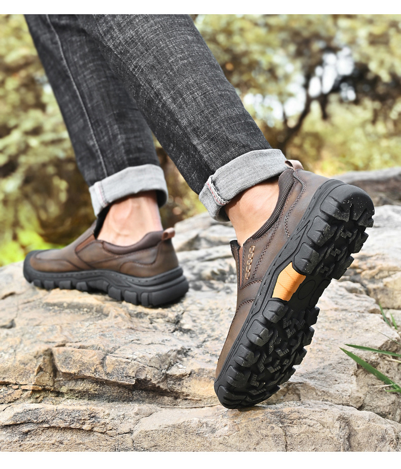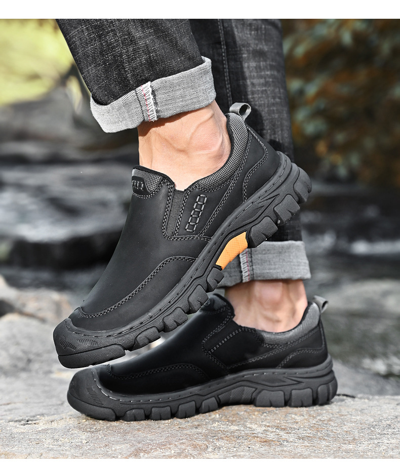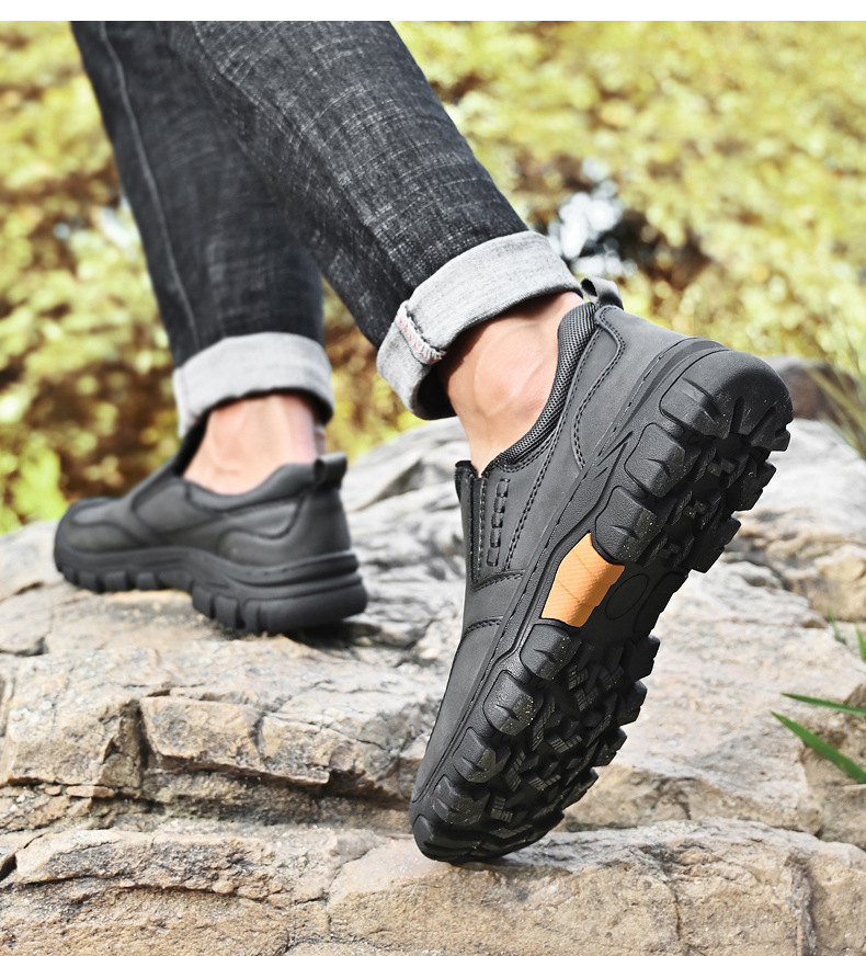 독립 역 아마존 대외 무역 폭발 남성 PU 고무 플랫폼 야외 하이킹 신발 내마모성 미끄럼 방지 캐주얼 가죽 신발스토어 가기