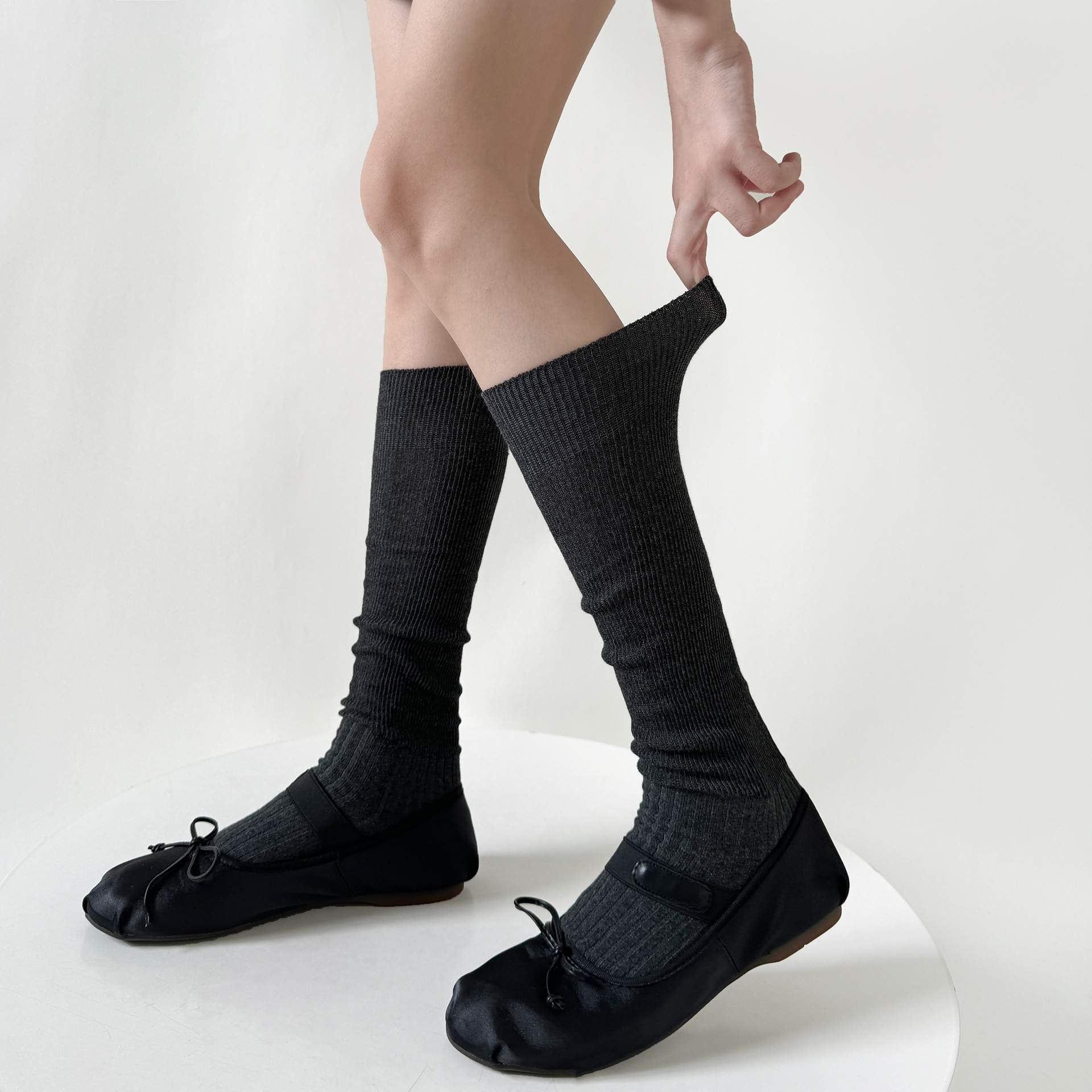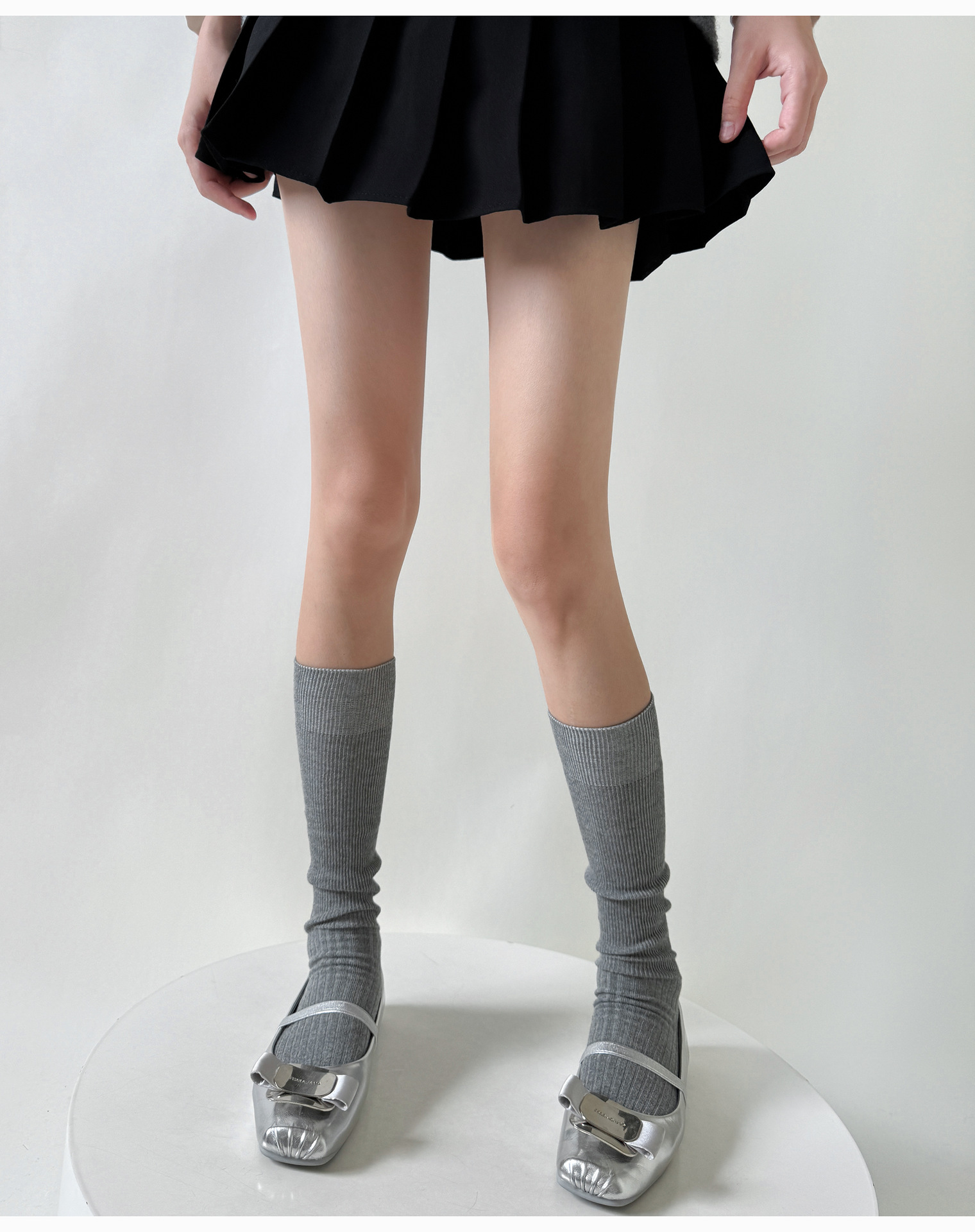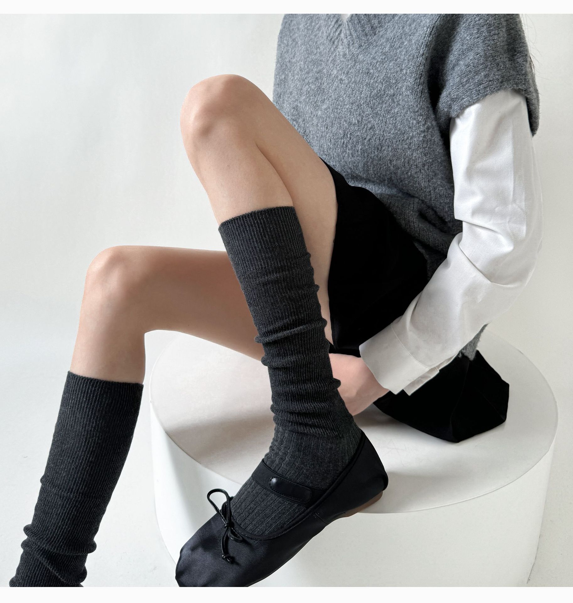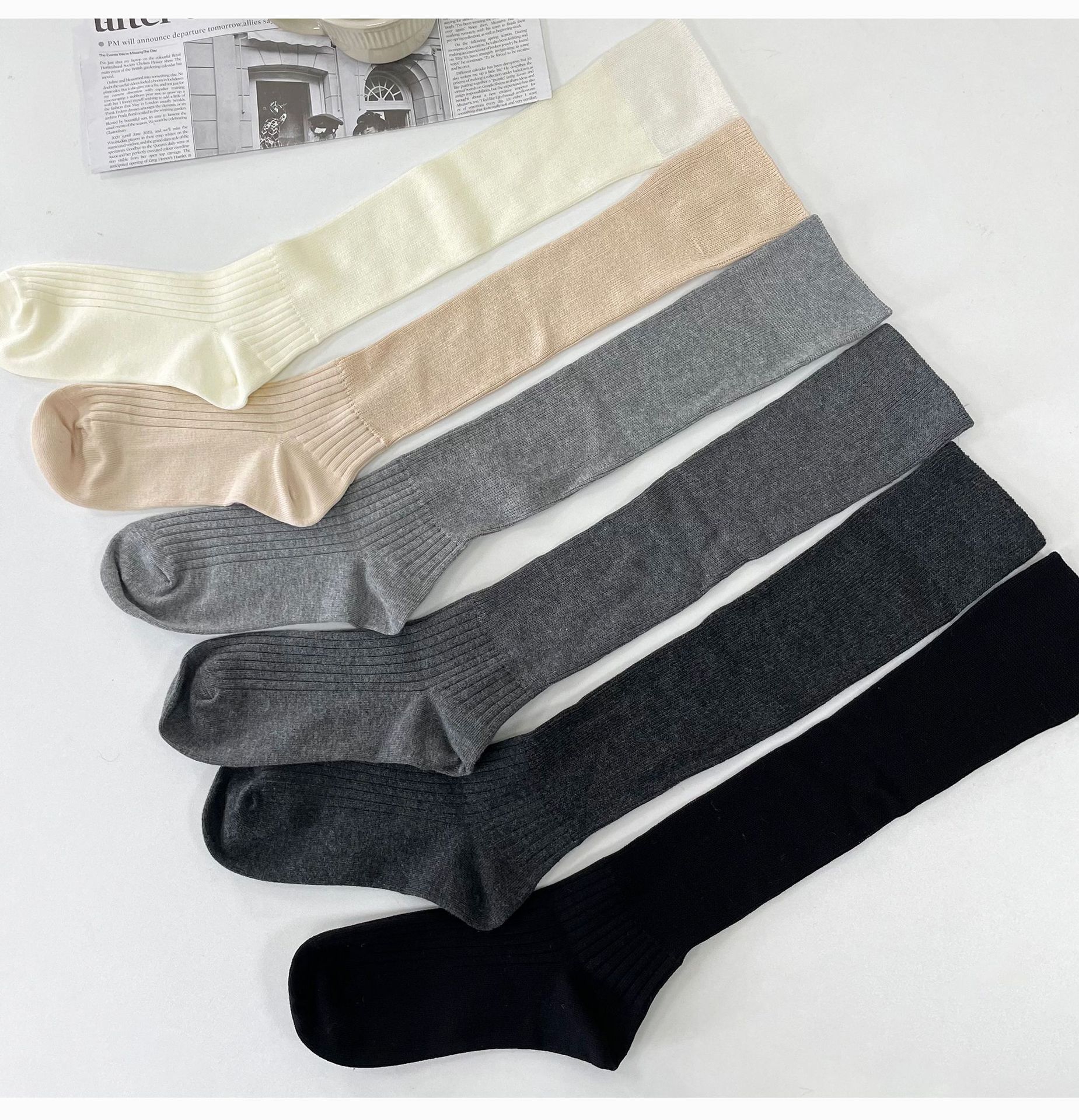 가을 스티칭 힙 스타킹 여성의 단색 간단한 올 매치 그레이 니트 코튼 스타킹 봄과 가을 미드 스타킹 밀크 화이트