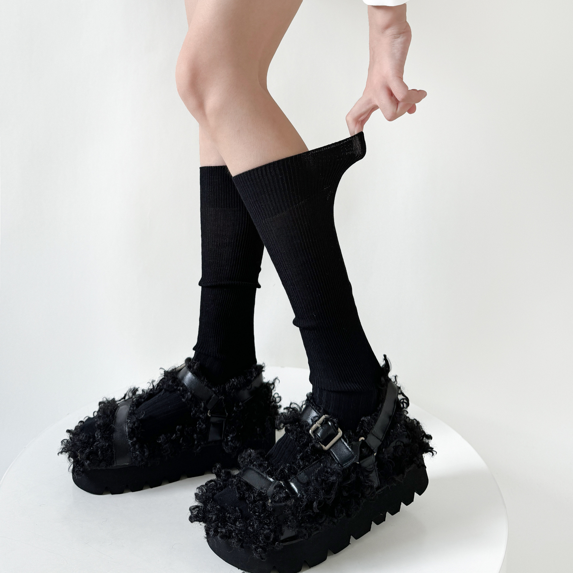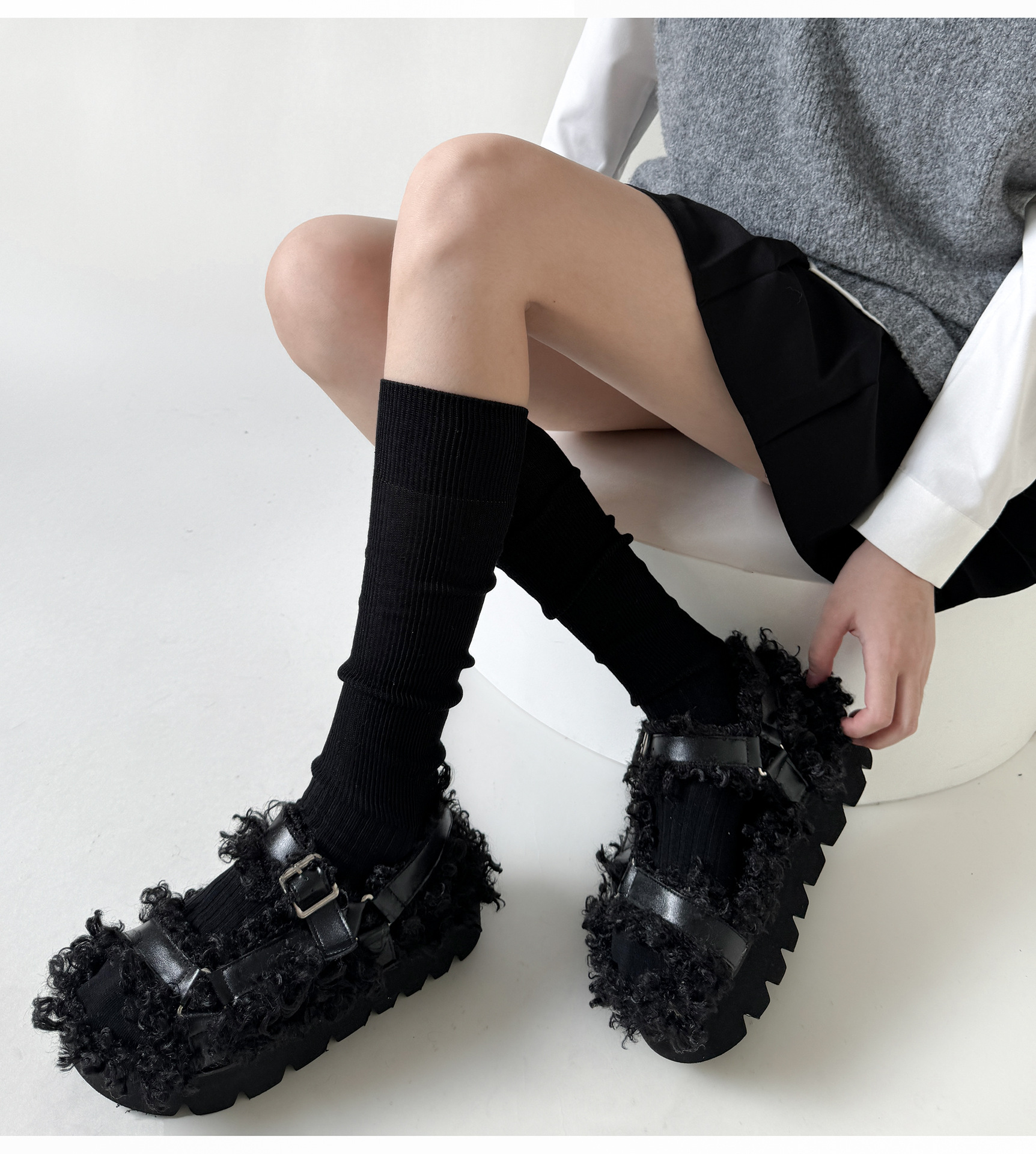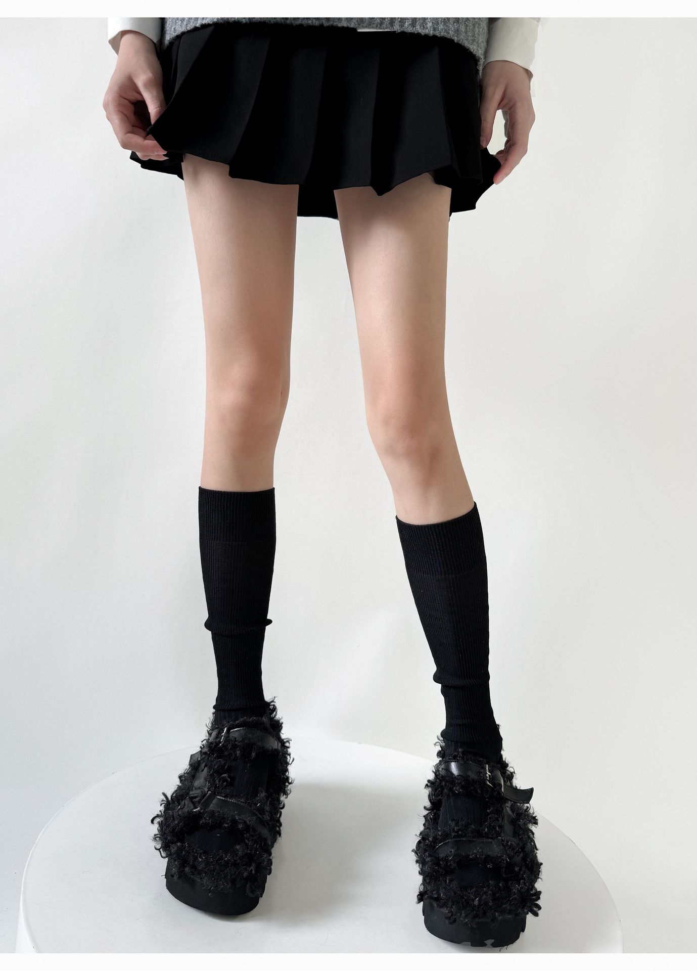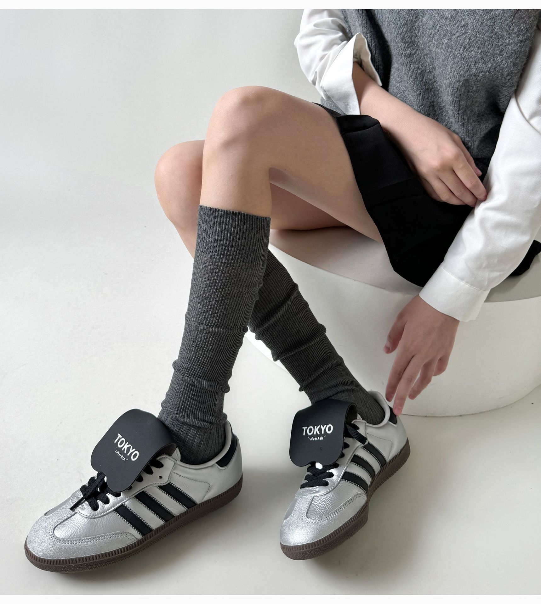 가을 스티칭 힙 스타킹 여성의 단색 간단한 올 매치 그레이 니트 코튼 스타킹 봄과 가을 미드 스타킹 밀크 화이트