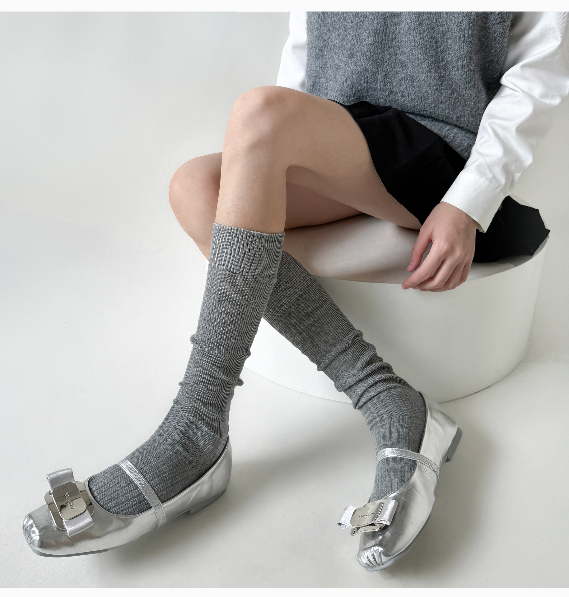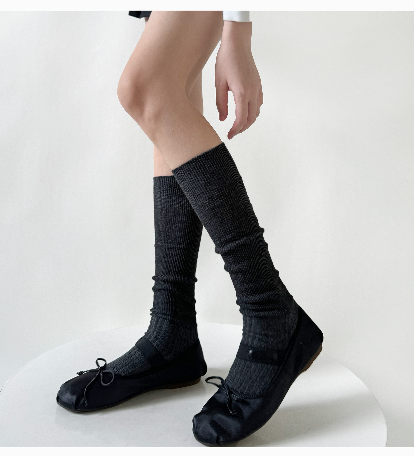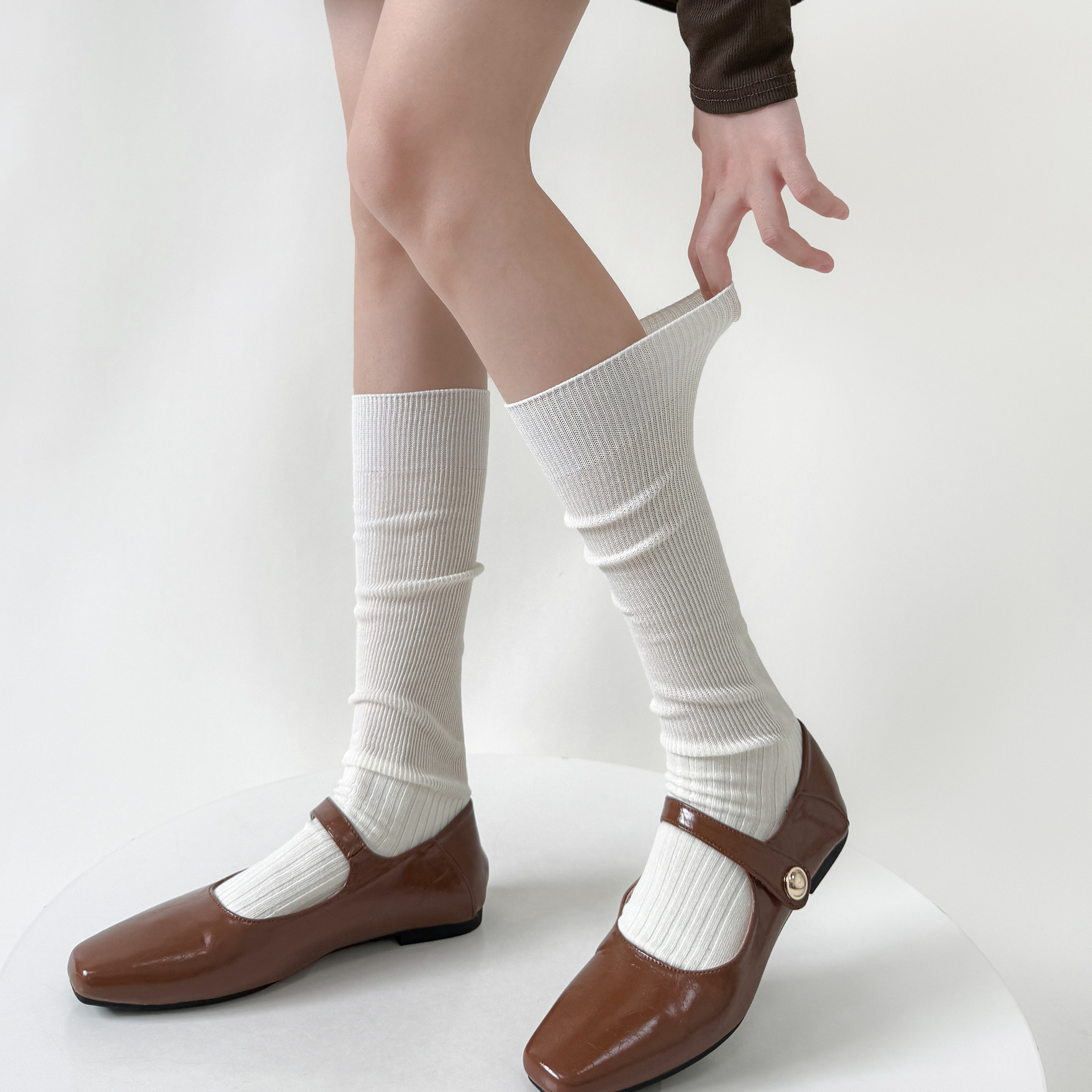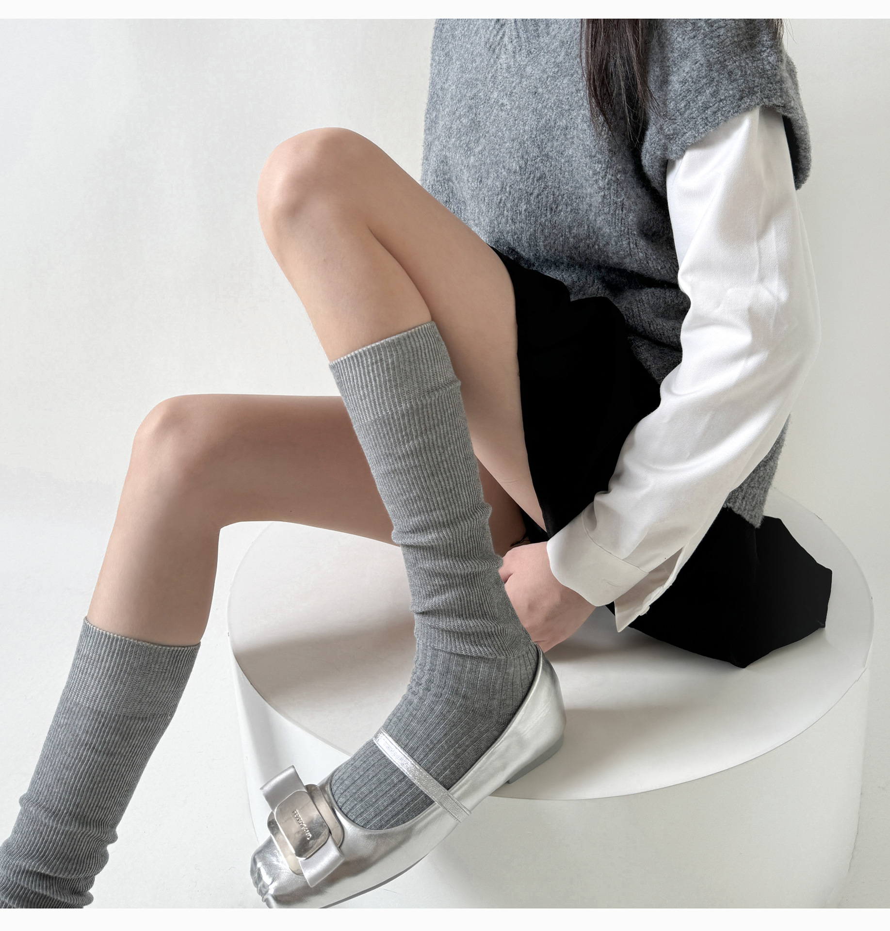 가을 스티칭 힙 스타킹 여성의 단색 간단한 올 매치 그레이 니트 코튼 스타킹 봄과 가을 미드 스타킹 밀크 화이트스토어 가기