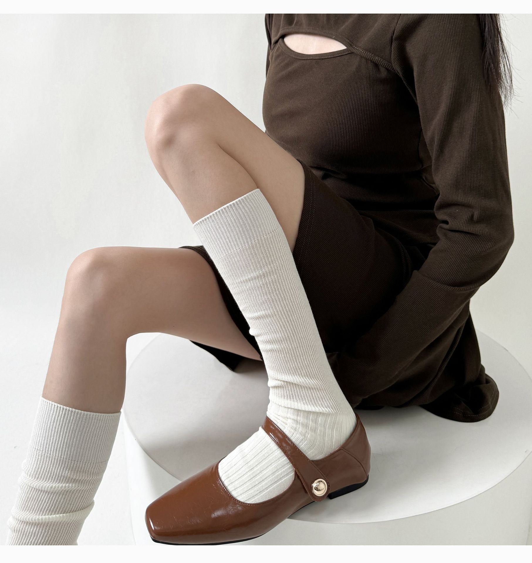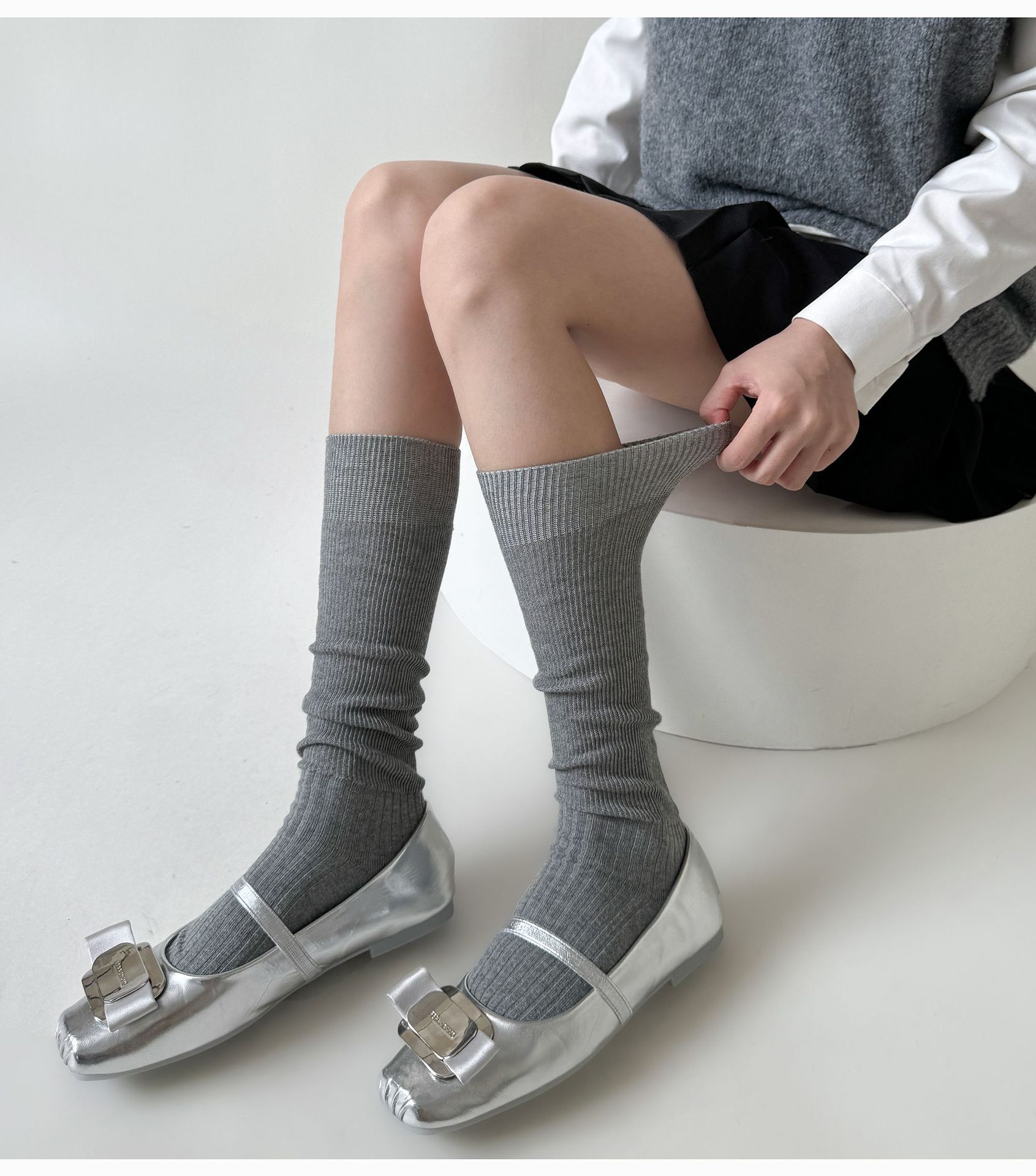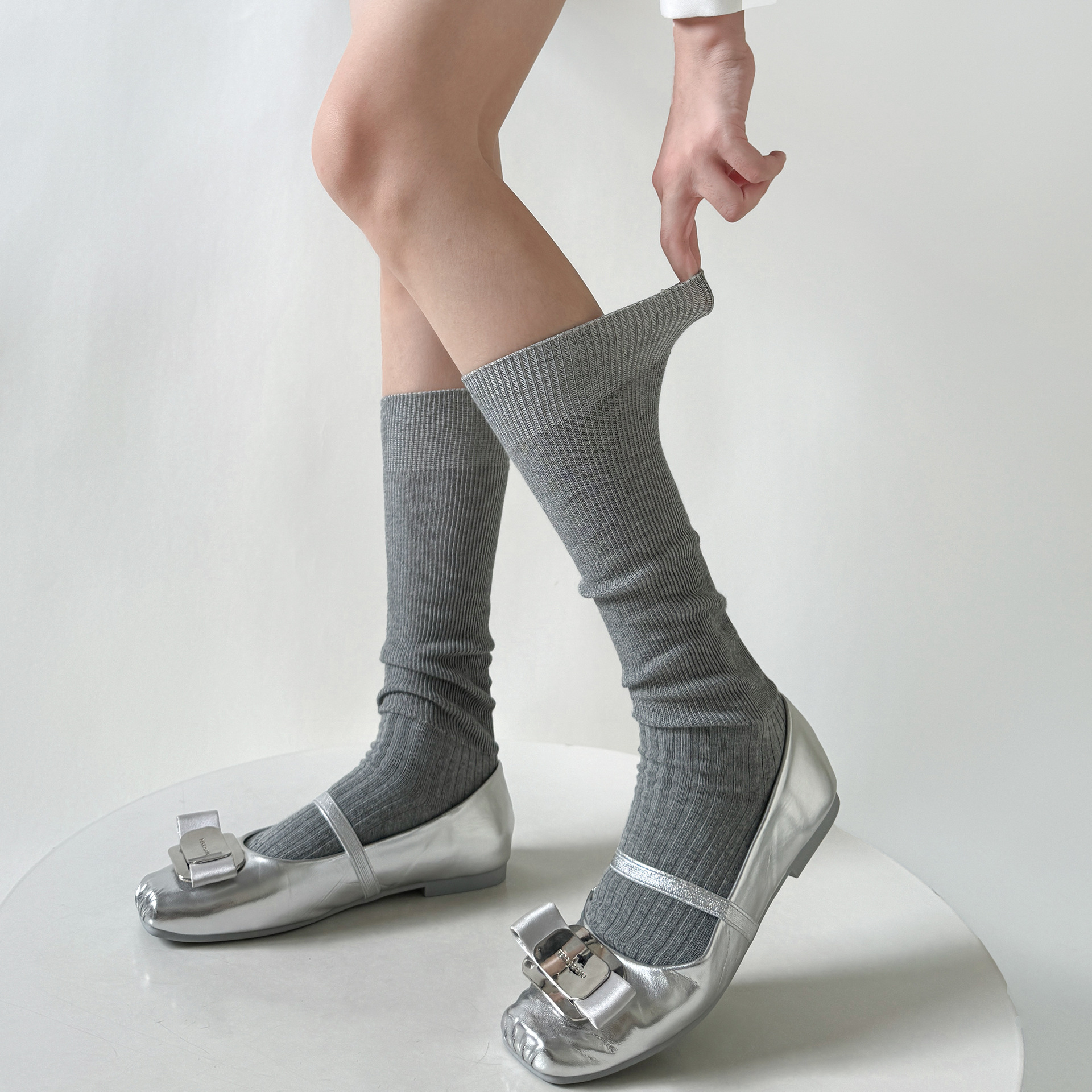 가을 스티칭 힙 스타킹 여성의 단색 간단한 올 매치 그레이 니트 코튼 스타킹 봄과 가을 미드 스타킹 밀크 화이트스토어 가기